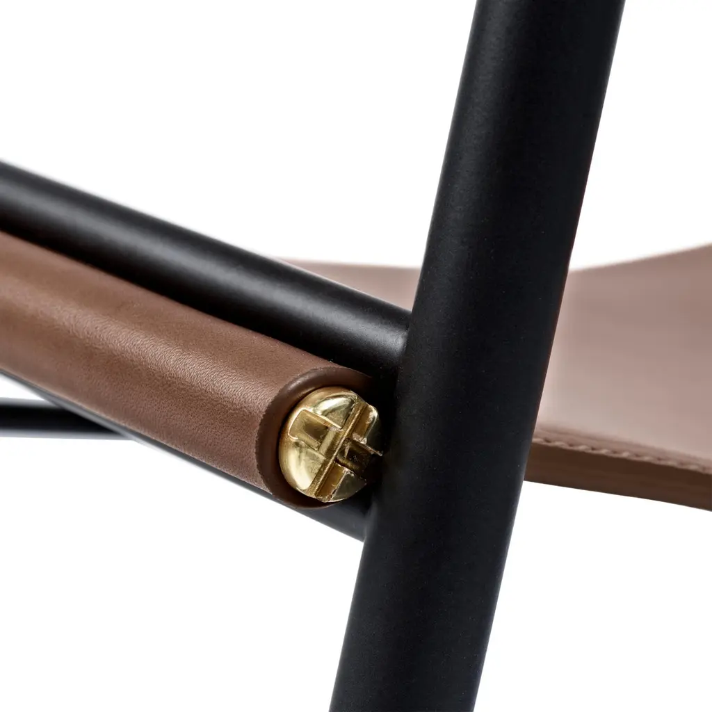 The “Repose” contemporary counter stool belongs to a collection that revisit the director chair collection, serene pieces where exclusivity and precision are shown in small details such as the hand-turned metal nuts and bolts that fix the leather surfaces, that go unnoticed at first sight.The robustness of the steel structure is combined with the delicacy of the rounded structure. The matte metal finishes evoke the passage of time and are complemented by vegetable tanned cowhide leathers that age gracefully with its use.The “Repose” collection is designed and conceived as a tribute to director’s chair or luxury safari foldable furniture. All pieces are done with cold steel rods, machined on a turning lathe, black powder coated and lacquered with a matt rubber effect. Our signature screws are made with brass turning lathed, polished, and lacquered, these are the pieces that fix the saddle leather to the metal frame.Leathers are Spanish hides vegetable tanned. We use premium saddles in five colors to adjust to your taste and interior needs. This traditional vegetable dyeing and tanning method is an organic technique that relies on natural tannings from bark or plant tissues. The use of oils and natural fats give the leather a distinctive flexibility and texture, allowing it to be molded, retain its shape and age graciously.All skins are carefully selected from food industry sub-products, with a minimum thickness of 3.5 mm / 0,02 in, using the part of the animal's shoulder, which allows for larger pieces and uniformity, even though signature wrinkle from the animal’s neck may be recognizable. The vegetable tanning is a traditional and artisan treatment, which is respectful to the environment. Even with careful selection natural marks as a result of the contact with other animals, the age, origin and characteristics of the skin, or even the season in which the tanning takes place cannot be avoided. We still believe that these factors only add authenticity and uniqueness to every piece. Our leather parts are made with double saddles, always showing the top side of the hides that presents the better quality.Customization options.With the aim of creating customized pieces, clients can select from the various leather colors to create pieces that complement their home décor. Leather colors available, black, navy, dark brown, cognac and natural tobacco, and steel color is black.Normally we use off white threats for stitches, but client can select another option, being possible to select any color to make a unique piece for the project it belongs. The finish on the edges of our leather components is sanded and hand painted. We have the option to select an alternative color if not tone on tone will be applied.Please consult in case you are interested on having a particular heat embossing stamp on the leather.Our high-end collections are made to full fill home spaces where to gather and enjoy great conversation with families and friends. Occasional one-of-a-kind furniture for exquisite homes, from cottages to exclusive resorts. Our product is understood as a sculptural piece of design, as an art object to be displayed at different house spaces as library, bar, living, foyer, bedroom, powder, meeting, grand or great room.The different finishes options make the furniture perfect combinations on diverse styles, from rustic mountain home, a small cottage, a ski lodge retreat, or industrial a minimalist look. The 'Repose' contemporary armchair is a part of our exclusive collection that reimagines the classic director chair with a serene and exquisite design. Every detail is carefully crafted, from the hand-turned metal nuts and bolts that secure the leather surfaces, to the robust yet delicate combination of steel and rounded structure. The matte metal finishes evoke a timeless appeal, complemented by vegetable-tanned cowhide leathers that age gracefully over time.Designed as a tribute to director's chairs and luxury safari foldable furniture, the 'Repose' armchair is meticulously constructed using cold steel rods, machined on a turning lathe, and finished with a black powder coating and a matt rubber effect. Our signature brass screws not only add elegance but also securely fix the saddle leather to the metal frame.We use premium Spanish hides that undergo vegetable tanning, a traditional and environmentally-friendly technique relying on natural tannings from bark or plant tissues. The use of oils and natural fats gives the leather a distinctive flexibility, texture, and longevity, allowing it to mold, retain its shape, and age gracefully. Each skin is carefully selected from food industry sub-products, ensuring a minimum thickness of 3.5 mm / 0.02 in. While some natural marks and wrinkles from the animal's neck may be noticeable, we believe they enhance the authenticity and uniqueness of every piece.Our leather parts are made with double saddles, always showcasing the top side of the hides for superior quality. We offer customization options to suit individual preferences and home décor, with a range of leather colors including black, navy, dark brown, cognac, and natural tobacco. The steel color is black, seamlessly blending with various interior styles.For stitching, we typically use off-white threads, but clients have the flexibility to select alternative colors, making each piece truly unique. The edges of our leather components are meticulously sanded and hand-painted, providing a refined finish. Additionally, we offer the option to choose an alternative color for a striking contrast if a tone-on-tone effect is not preferred.If you desire a personal touch, we offer the possibility of incorporating a particular heat embossing stamp on the leather. Our high-end collections are designed to create a gathering space for families and friends, offering one-of-a-kind furniture for exquisite homes, ranging from cottages to exclusive resorts. Each piece is a sculptural work of art, perfect for 