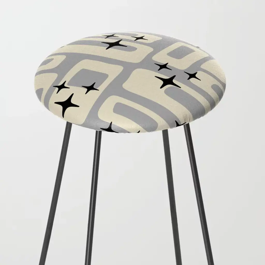Retro Mid Century Modern Abstract Pattern 576 Gray Black Stool
