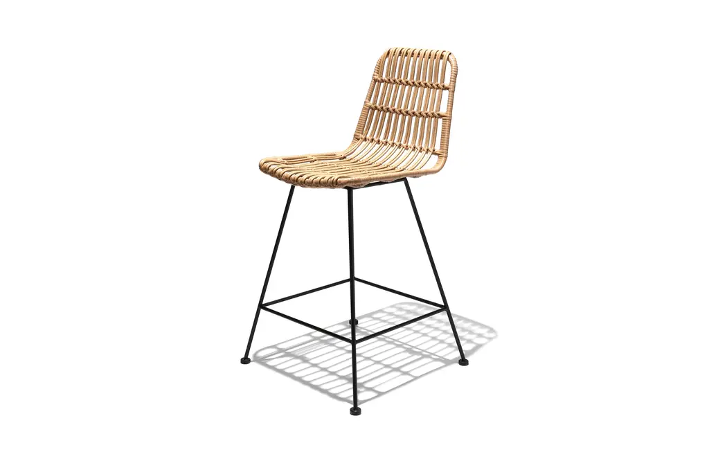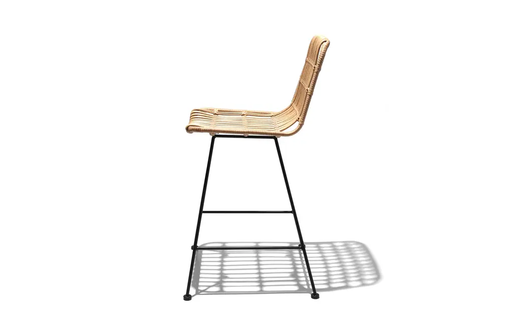 Elevate your outdoor space with the sleek, natural profile of the Riley Stool. The contrast between the slender metal frame and the natural feel of rattan unites in an elegant synchronous upward movement.