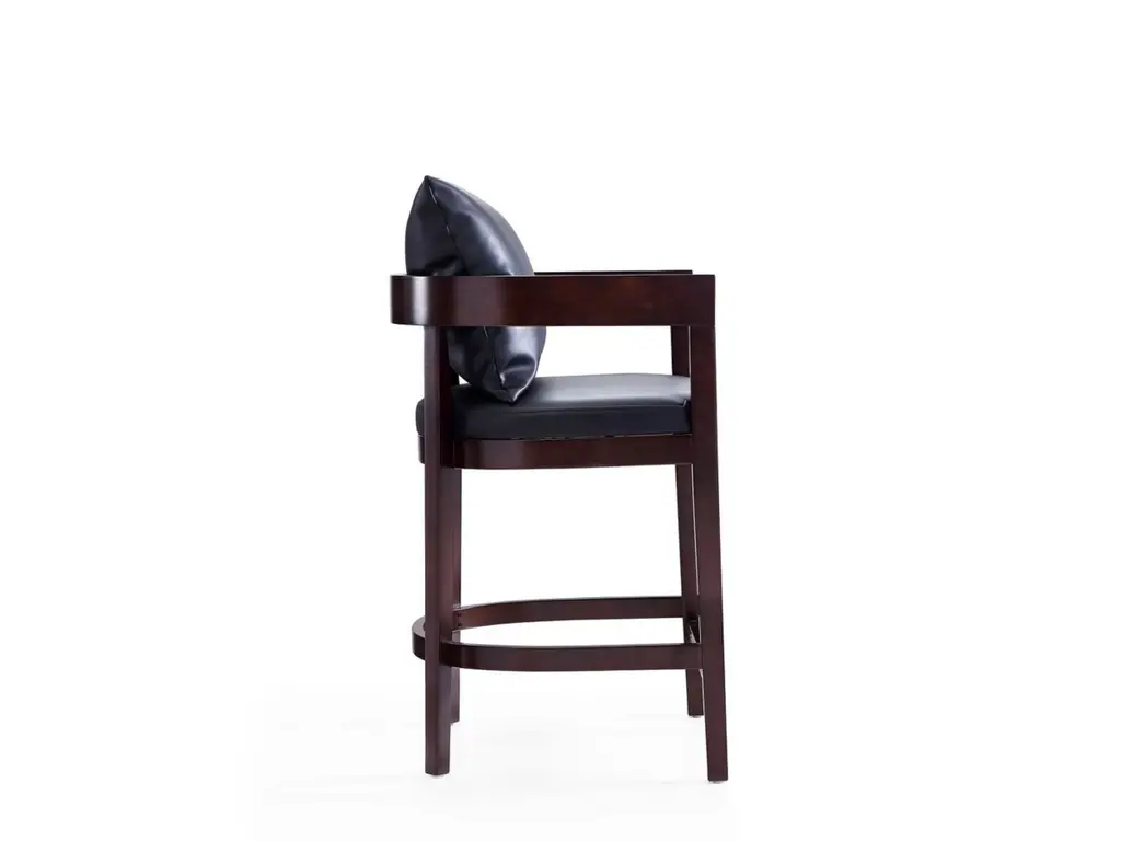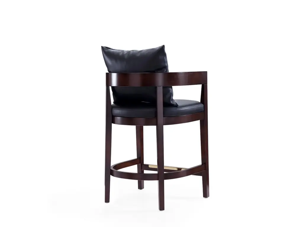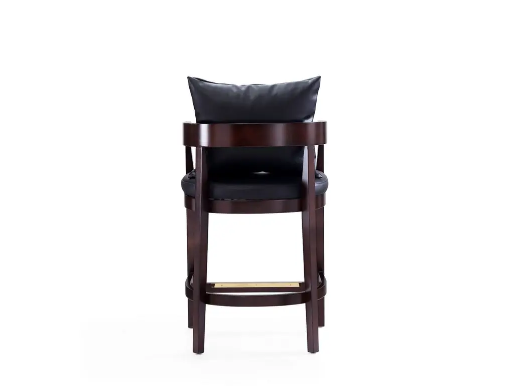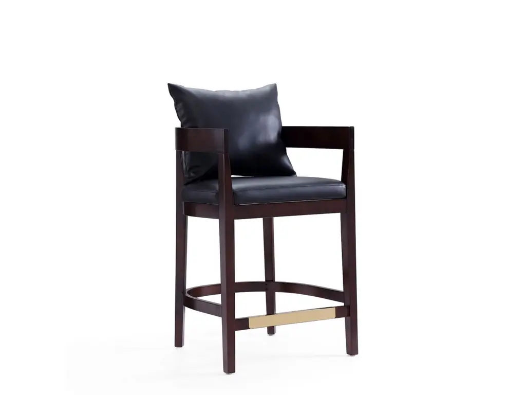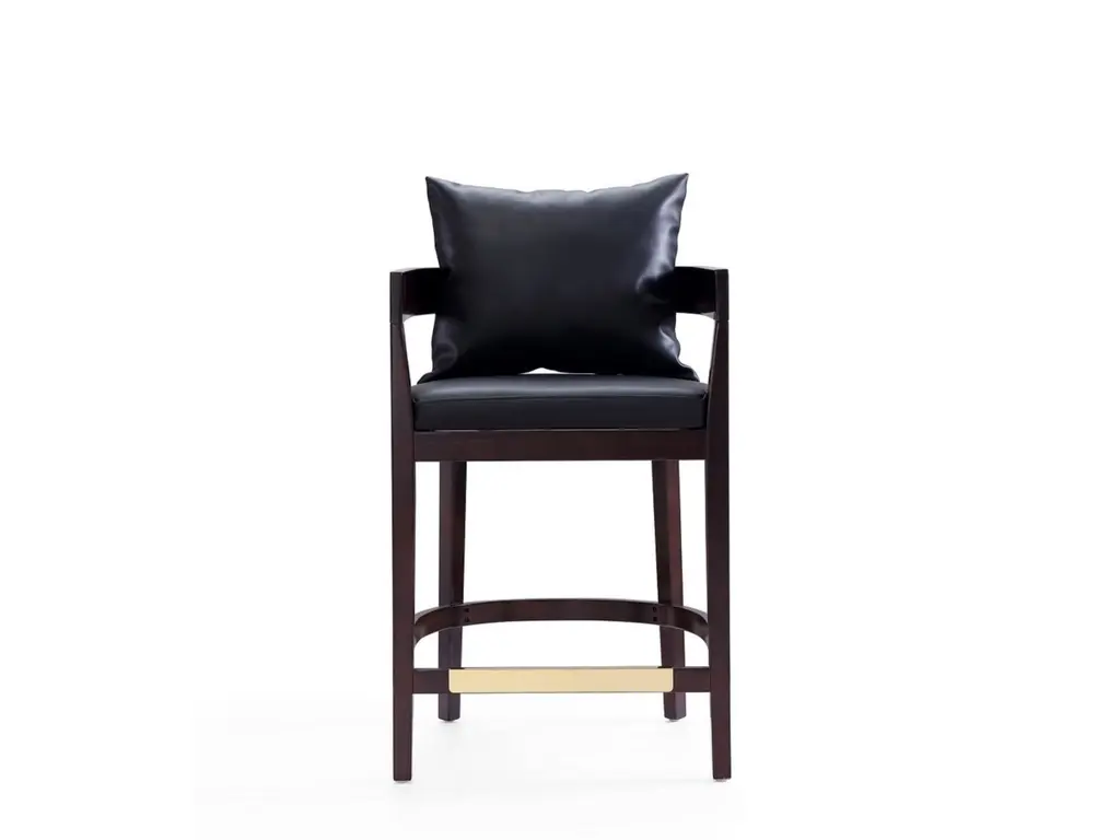 Standing on solid wood legs, this stool's wide cushioned seat and back, offers comfort and a clean-lined aesthetic to kitchen islands and bar tops. Accented with a goldtone finished footrest, casual comfort meets sleek and chic modern design to update or accent your home's upscale decor.