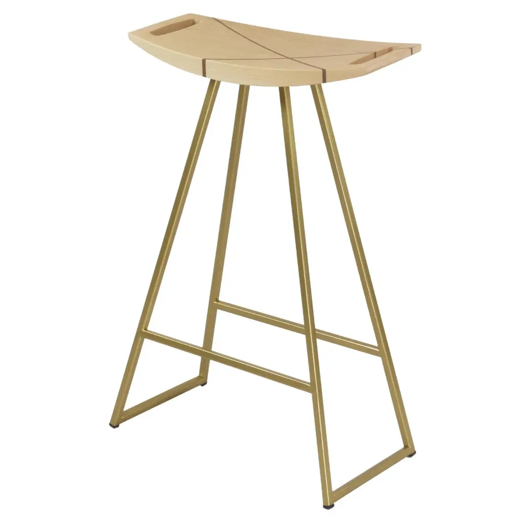 This sleek stool has a thin carved wooden seat that rests on a steel tubing base. The elegant seat is curved for seamless comfort while displaying a stunning intersecting diagonal accent inlay. This eye-catching and durable piece will make any kitchen counter, bar or table stand out. The color options for the powder-coated base are red, green, orange, or yellow. Or if you’re not quite that daring we also offer white and black. The seat comes in either Walnut with Maple inlayed, Maple with a Walnut inlay, solid Walnut or solid Maple. The Roberts is available in table, counter and bar height. Measures: 24" H.