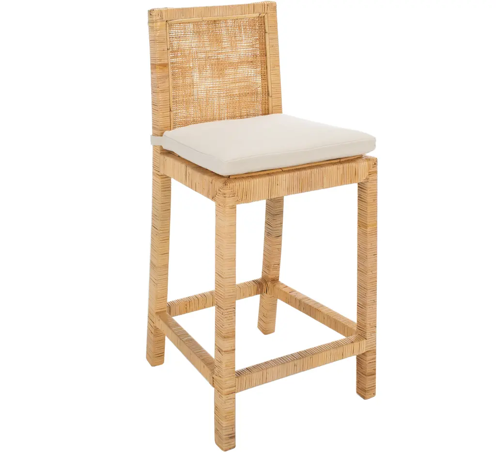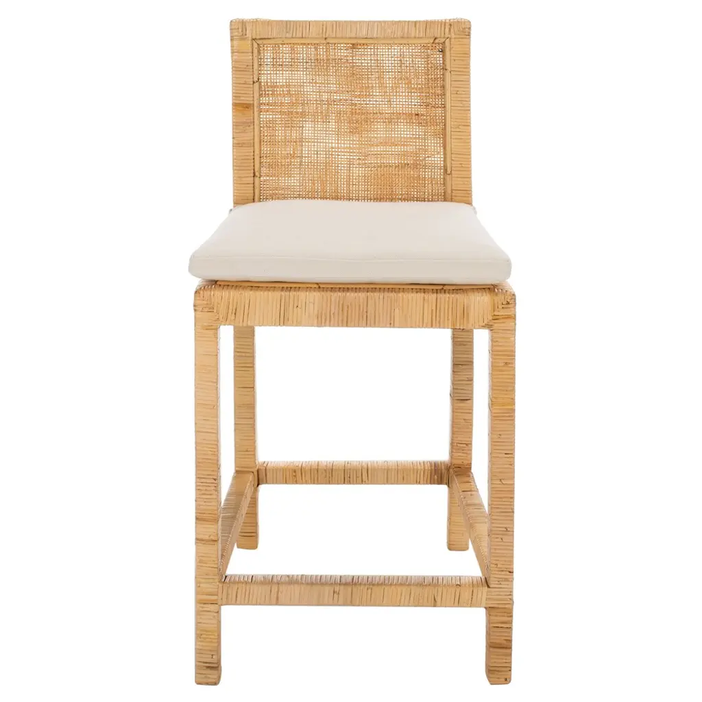 Robias 24.5"h Rectangular Rattan And Water Hyacinth Counter Stool