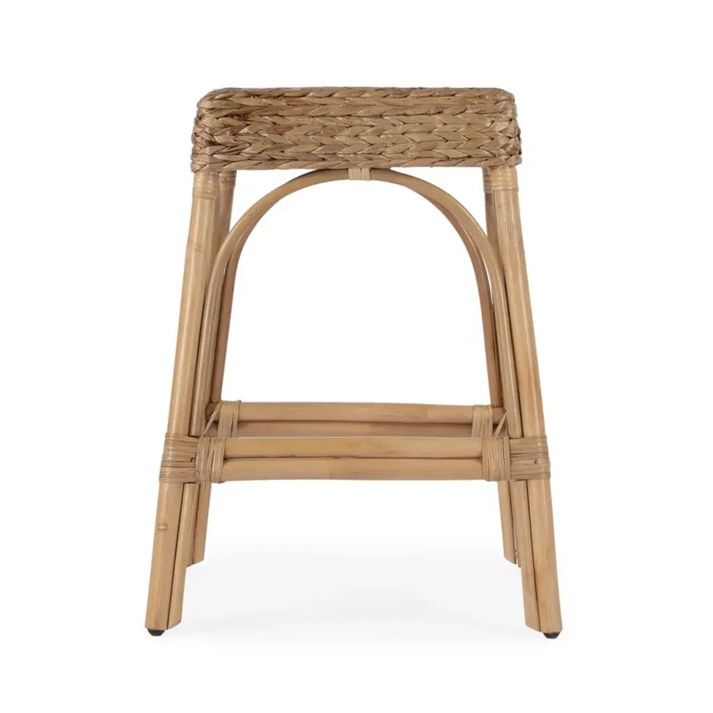 Bring relaxed style to your kitchen, dining room, or office space with this backless rectangular counter stool. Thoughtfully designed from thick bent rattan for superb durability, it features a seat and trim made from naturally-occurring water hyacinth. The hand-woven water hyacinth fibers are abundant in tonal variation with a golden sun-kissed finish and a protective lacquer finish for easy clean-up. This counter stool is lightweight for easy mobility with comfort to make any space it's in a frequent gathering place.