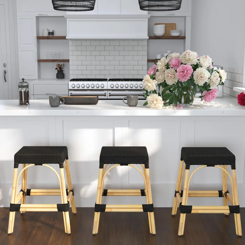 Robias Rectangular Rattan 24.5" Counter Stool In Black