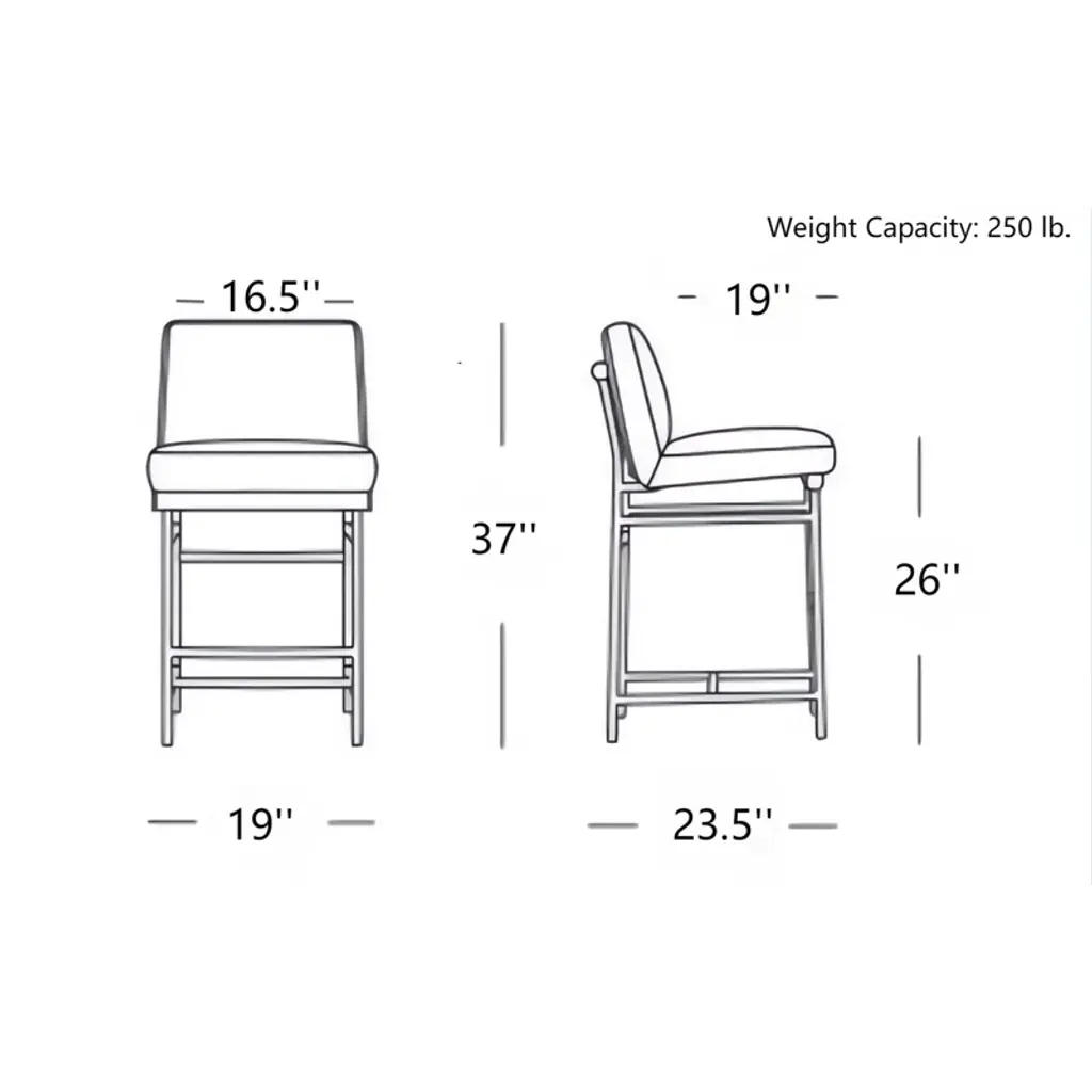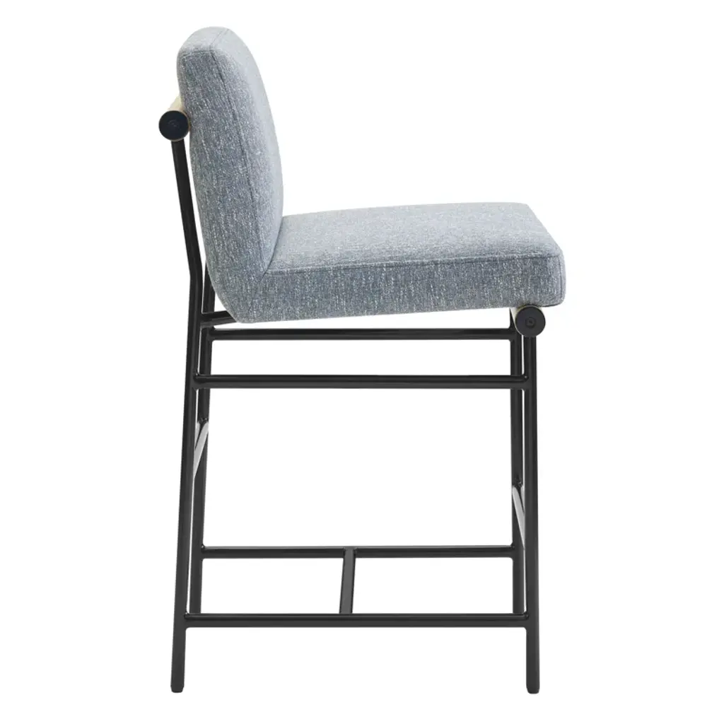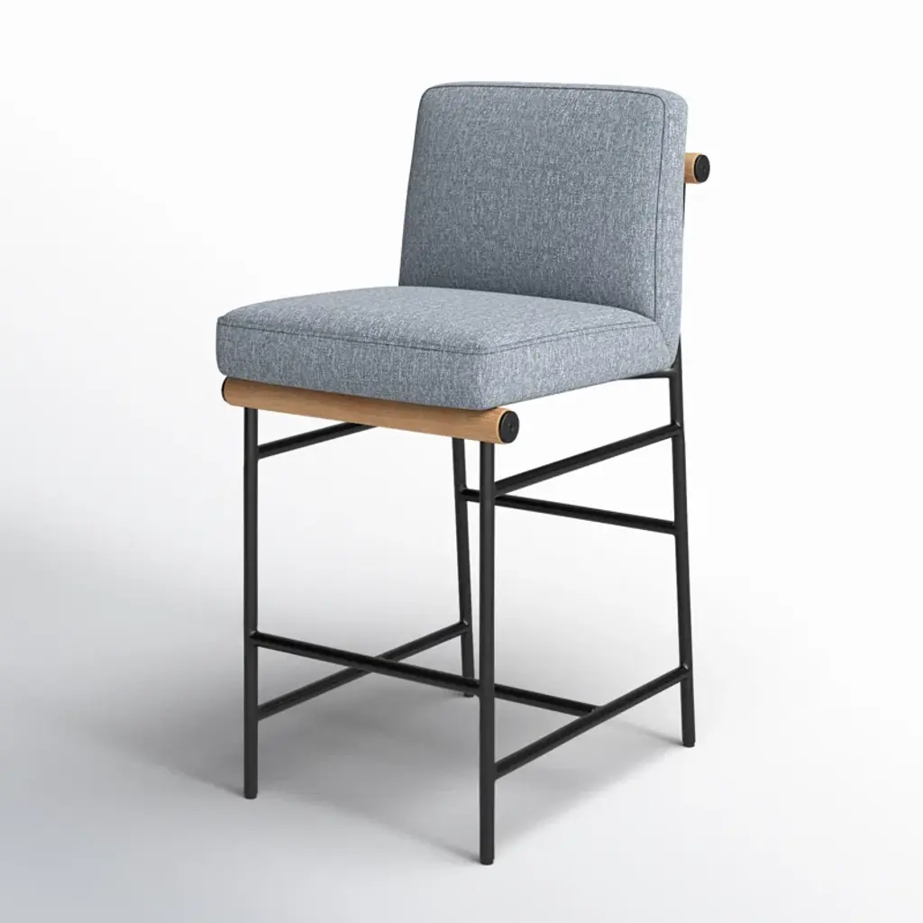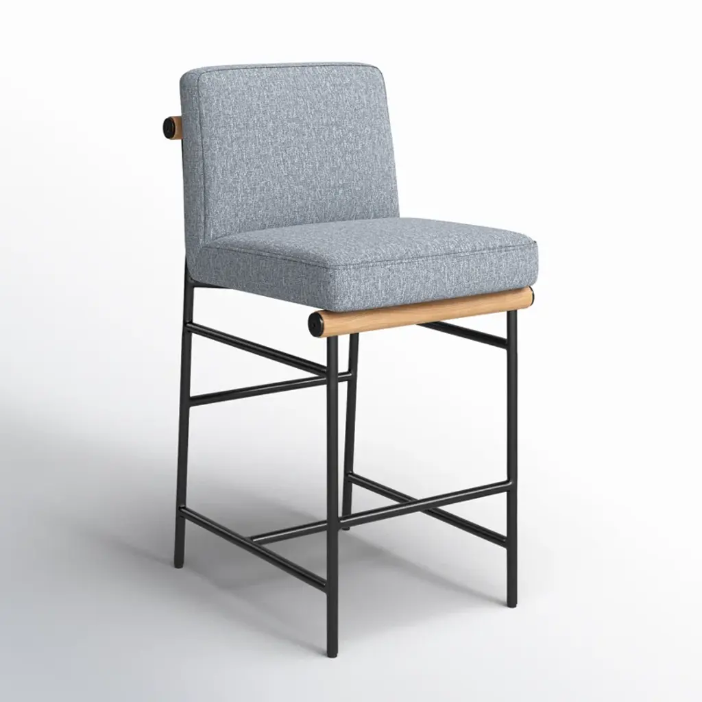 With its mixed materials, the Delmore upholstered stool is a celebration of texture and handsome style. Clean-lined metal legs deliver stability and durability with a modern appeal. Wood accents bring natural warmth and visual interest to the bar stool. Boxed cushions and neutral upholstery enhance the modern character. Comfortable and supportive, the seat and backrest boast a high-density foam fill. Perfect for resting your feet, the crossbar provides stability while doubling as a footrest. Easy-to-clean upholstery makes the Delmore counter stool a smart choice. The 26-inch seat height is ideal for kitchen islands or counter-height tables.