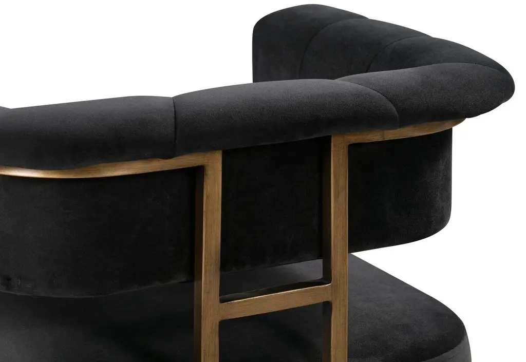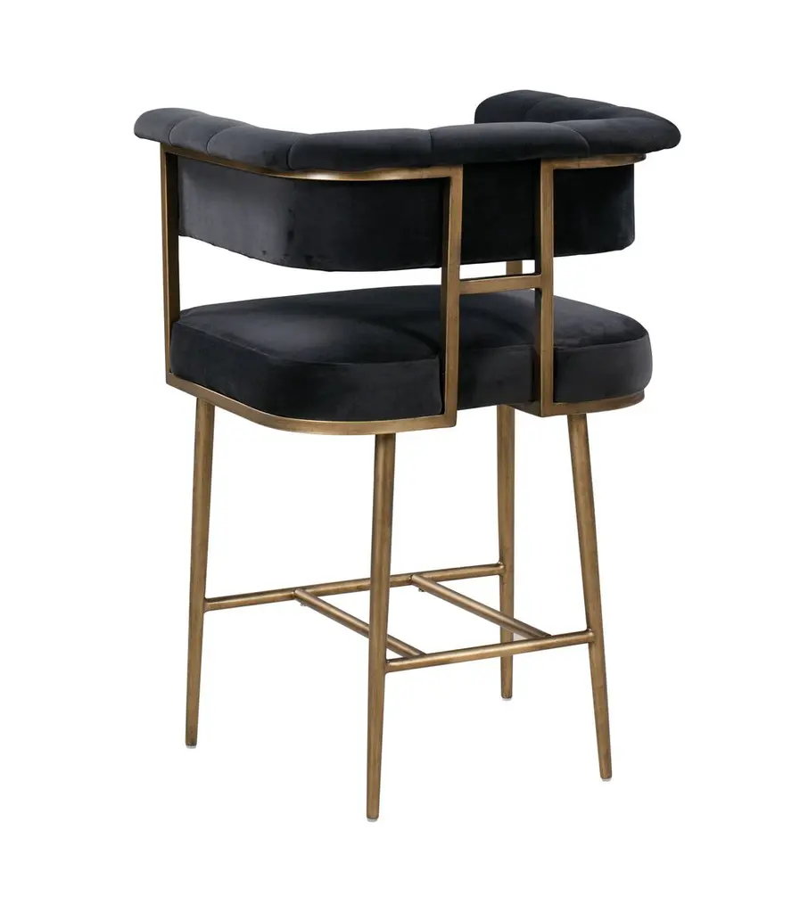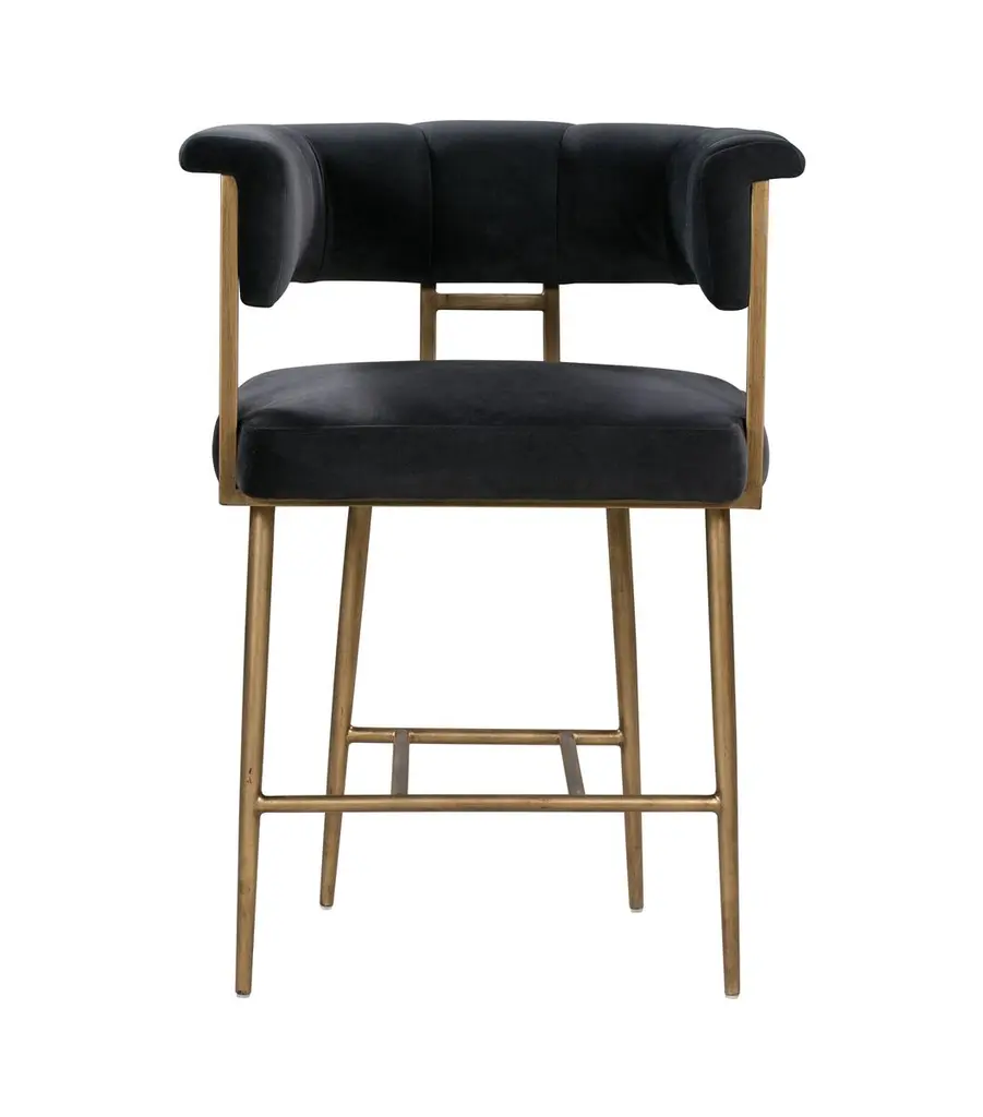 This counter stool proves that comfort and glamour can go hand-in-hand. The plush velvet upholstery and generous padding make this a seat you'll want to linger in; the golden frame, channeled back and arms, and sculptural silhouette command attention.
