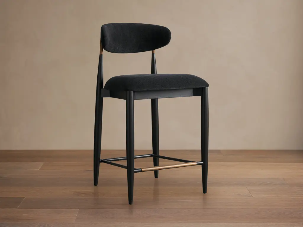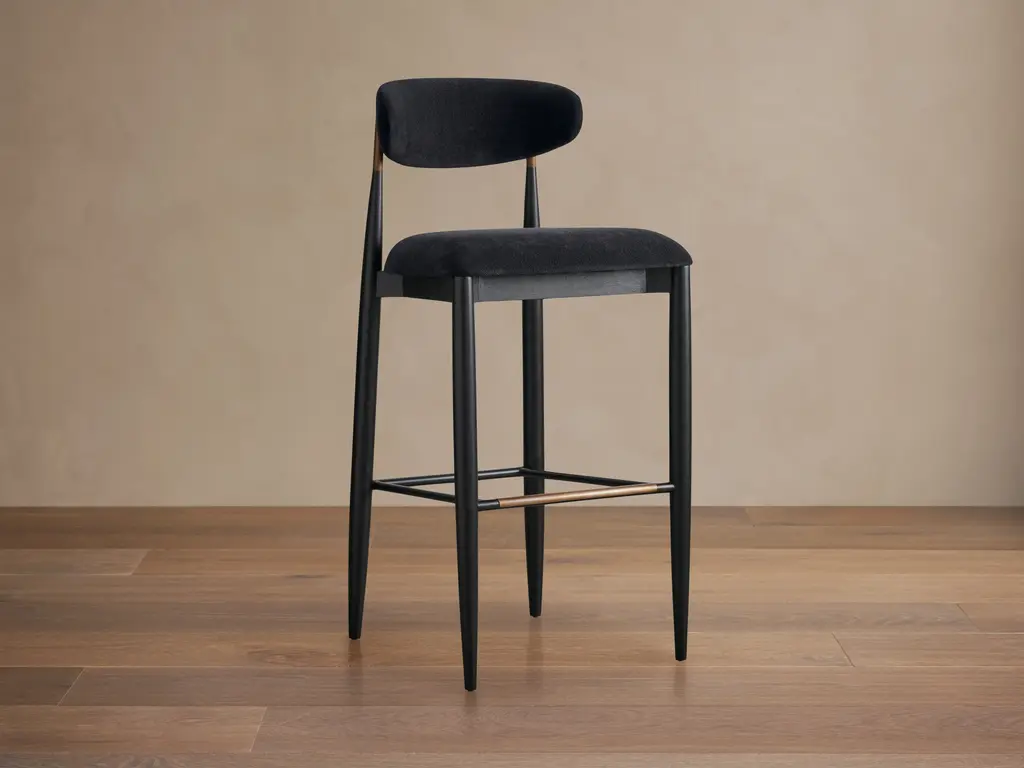 Neuilly too stands out for its delicate image and unique formal qualities which combine the geometric purity of the classic stool with a level of comfort that is evident at first glance. The slender proportions of the linear metal frame further highlight the circular padded seat while at the same time the ergonomic profile of the welcoming backrest/armrest offers a natural seating position and guarantees the stool great ease of use both in bar spaces and facing counters in dining areas.