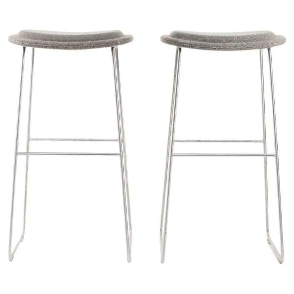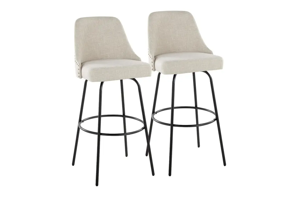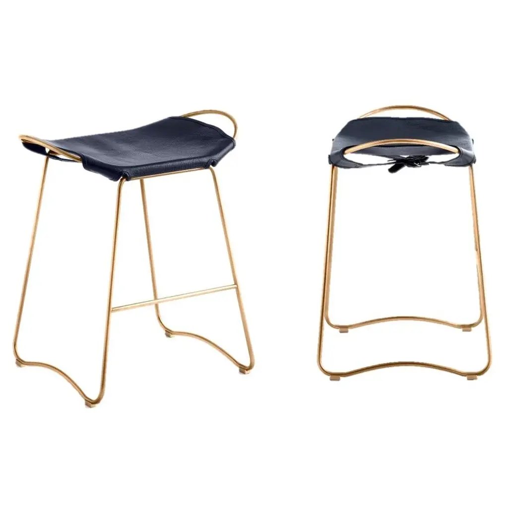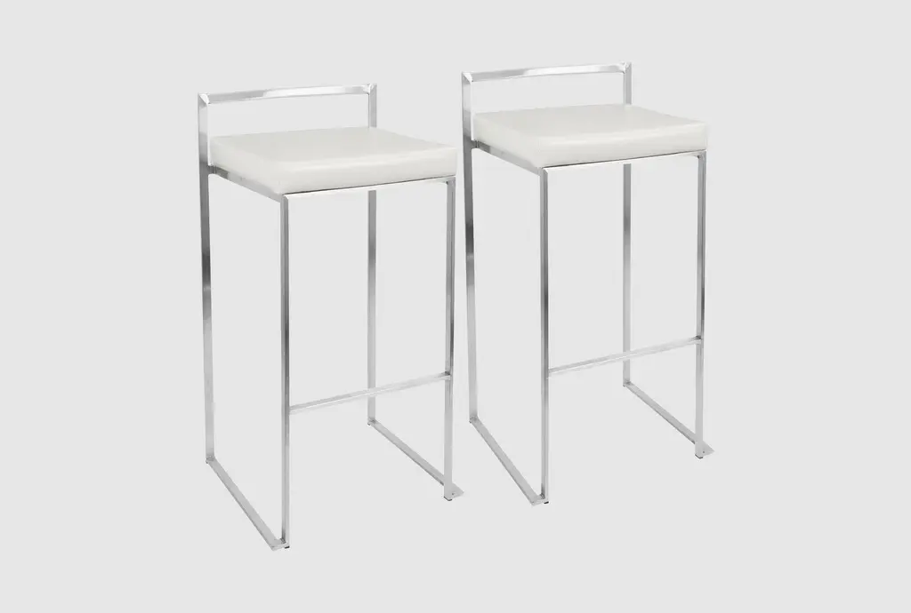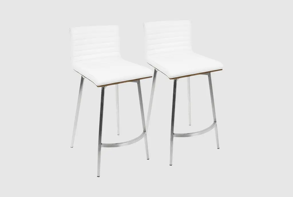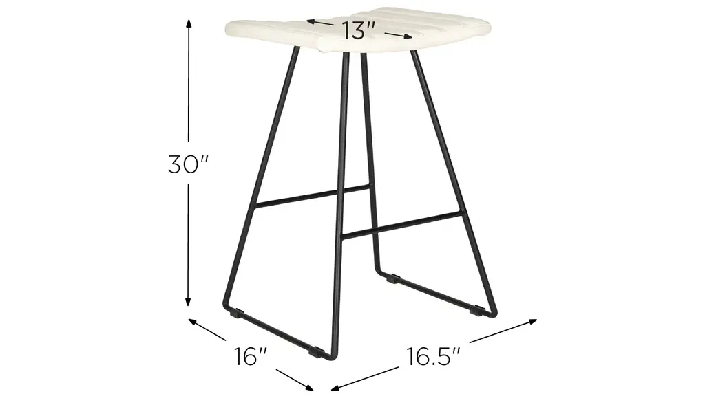 Raise the bar for fashion in the kitchen or family room with the airy look and clean silhouette of the Roy counter stool. A comfy channel quilted seat of cream Polyurethane leather rests atop a whisper thin A line frame of iron supported by sturdy crossbars.