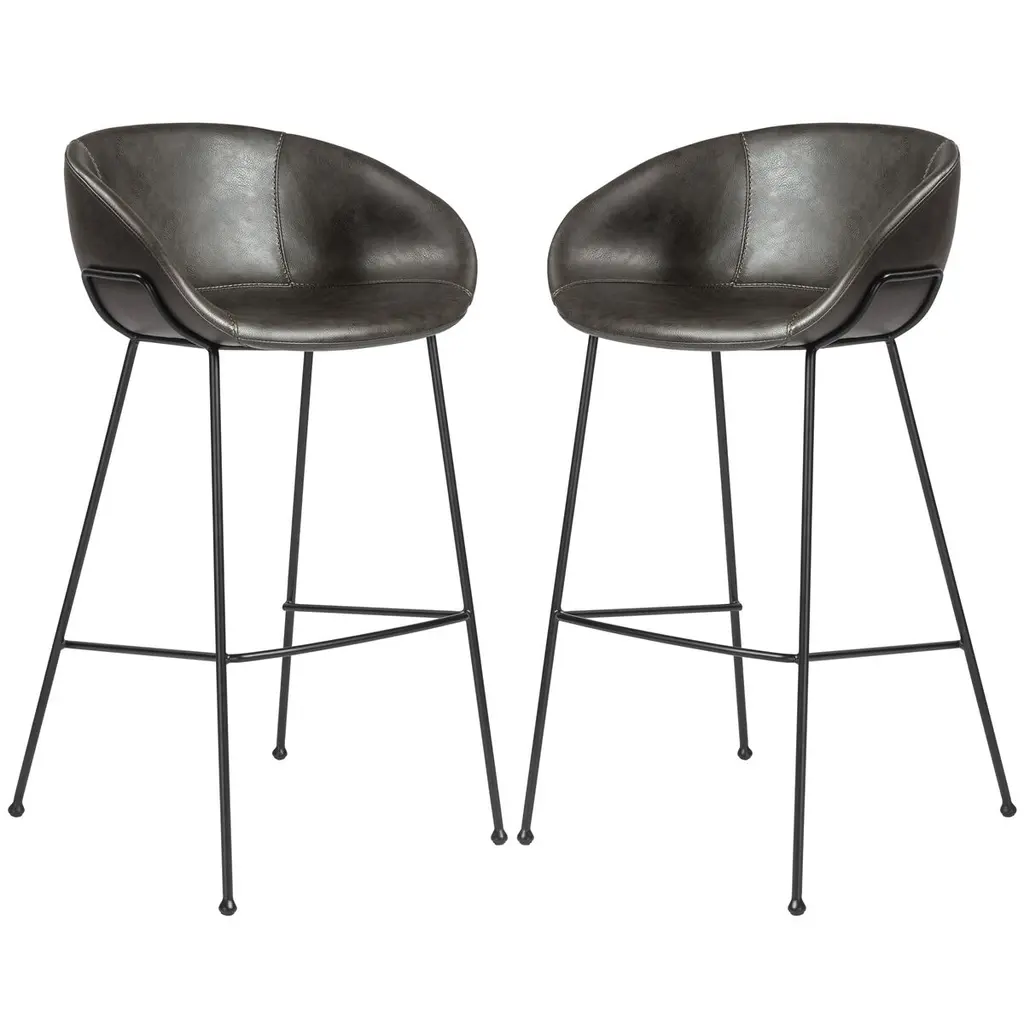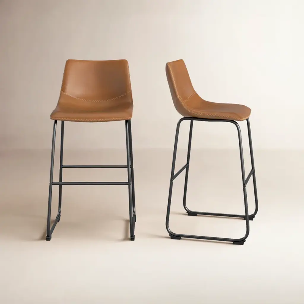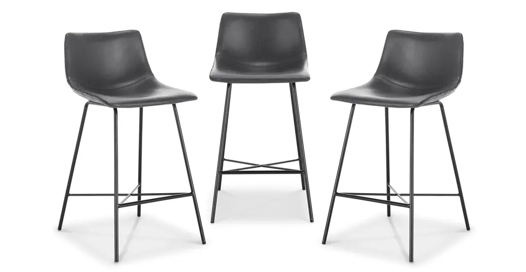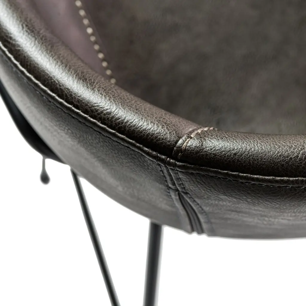 The Bexley Collection cradles you in distressed leatherette or fabric while matte black powder coated solid rod steel legs provide a sturdy support. Thicker stitching on the seat is stylish and durable, and the rounded feet are a delightful accent.
