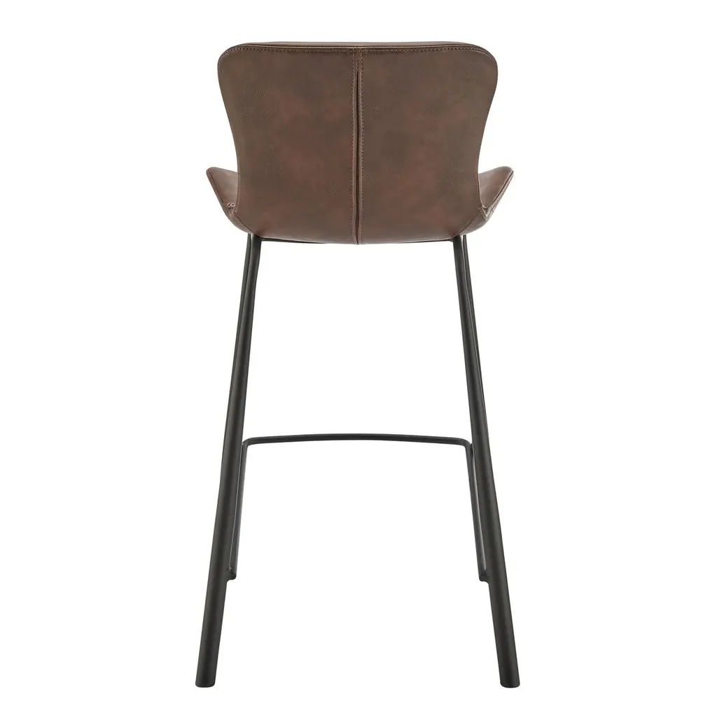 Vintage looks and contemporary style meet in this uniquely silhouetted stool. The Harmonique Counter Stool’s seat and back are made of vintage leatherette over foam and feature baseball stitching accents. The matte black steel legs are tapered towards the top, giving the overall shape of the Harmonique even more interest. From traditional to modern, this stool would be at home in nearly any interior.