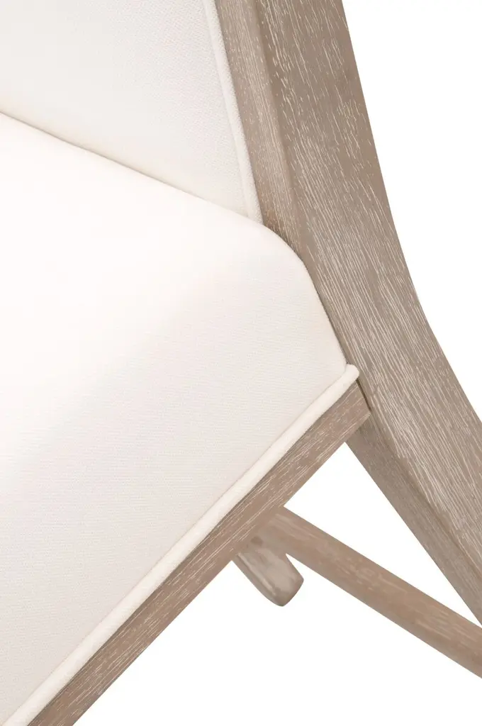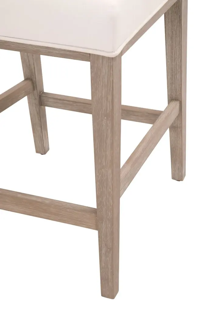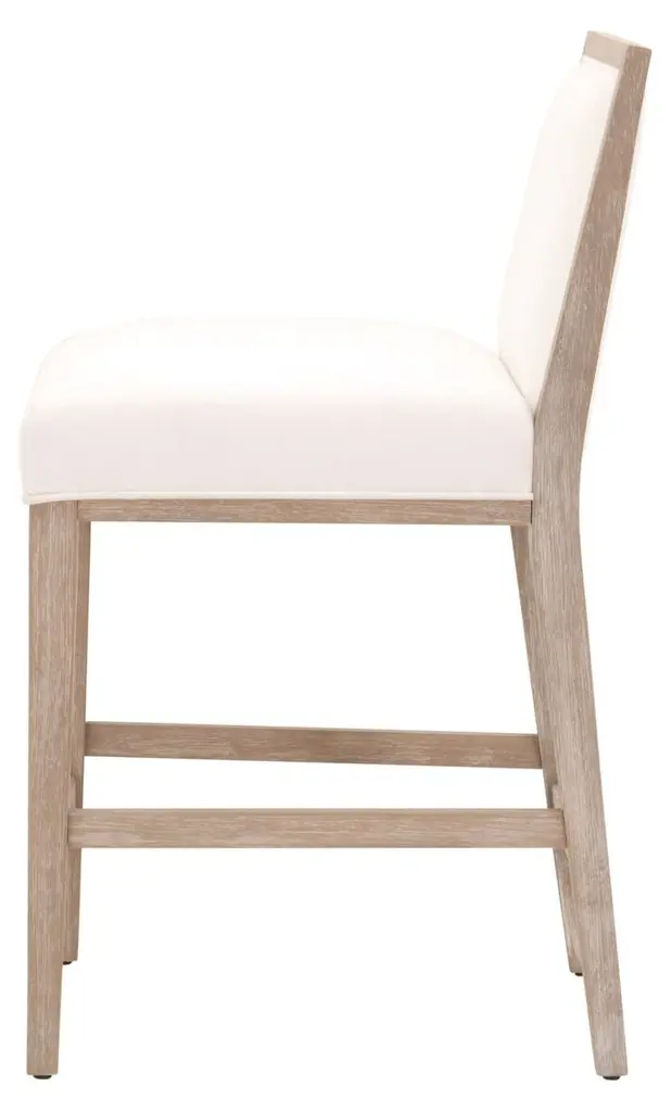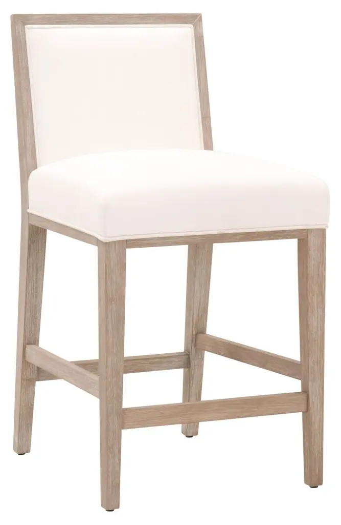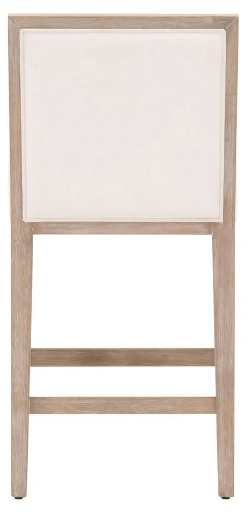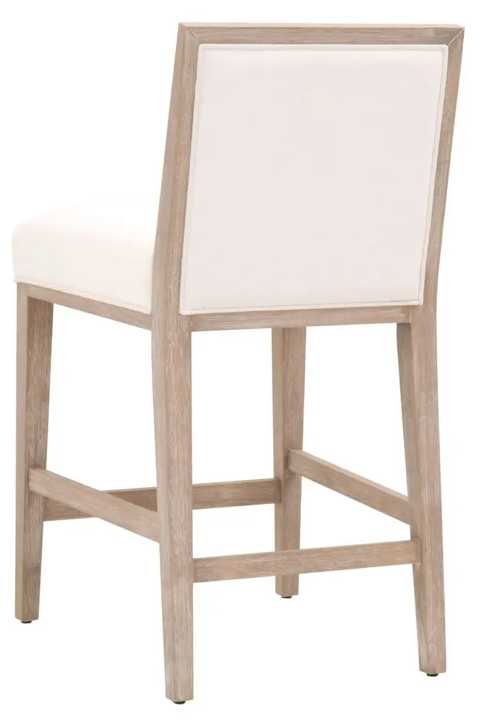 Designed with exposed rubberwood frames, these streamlined counter stools are finished in a natural gray hue and upholstered in durable, stain-resistant performance fabric.
