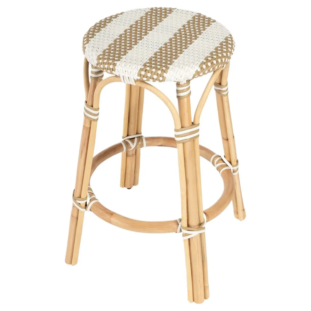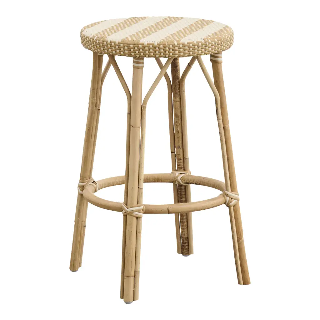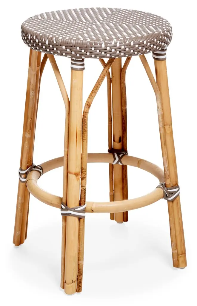 Evoking images of sidewalk tables in the Cote d'Azur, these counter stools will bring the casual sophistication of a Mediterranean coastal bistro to your kitchen, dining area, or covered patio. Expertly crafted from thick bent rattan for superb durability, they feature weather-resistant woven plastic to complement your space. These backless counter stools are lightweight for easy mobility, ensuring comfort and making any space they're in a frequent gathering place.