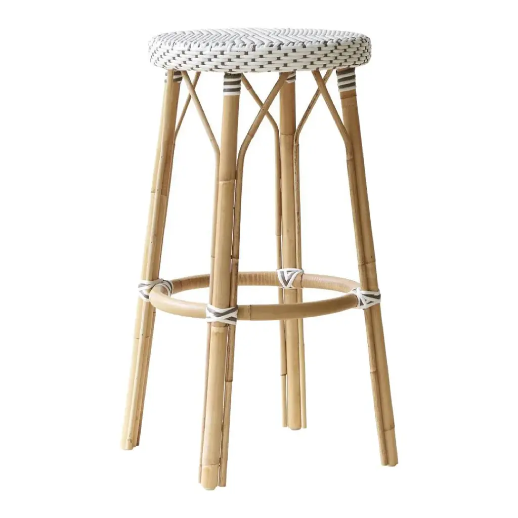 Evoking images of sidewalk tables in the Cote d'Azur, these counter stools will bring the casual sophistication of a Mediterranean coastal bistro to your kitchen, dining area, or covered patio. Expertly crafted from thick bent rattan for superb durability, they feature weather-resistant woven plastic to complement your space. These backless counter stools are lightweight for easy mobility, ensuring comfort and making any space they're in a frequent gathering place.