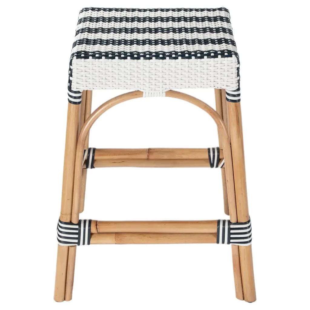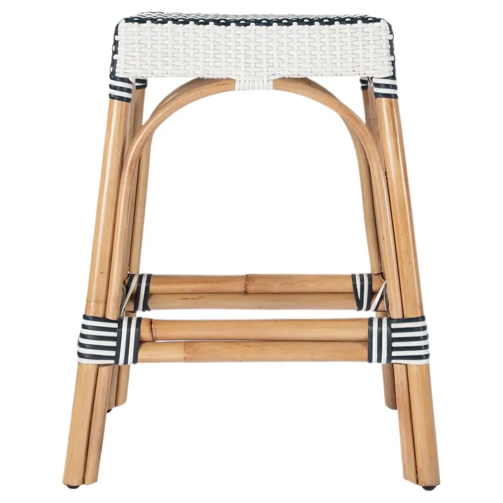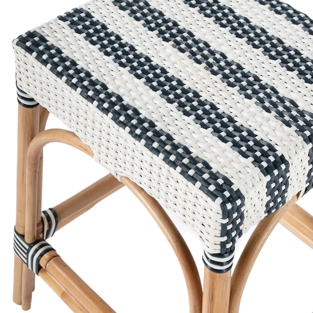 Evoking images of sidewalk tables in the Cote d'Azur, these counter stools will bring the casual sophistication of a Mediterranean coastal bistro to your kitchen, dining area, or covered patio. Expertly crafted from thick bent rattan for superb durability, they feature weather-resistant woven plastic to complement your space. These backless counter stools are lightweight for easy mobility, ensuring comfort and making any space they're in a frequent gathering place.