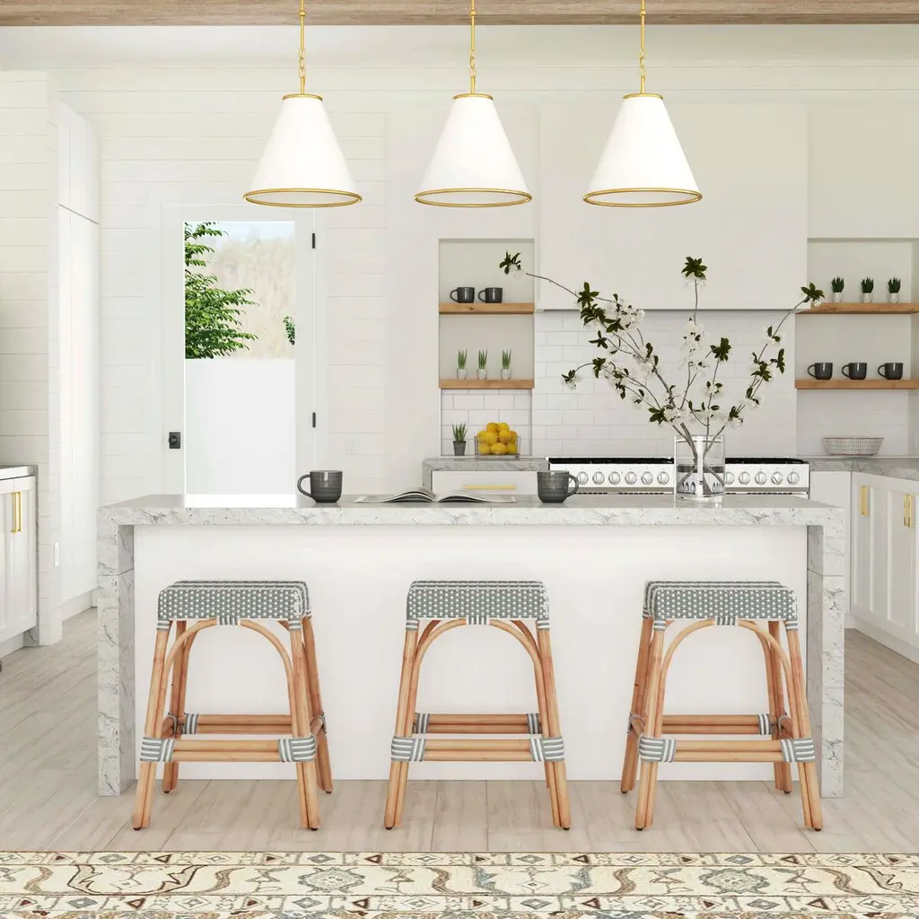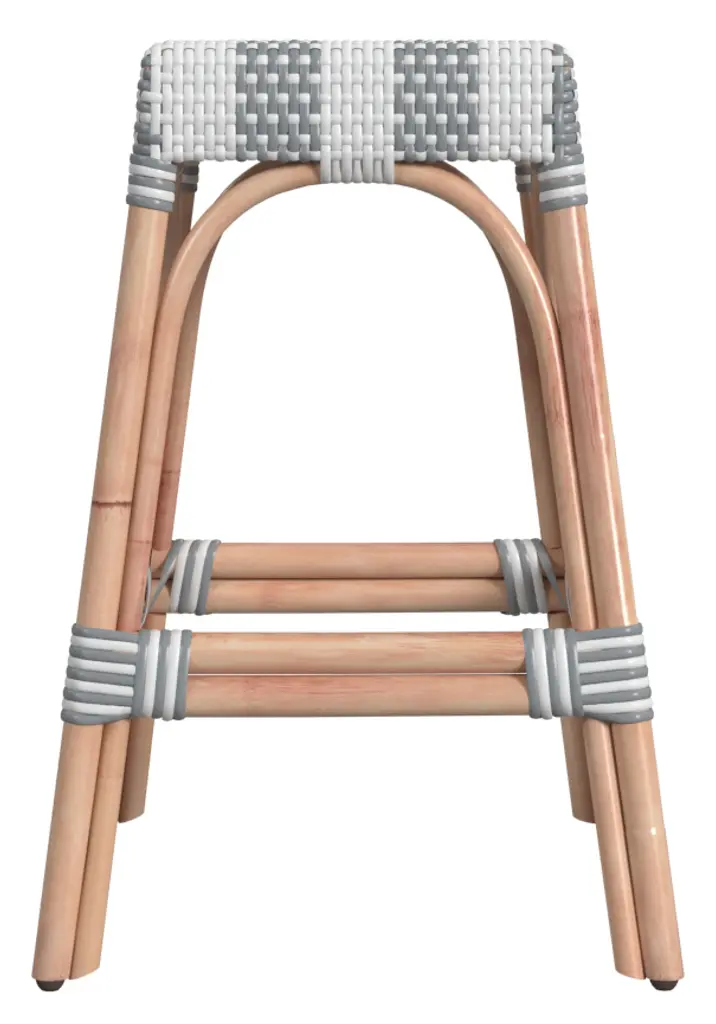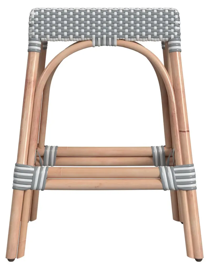 Evoking images of sidewalk tables in the Cote d'Azur, these counter stools will bring the casual sophistication of a Mediterranean coastal bistro to your kitchen, dining area, or covered patio. Expertly crafted from thick bent rattan for superb durability, they feature weather-resistant woven plastic to complement your space. These backless counter stools are lightweight for easy mobility, ensuring comfort and making any space they're in a frequent gathering place.