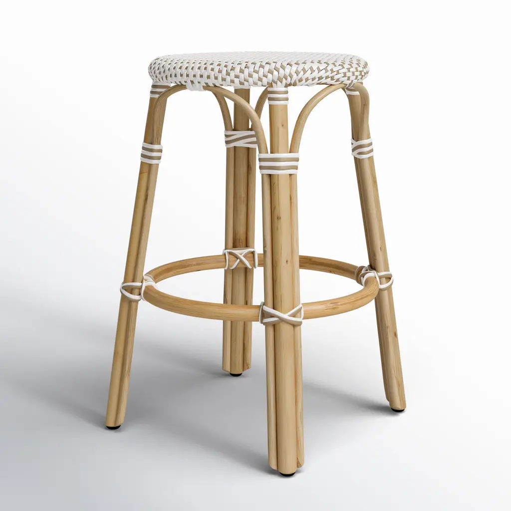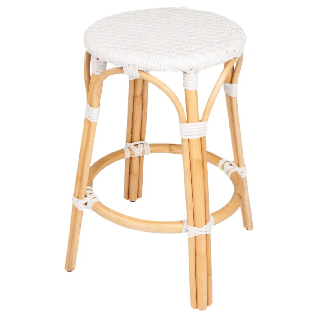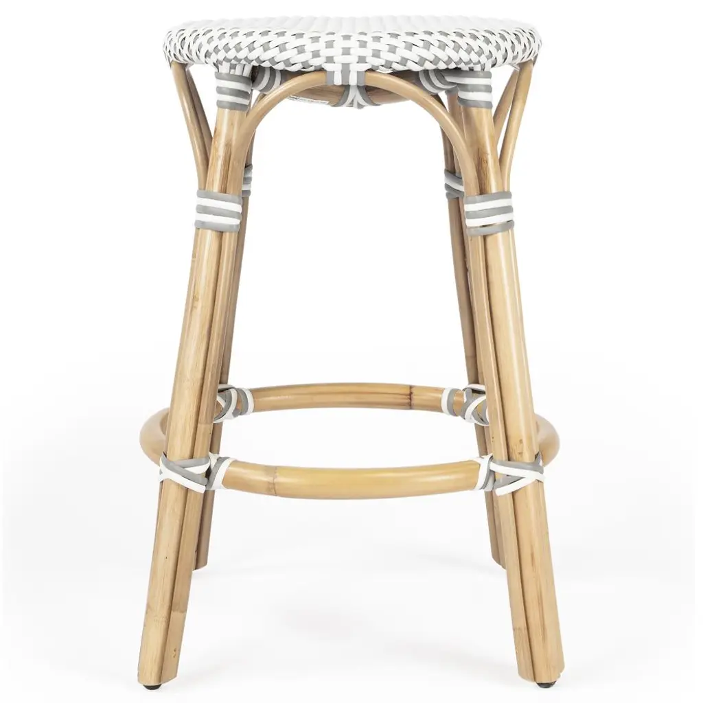 Evoking images of sidewalk tables in the Cote d'Azur, these counter stools will bring the casual sophistication of a Mediterranean coastal bistro to your kitchen, dining area, or covered patio. Expertly crafted from thick bent rattan for superb durability, they feature weather-resistant woven plastic to complement your space. These backless counter stools are lightweight for easy mobility, ensuring comfort and making any space they're in a frequent gathering place.