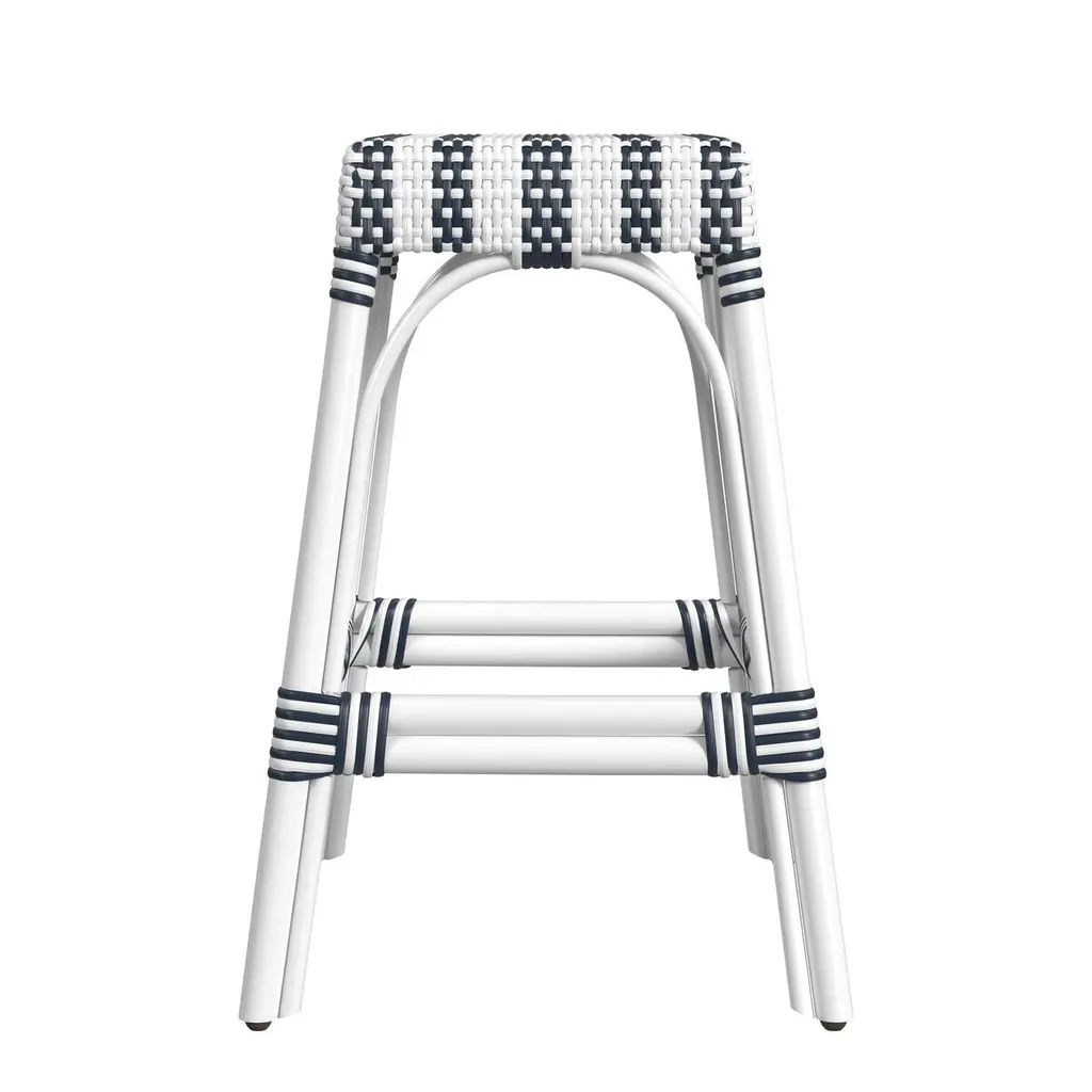 Evoking images of sidewalk tables in the Cote d'Azur, these counter stools will bring the casual sophistication of a Mediterranean coastal bistro to your kitchen, dining area, or covered patio. Expertly crafted from thick bent rattan for superb durability, they feature weather-resistant woven plastic to complement your space. These backless counter stools are lightweight for easy mobility, ensuring comfort and making any space they're in a frequent gathering place.