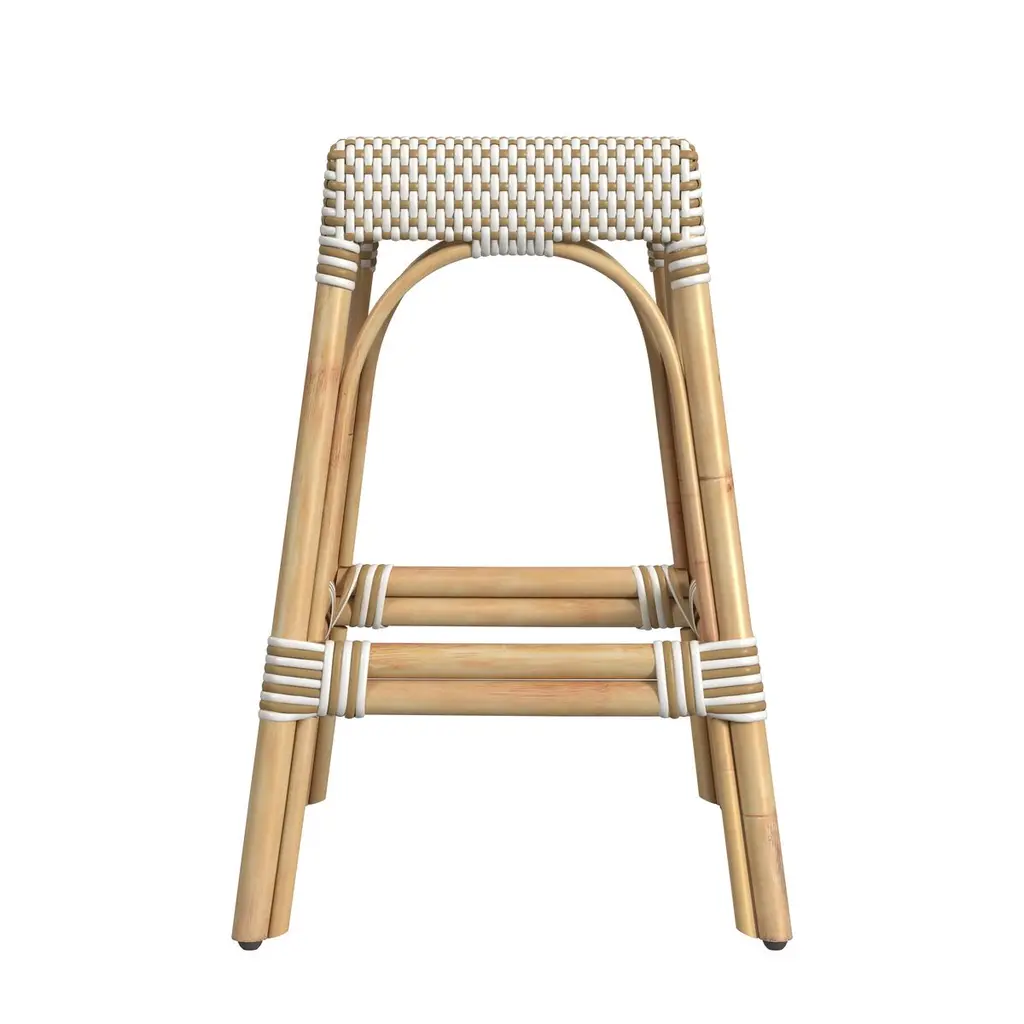 Evoking images of sidewalk tables in the Cote d'Azur, these counter stools will bring the casual sophistication of a Mediterranean coastal bistro to your kitchen, dining area, or covered patio. Expertly crafted from thick bent rattan for superb durability, they feature weather-resistant woven plastic to complement your space. These backless counter stools are lightweight for easy mobility, ensuring comfort and making any space they're in a frequent gathering place.