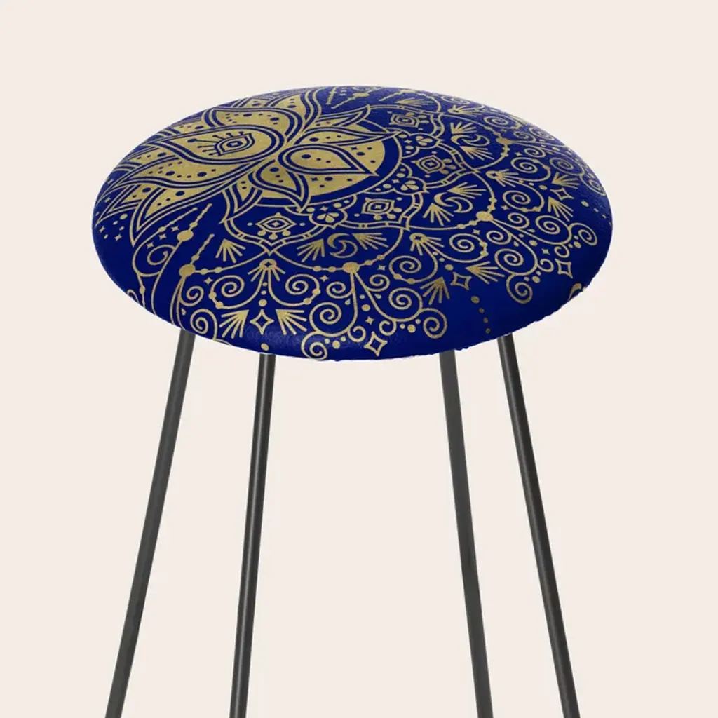 Sacred Lotus Mandala – Navy & Gold Palette Stool