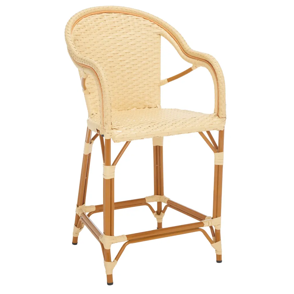 Bring breezy style to your al fresco dining with this California Counter Stool. Inspired by the time-honored French bistro chair, its woven contours and sheltering arms offer easy comfort. Featuring faux wicker elegantly wrapped around an aluminum frame, this counter stool captures textural beauty that can withstand the effect of sun, rain, and heat.