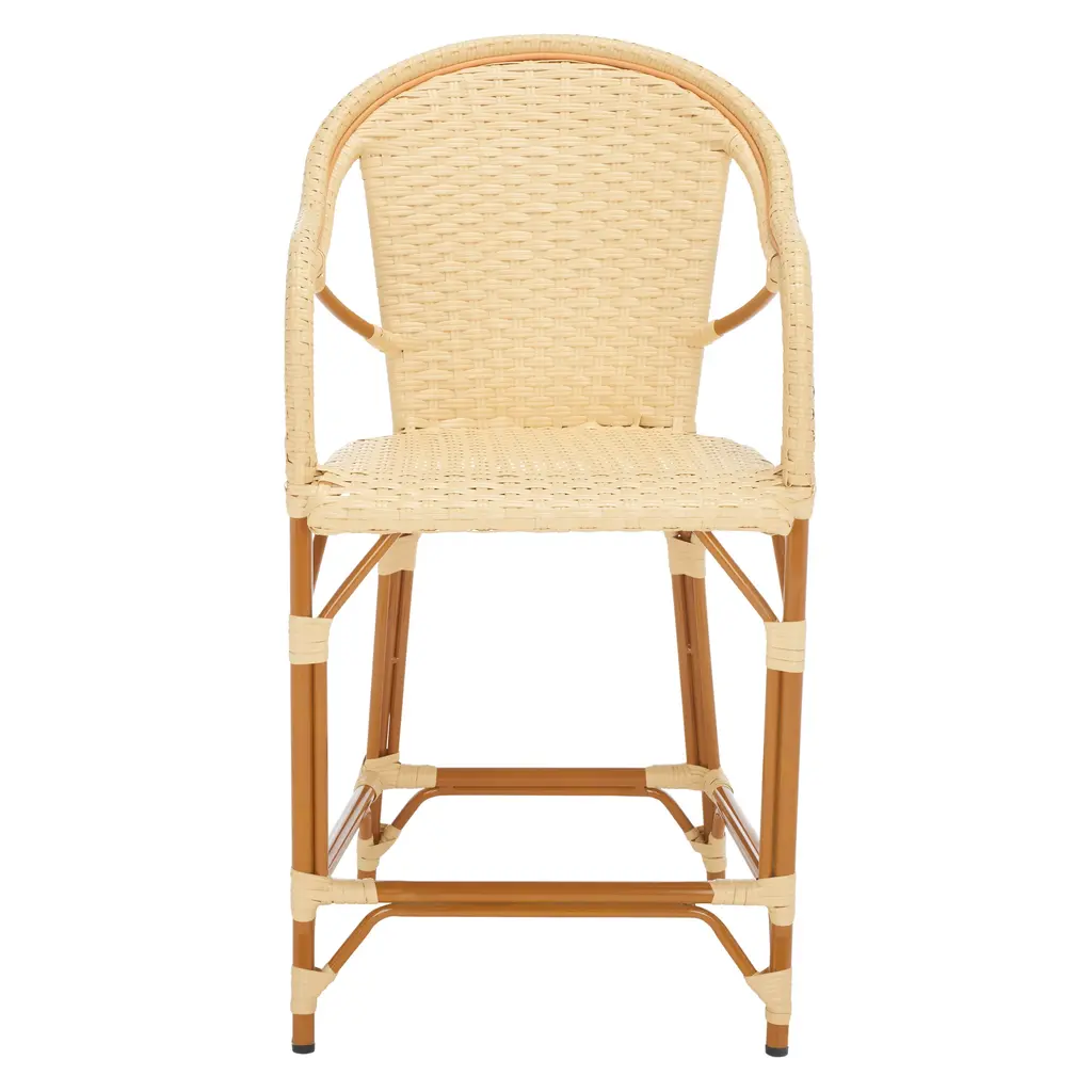 Safavieh California Outdoor Bistro 26-Inch Counter Stool With Arms - 23"w X 26"d X 43"h - Natural