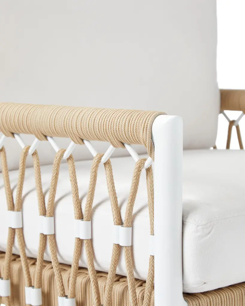 Days of leisure. A sleek profile with a nod to hand-wrapped sailing rope. Dine, live, lounge — an alfresco collection.