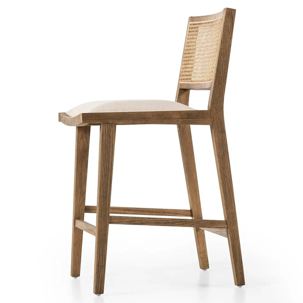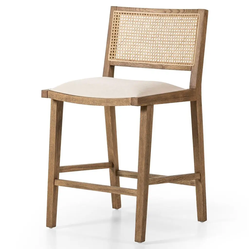 Samantha Coastal White Performance Oak Wood Natural Cane Counter Stool