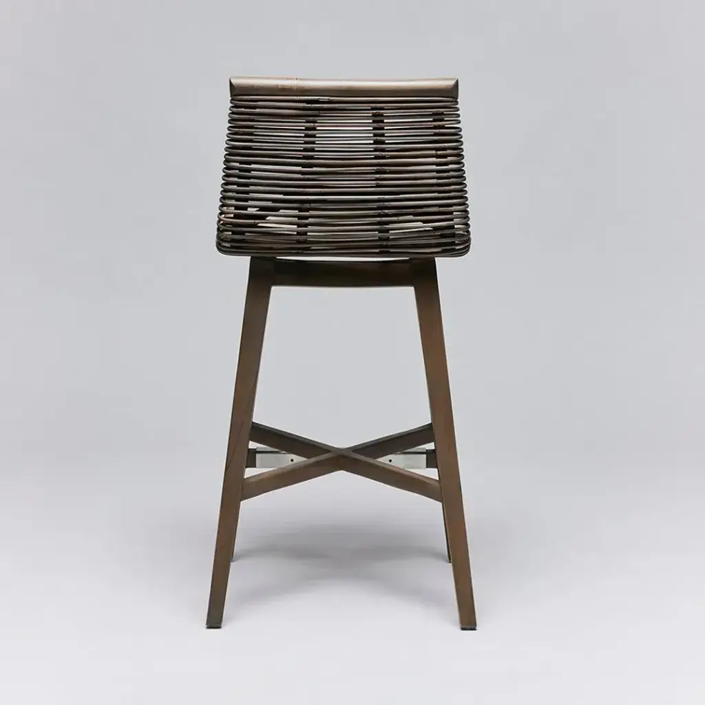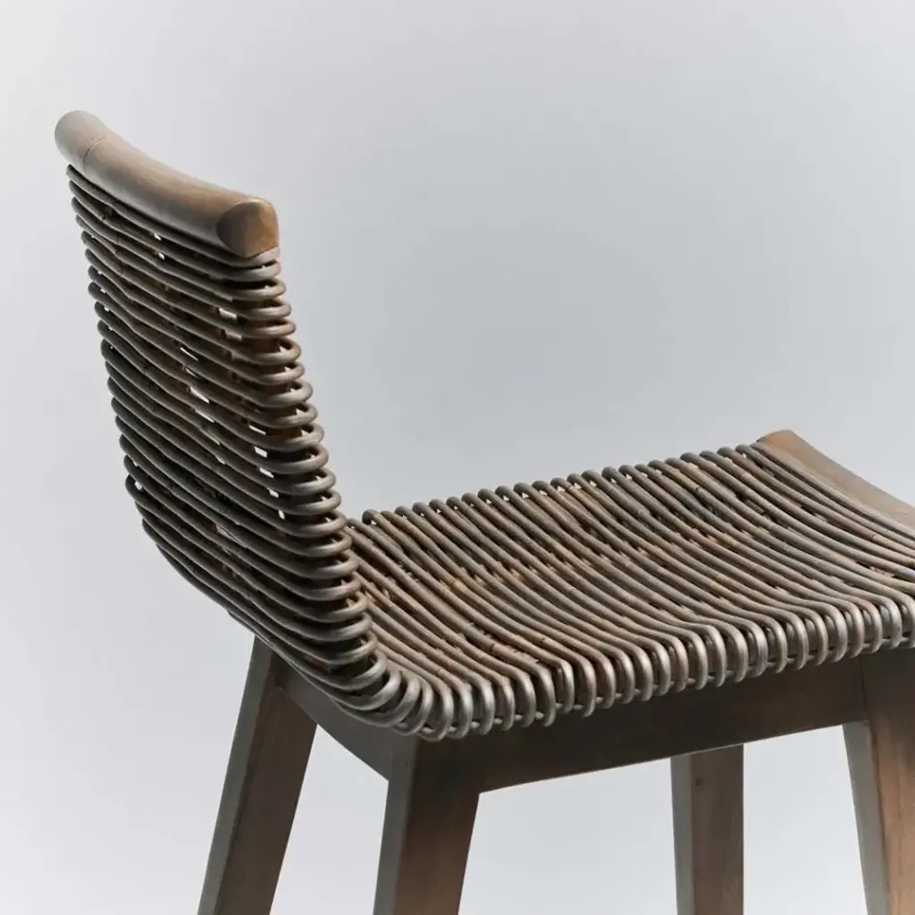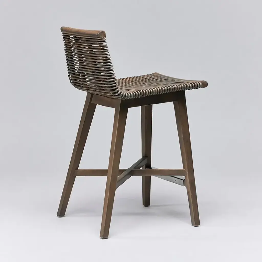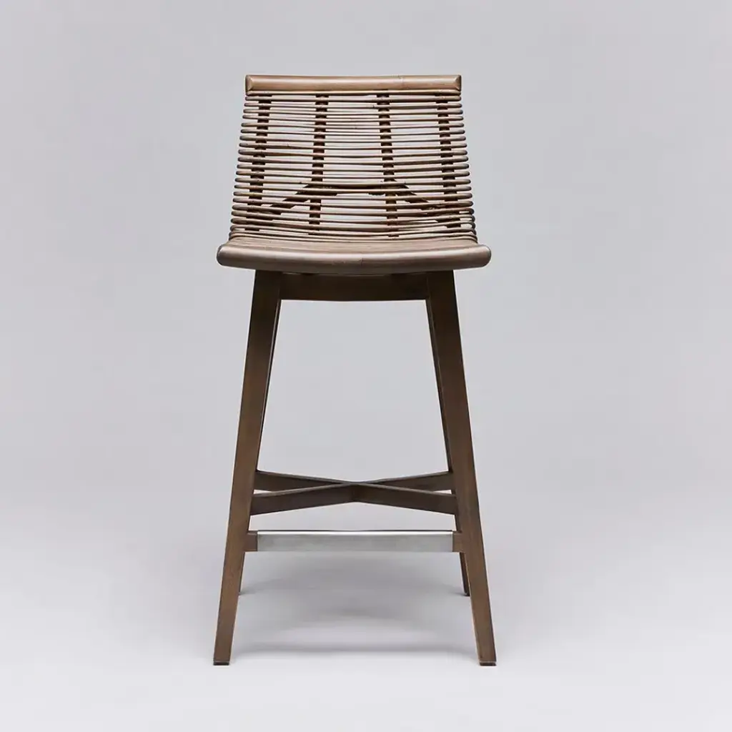 Thanks to the interplay between Narragansett grey rattan and mahogany, the Sanibel Counter Stool seamlessly pairs modern lines and warm organic elements. This item is made of solid wood. Item will not be exactly as pictured, subtle deviations in hue after finishing can be expected as a result of natural variations in coloration of the base material.