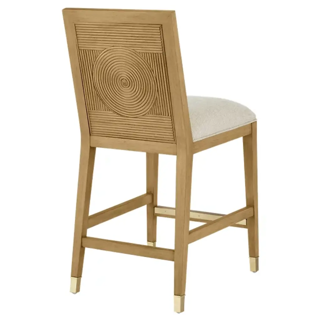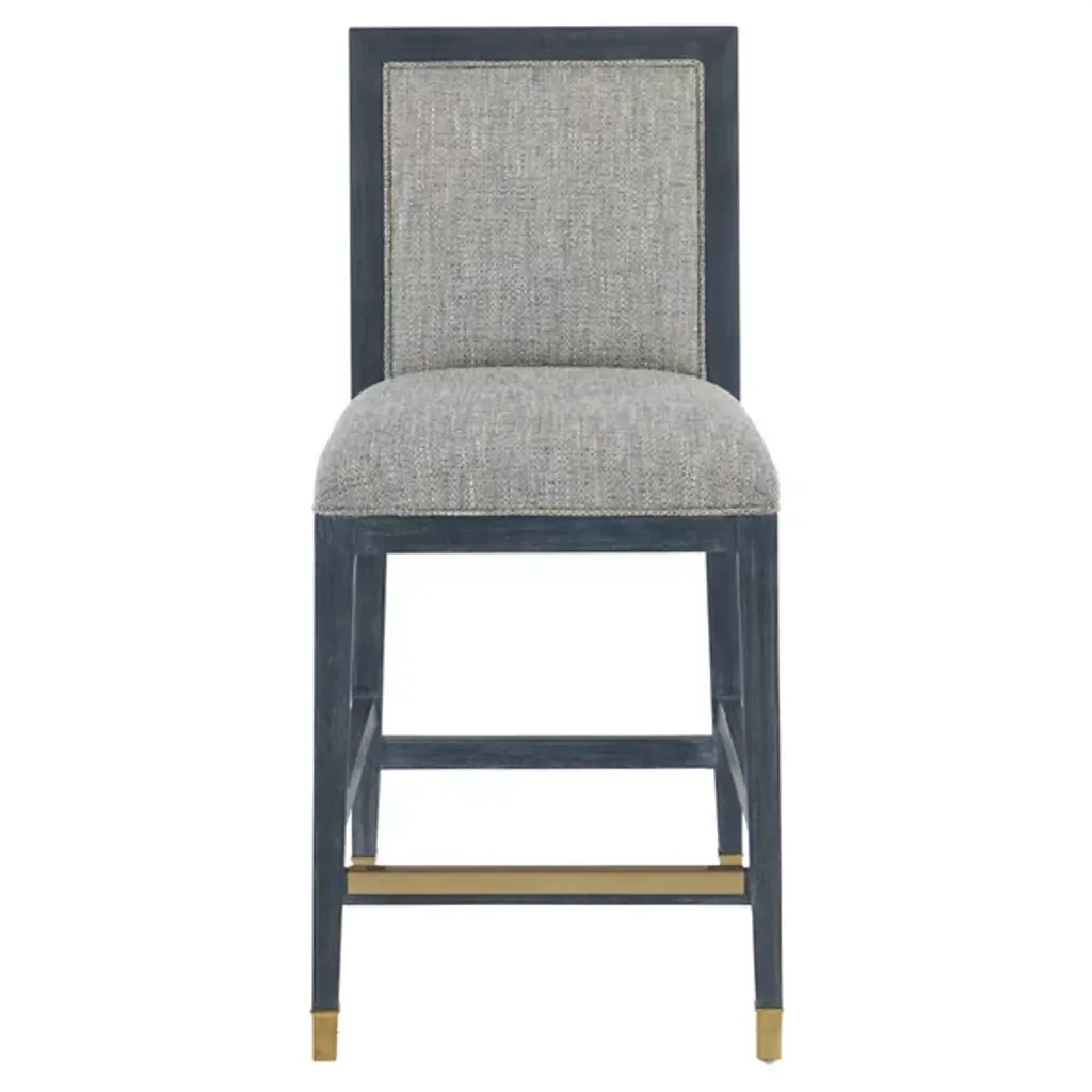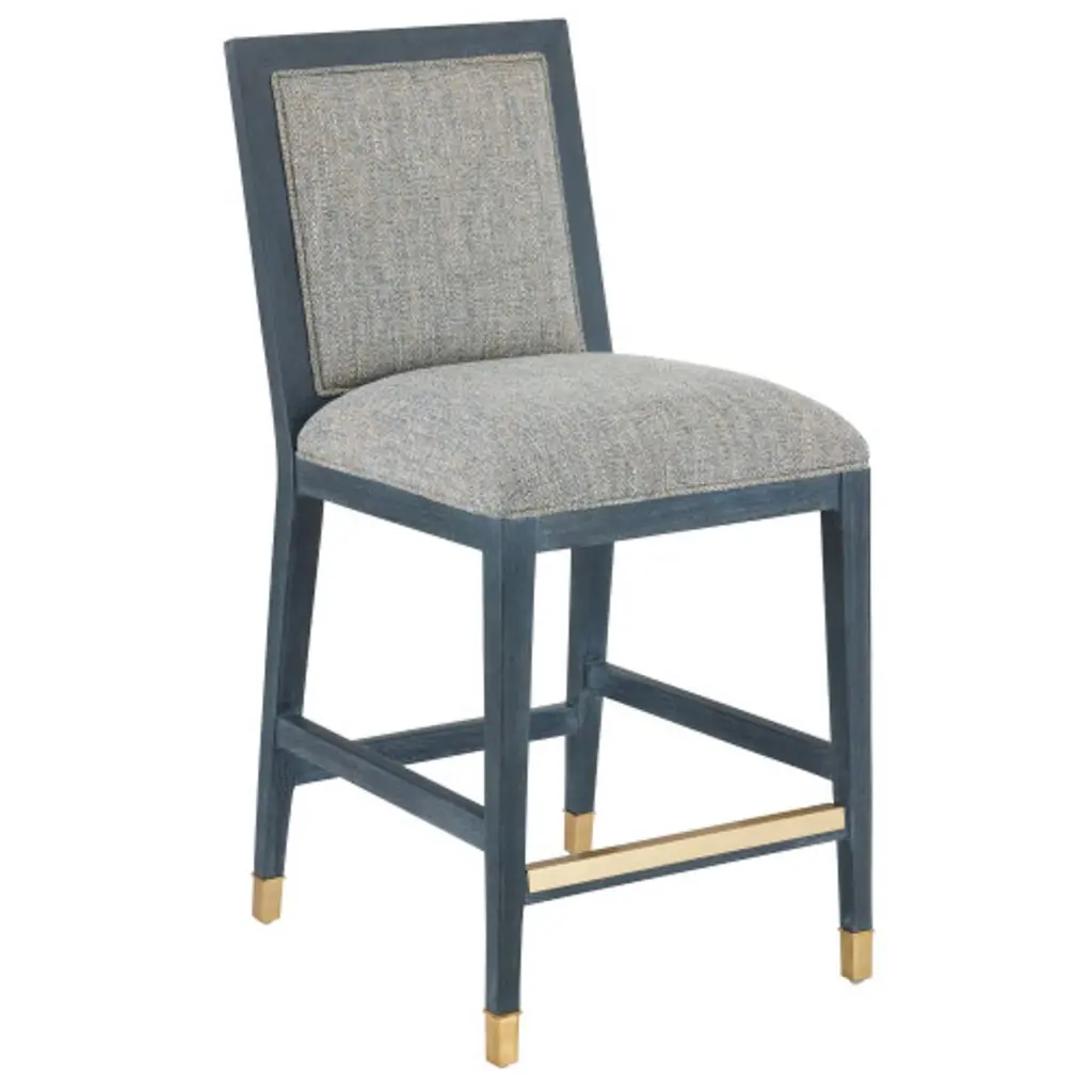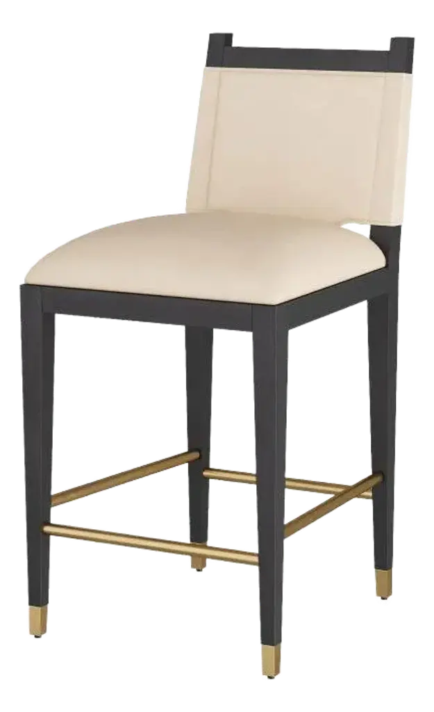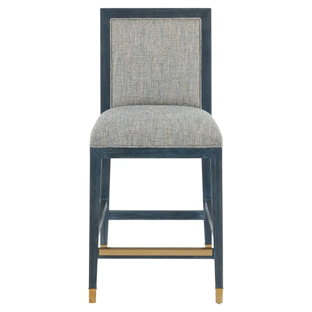 The Santos Counter Stool from Currey & Company invites guests to linger over drinks or casual meals while basking in its artisanal charm. Its solid mahogany frame supports a hand-woven split rattan back, creating an intricate pattern that catches the eye. Upholstered in a performance fabric, the seat offers both comfort and durability. Brass accents, including capped footrests and leg ferrules, add a touch of luxury. This stool brings tropical sophistication to kitchen islands or home bars.