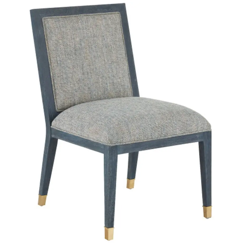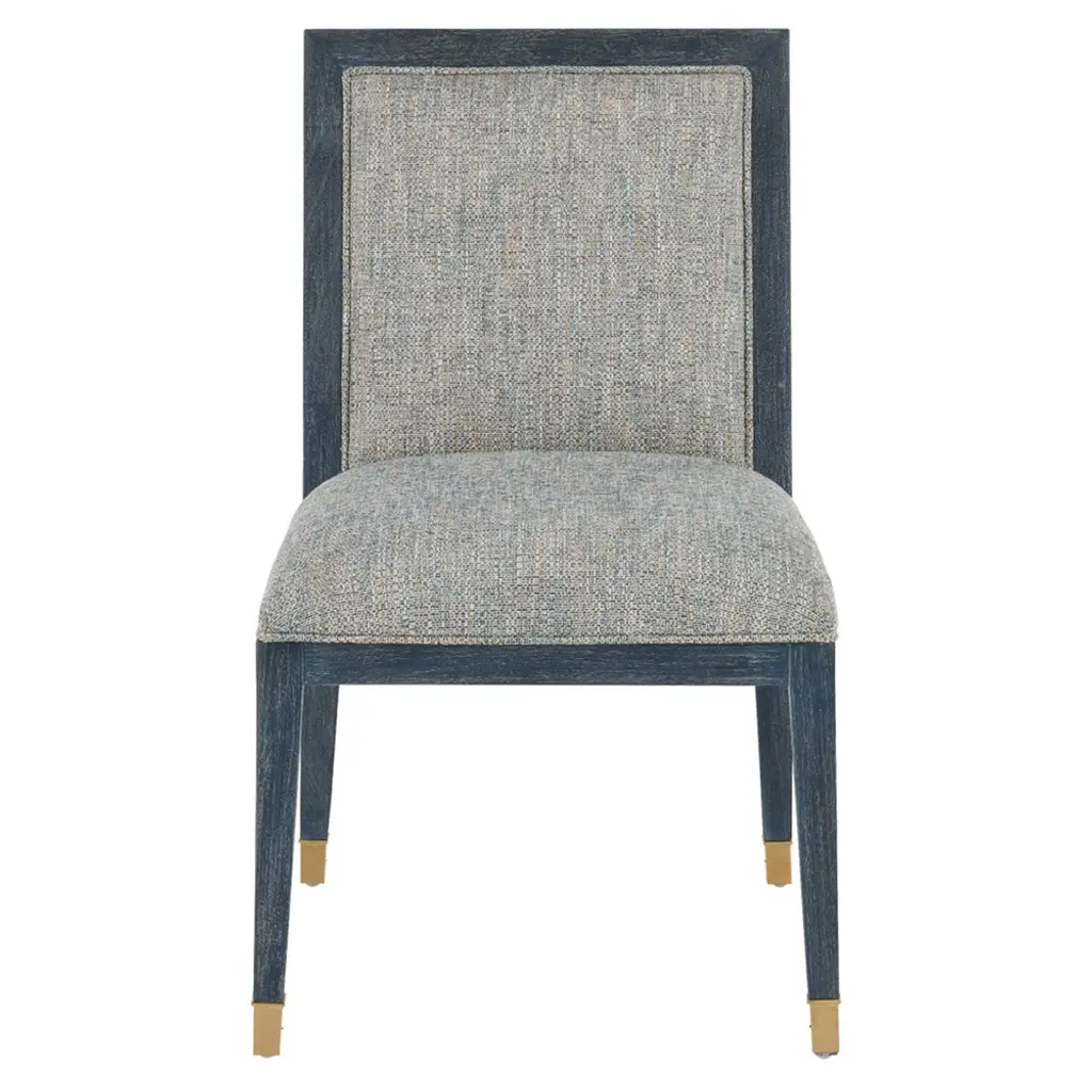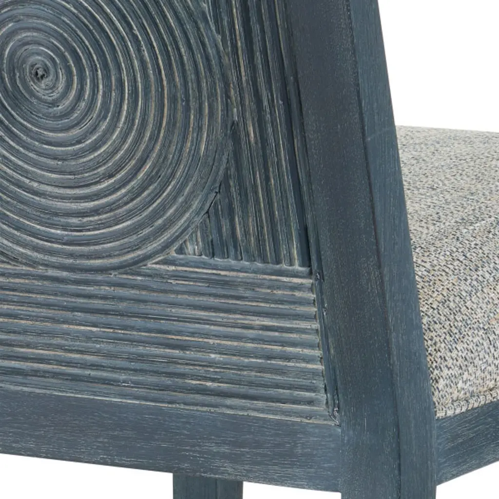 The Santos Counter Stool features a handcrafted split rattan pattern on the back, applied to a solid mahogany frame. The natural material is complemented by a refined finish that covers the back, frame, and legs. Upholstered in a premium material, the stool is enhanced with brass ferrules and a capped step, adding sophistication to its overall design.