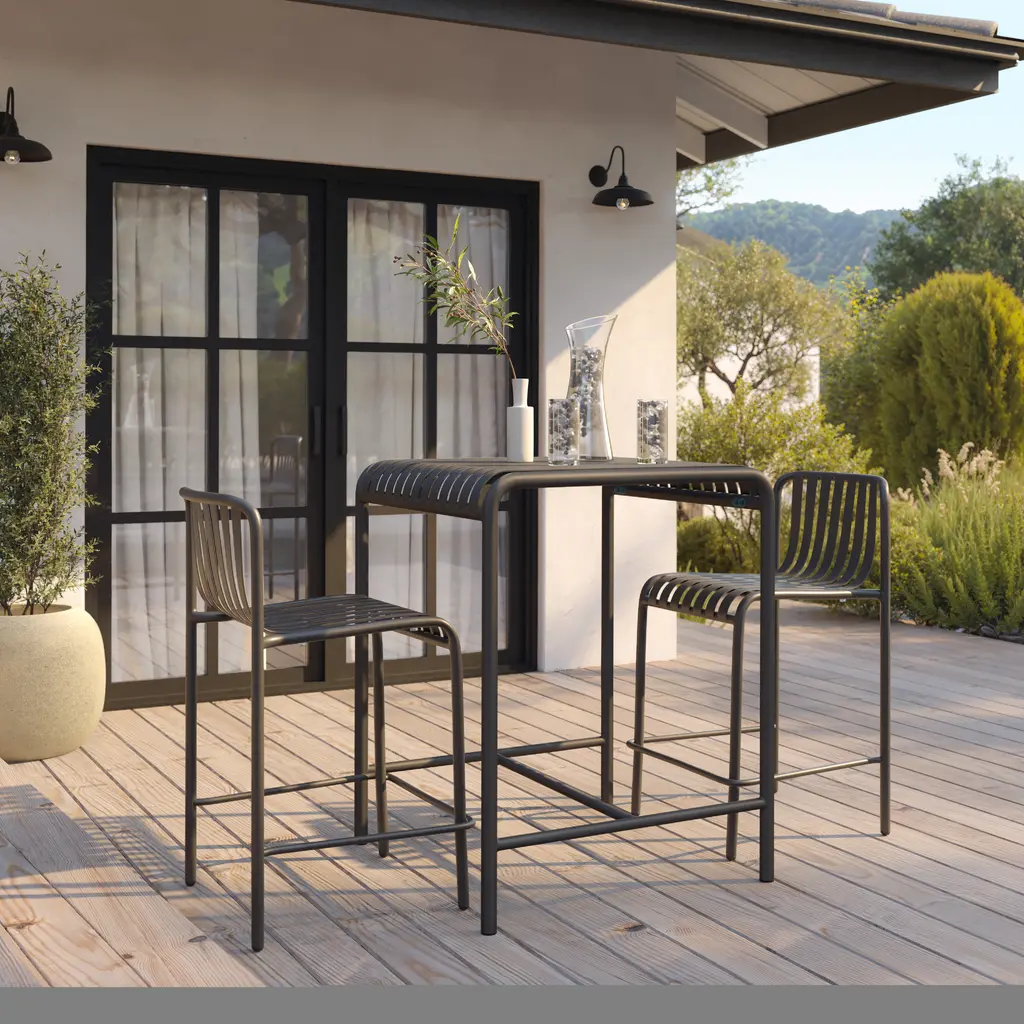 Stripes look good on everyone — but especially on this glossy counter stool. The Sarek is built from solid steel, kind of like Superman. Also like Superman? It’s sexy, dependable, and capable of saving your patio from the scourge of… ugly seating options.