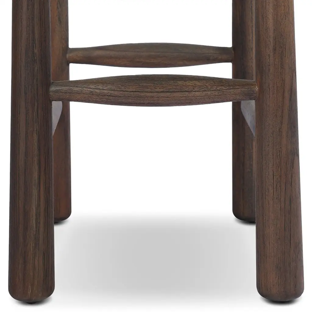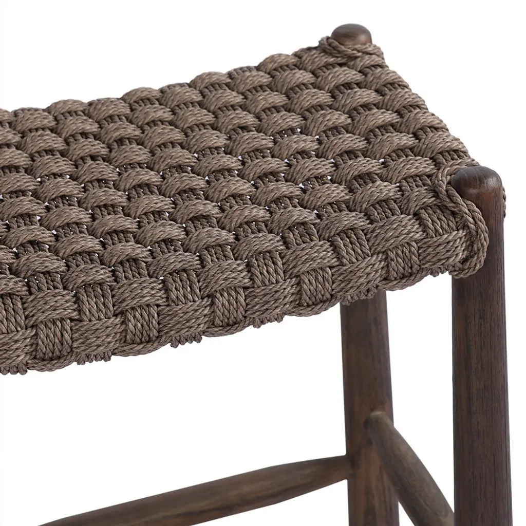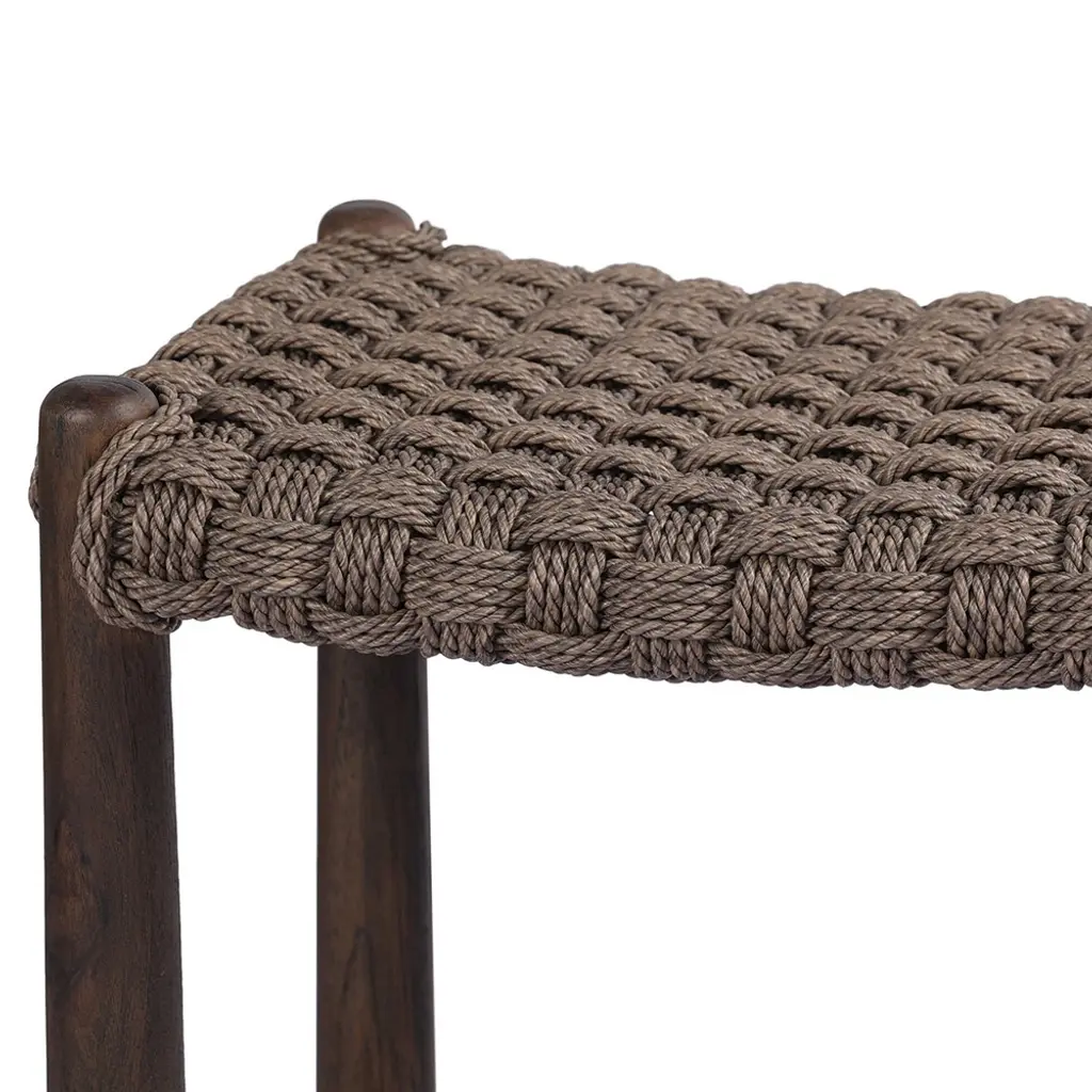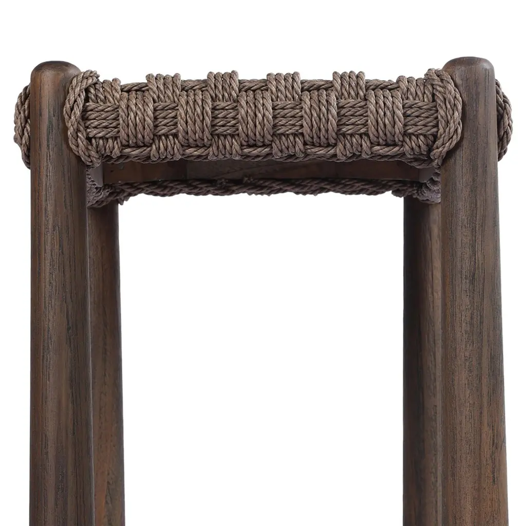 A design collaboration by Amber Lewis and Four Hands. Exaggerated tapered legs support the saddle-style seat of this outdoor counter stool, finished with a chunky box weave. Cover or store inside during inclement weather and when not in use.