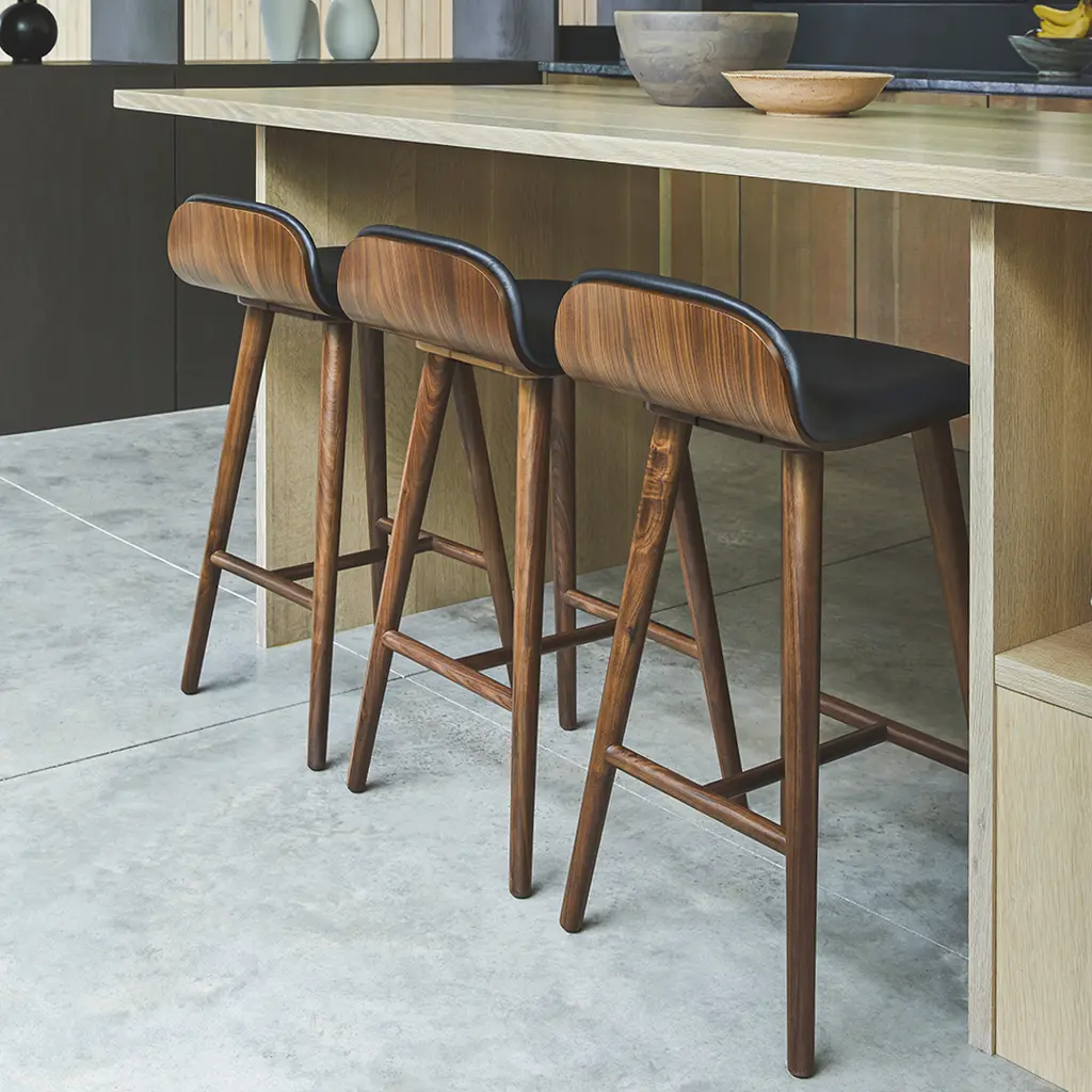 Turn your day around. A total mid-century modern dream seat, our Sede Counter Stool proves that good design always comes full circle. Tapered solid wood legs? Check. Bentwood seat? Absolutely. With a low, exposed veneer back, the Sede helps you lean into small talk or deep into conversation with confidence. Cheers to that.
