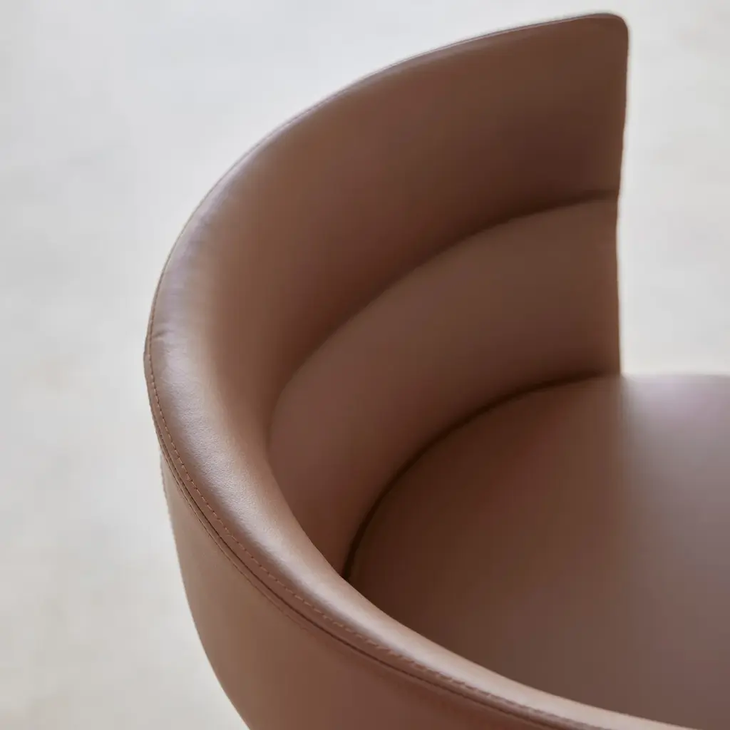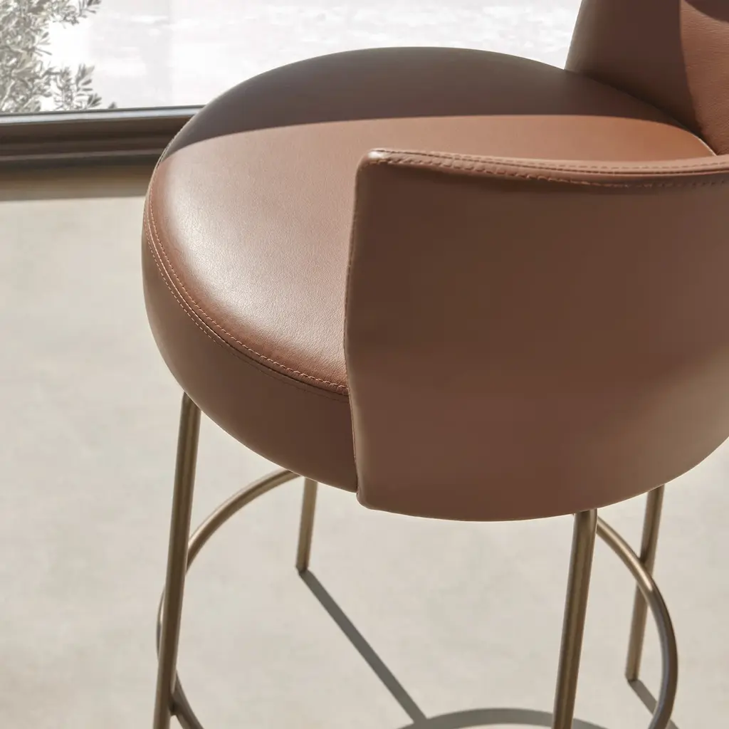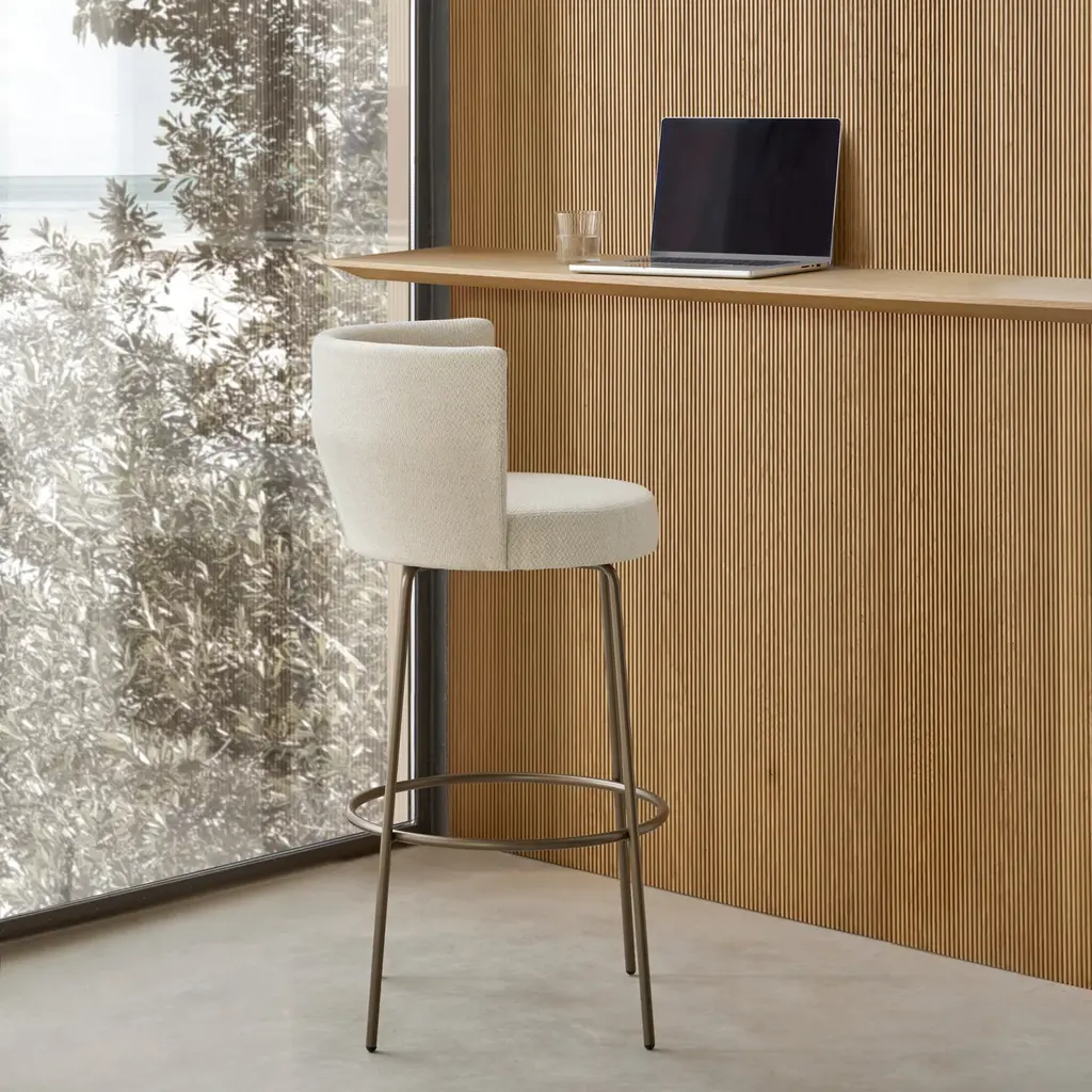 The Sena Stools are distinguished by their elegant, curved lines that provide both comfort and style. The curved backrest and seat are crafted from beech plywood, and covered with fire-retardant polyurethane for enhanced safety and comfort. The stools are available with lacquered aluminum metal legs featuring a 360º rotation system. Plastic or felt feet are included to protect flooring surfaces. These stools are suitable for various environments, including residential and hospitality settings.