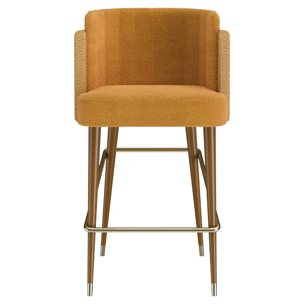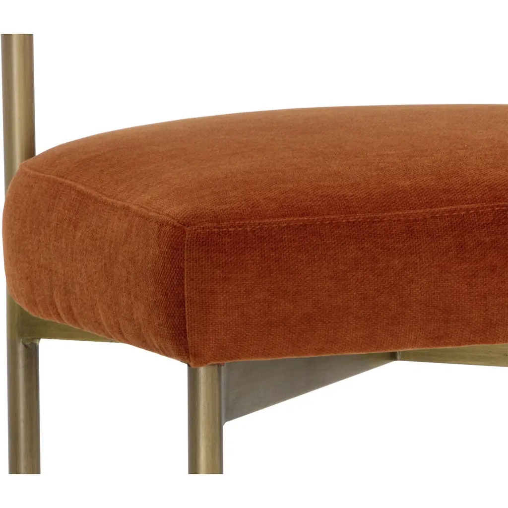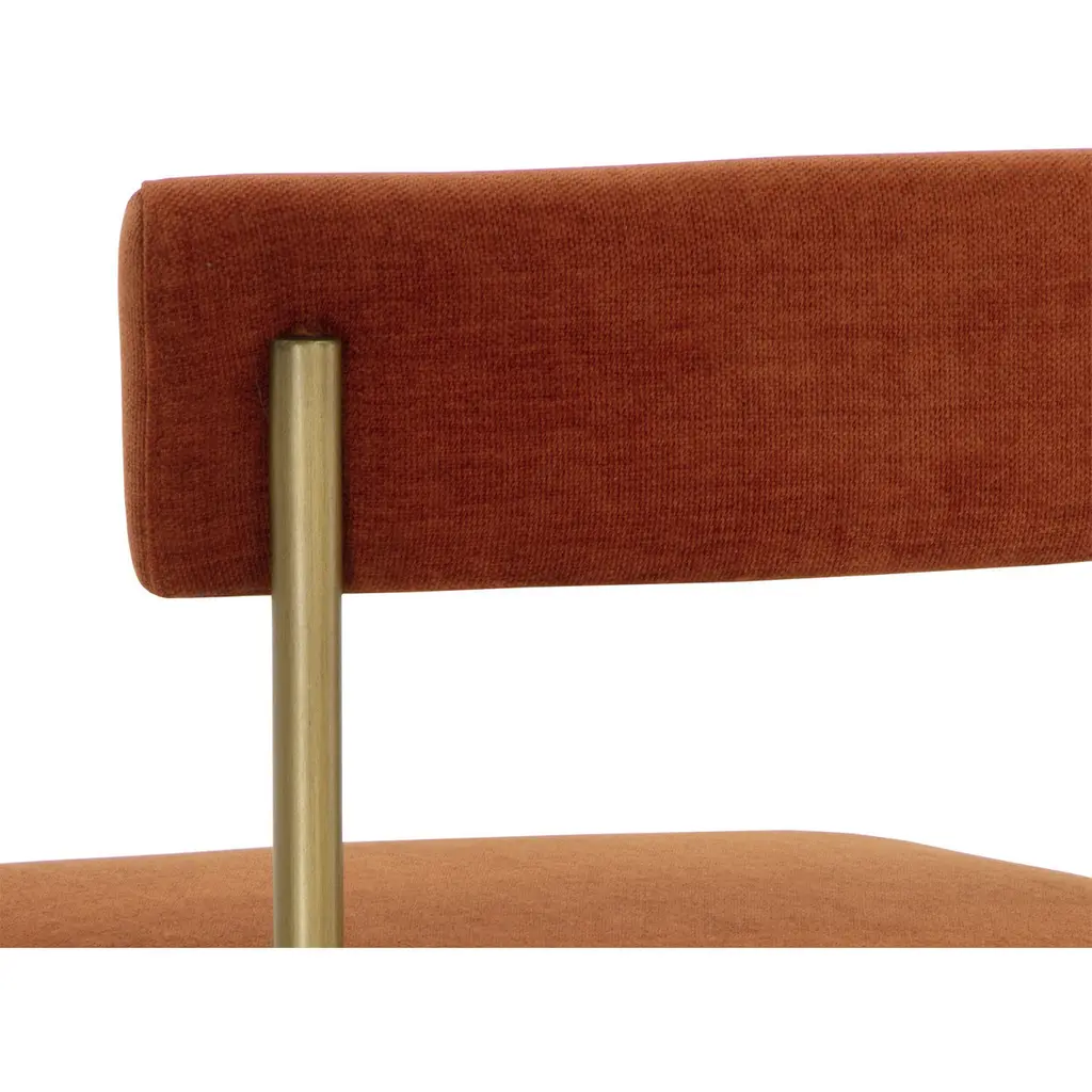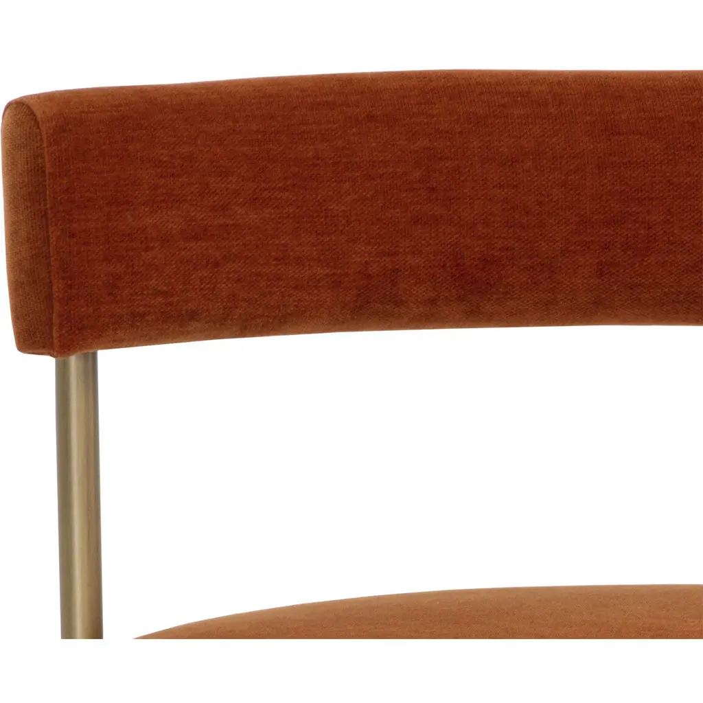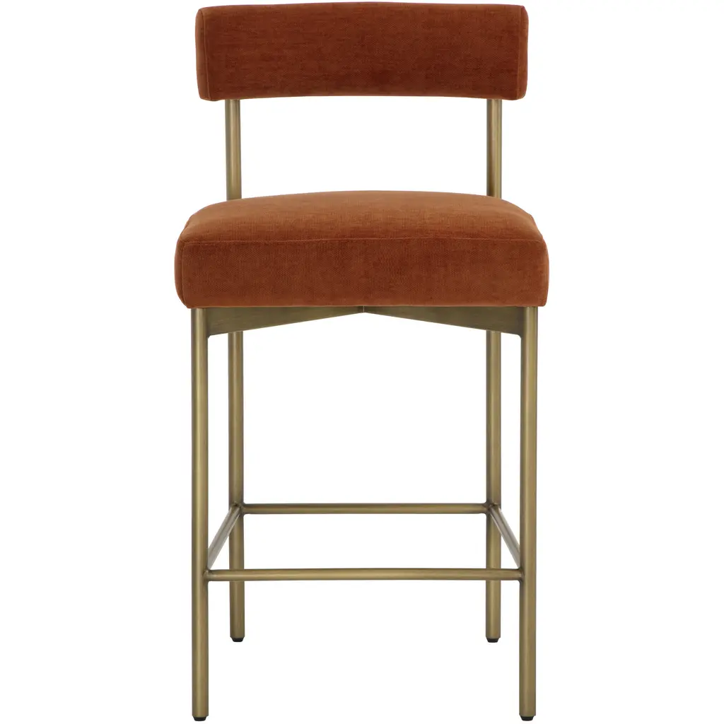 Exude modern style with this open back counter stool. Stocked in danny rust fabric with an antique brass steel frame.