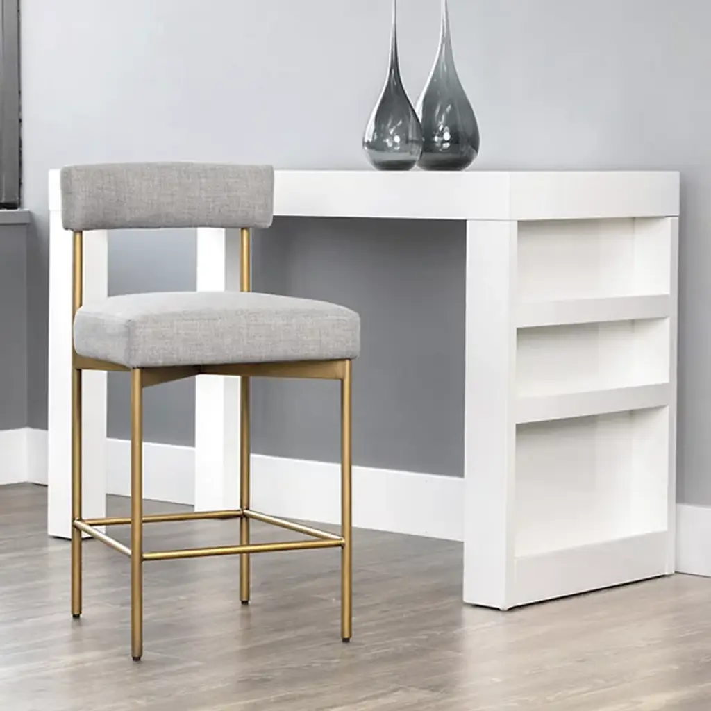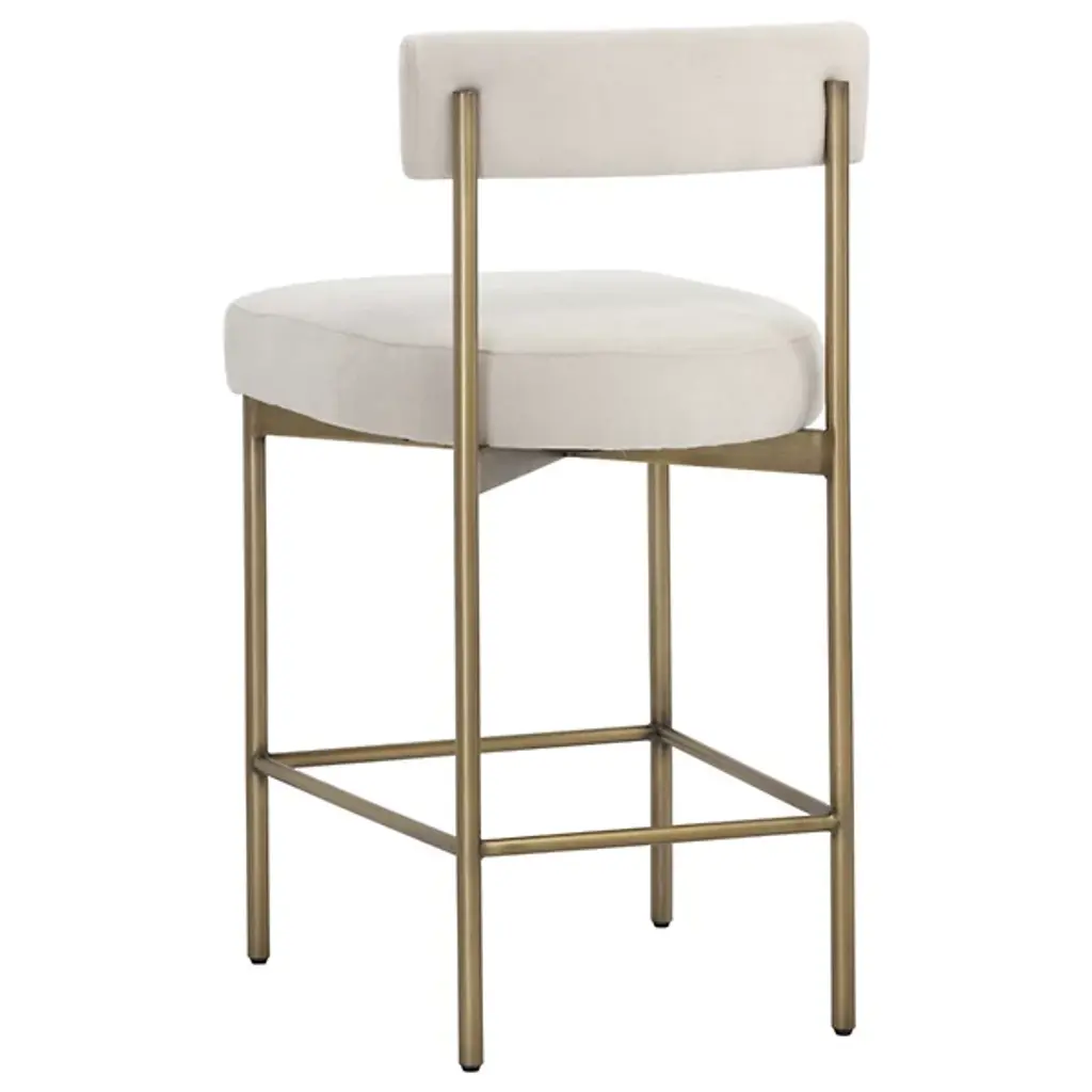 Presented by Sunpan, the Seneca Counter Stool offers a modern look that easily elevates the décor space. An open-back design exudes a send of airiness and contemporary style. The stool is upholstered in moisture and stain-repellent performance fabric, ensuring easy maintenance and effortless clean-up. The soft seating provides exceptional comfort, making it perfect for extended periods of sitting. The square element at the base of the legs not only adds a grounded look but also enhances stability and durability.