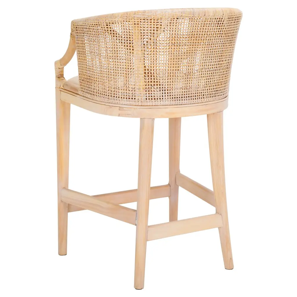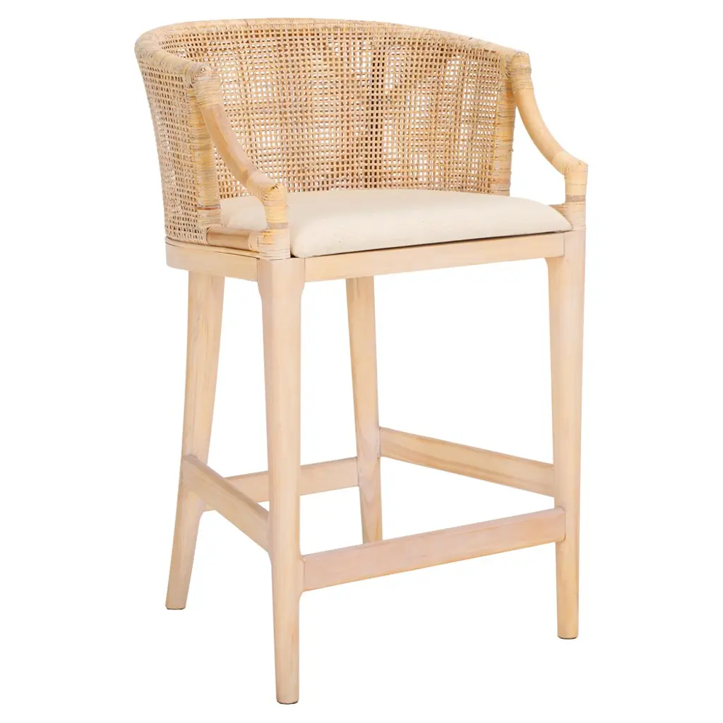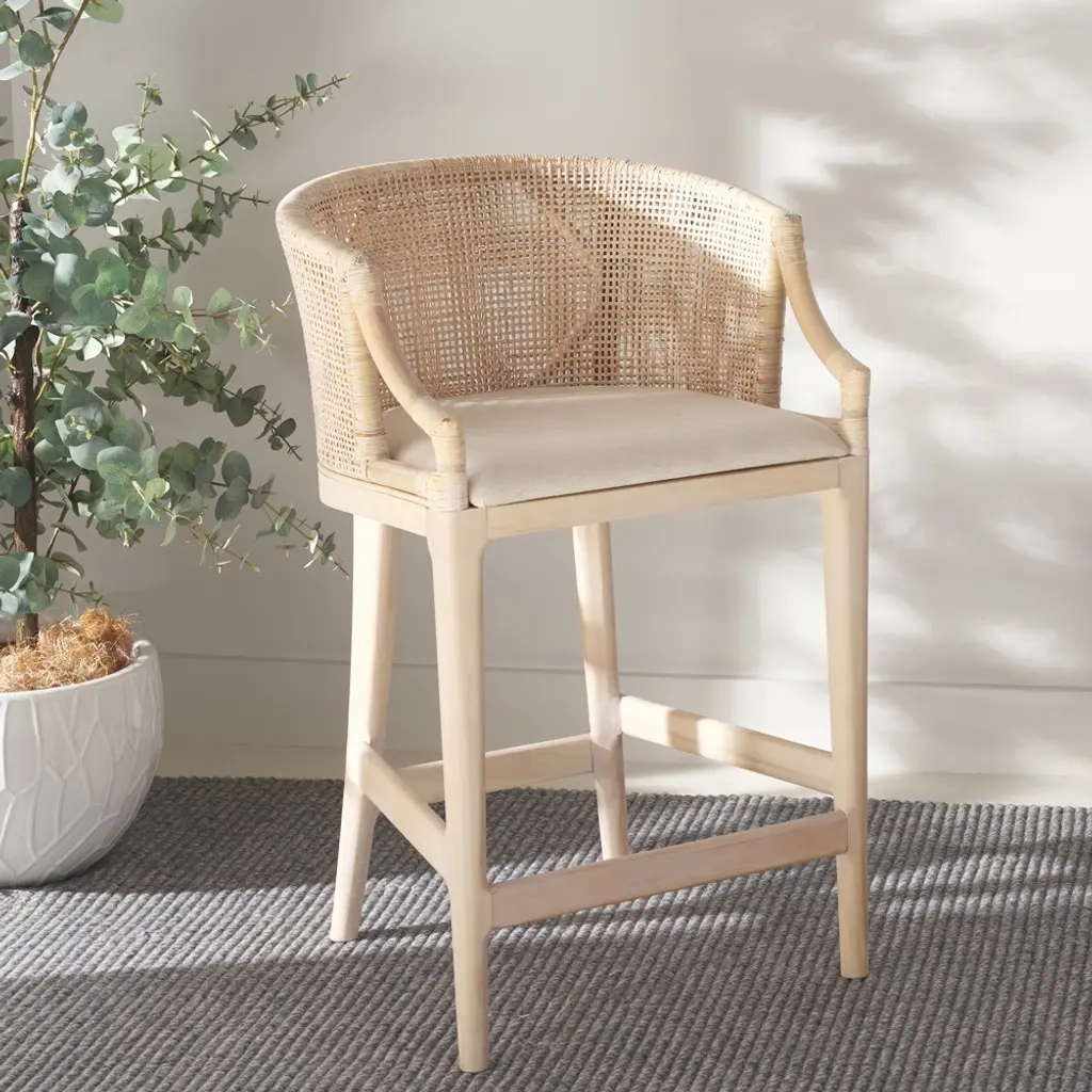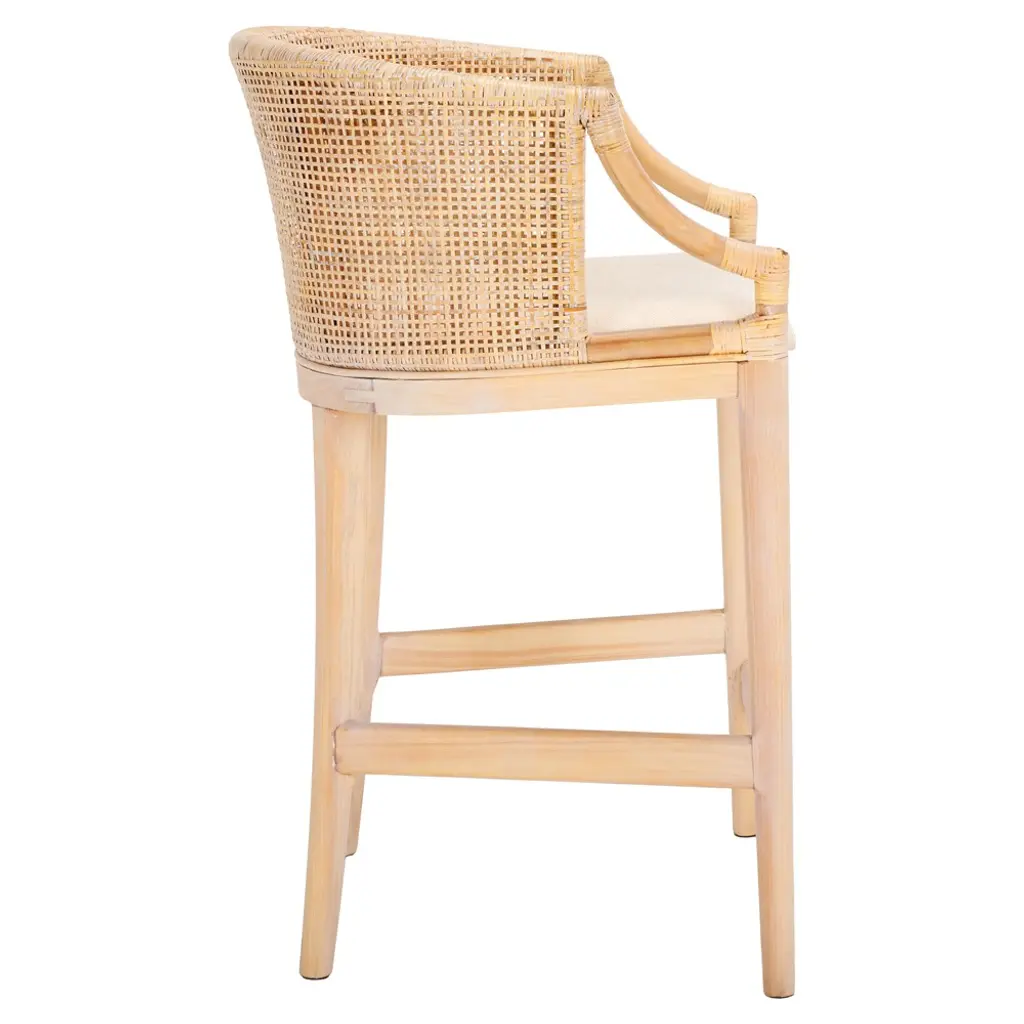 Serena Coastal Beach Cream Performance Whitewash Woven Rattan Counter Stool