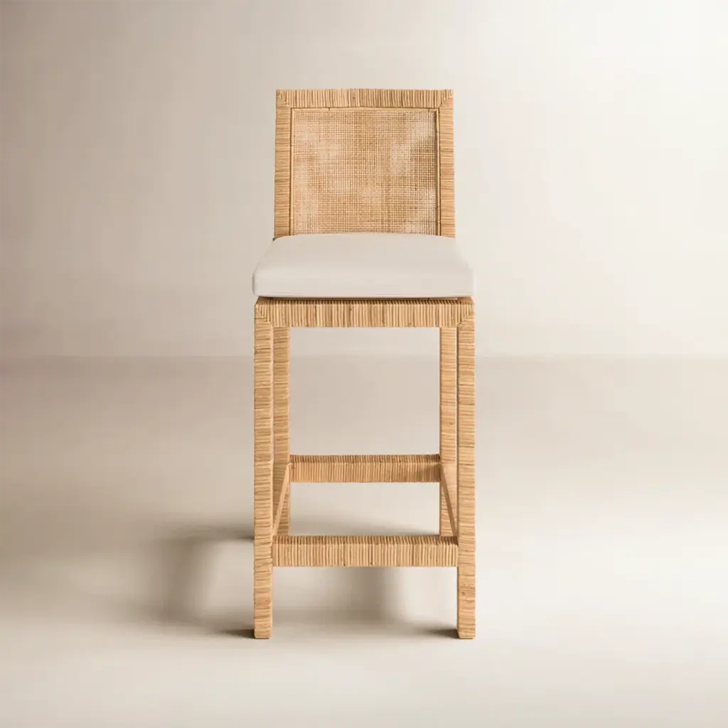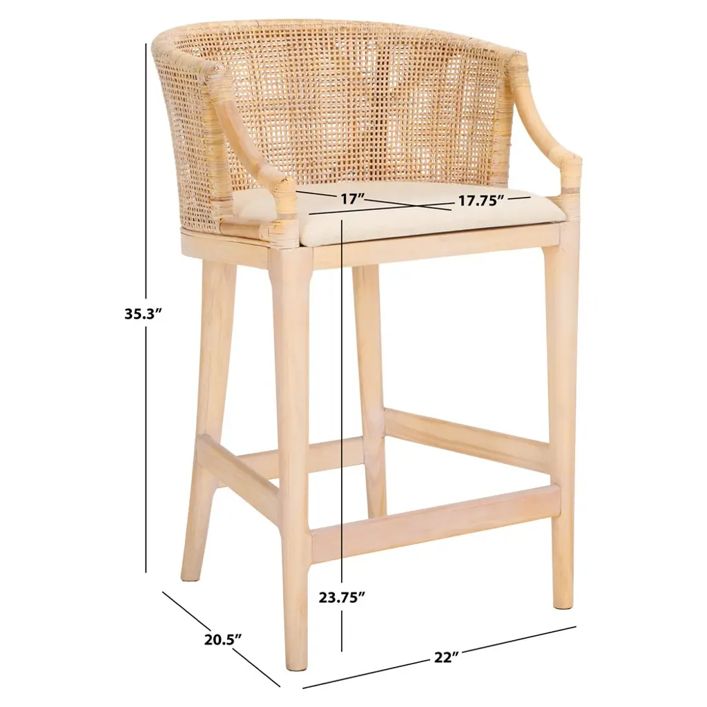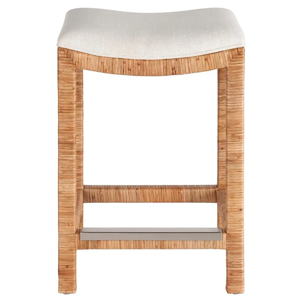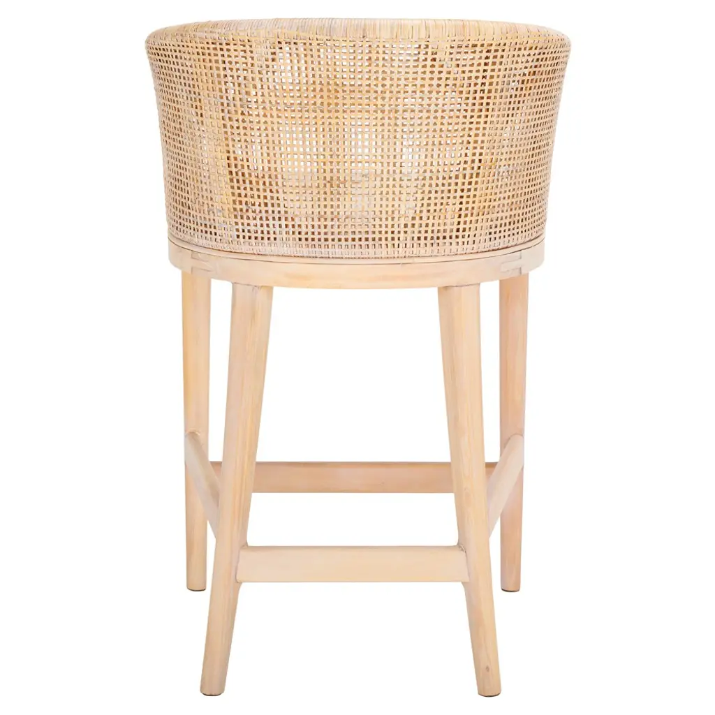 Serena Coastal Beach Cream Performance Whitewash Woven Rattan Counter Stool