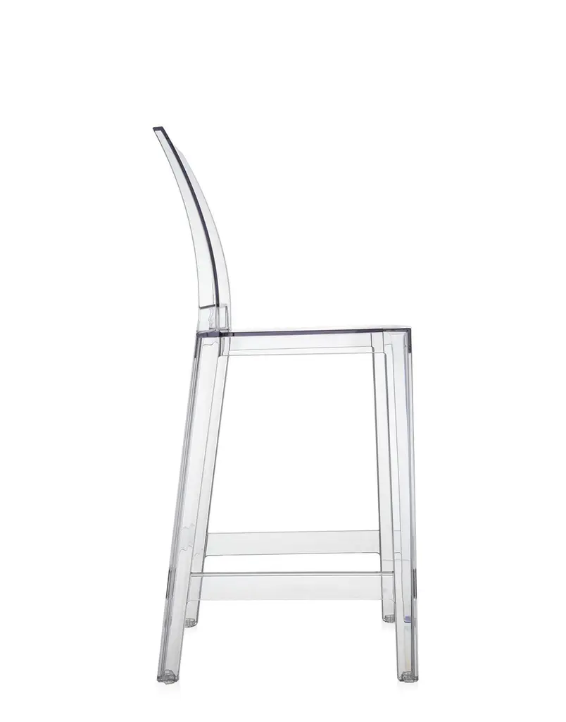 If you want to sip a drink at the bar in peace and quiet, you need a comfortable tall stool with a back to lean against. Sometimes one drink is not enough - and you need "One more" and sometimes "One more please". The "Ghost" family, one of the absolute Kartell icons, multiplies its ranks with stools of different heights - 65 cm or 75 cm - and with backs, either oval or square, but always versatile, practical, colored and sturdy.
