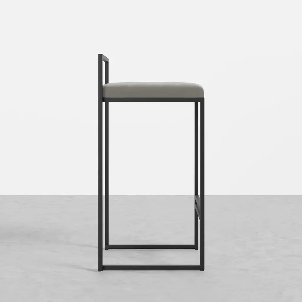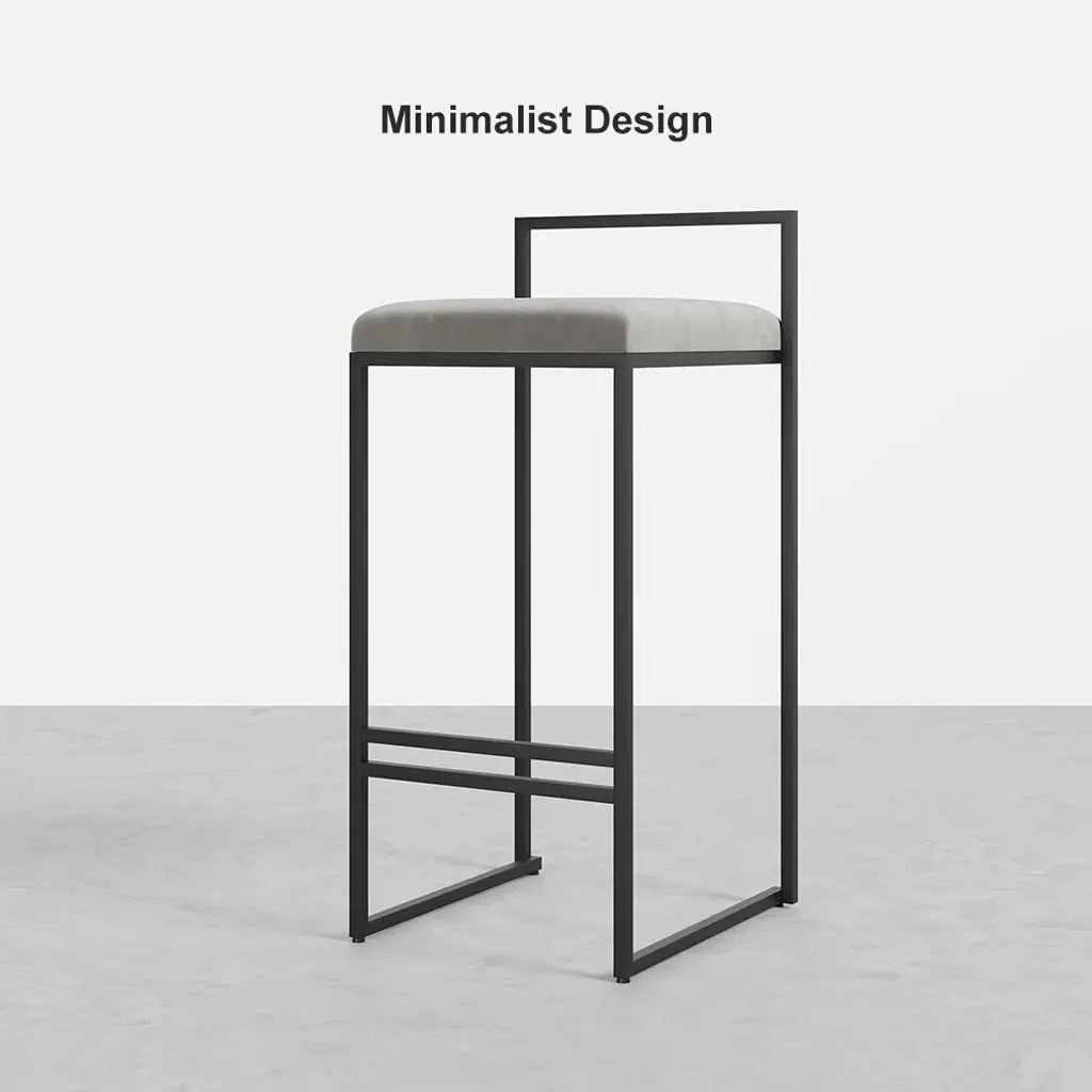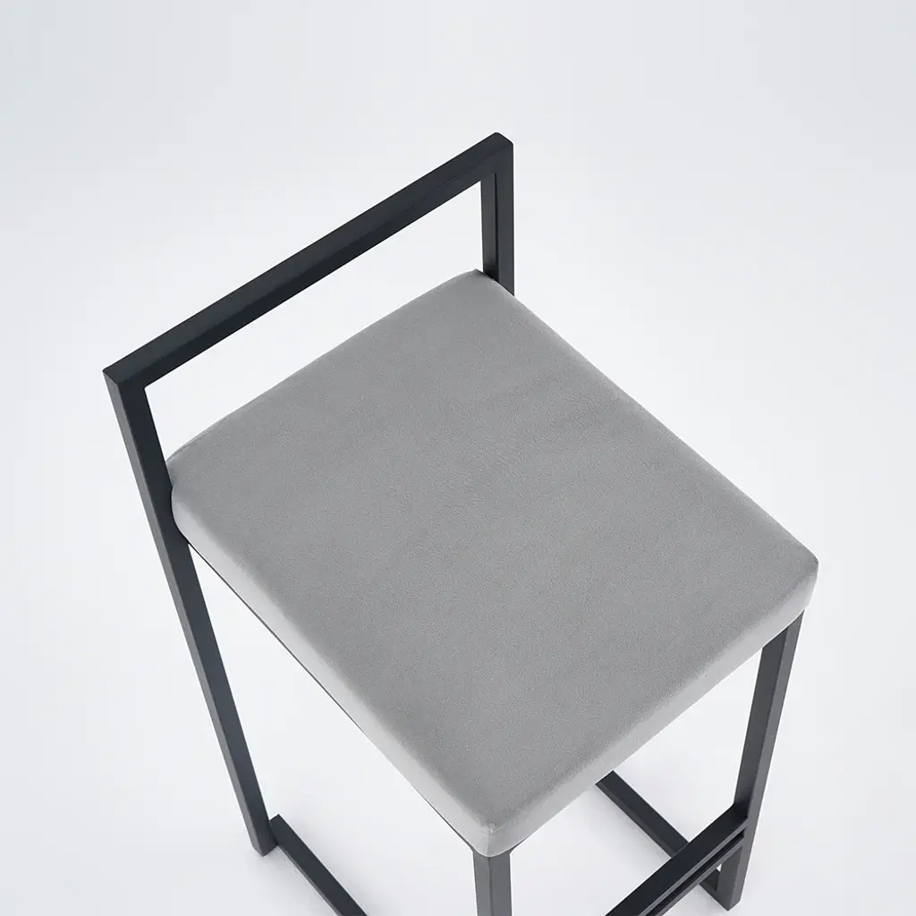 Add modern sophistication to your kitchen or dining area with these stylish counter stools. The soft gray velvet upholstery brings style to a low-backrest design for support and comfort. The padded seat combines with the very sturdy black metal frame for longevity, while the overall design maintains sleekness and a thoroughly modern appeal. These stools are ideal for casual dining, entertainment, or even just as chic additions to your kitchen island. Versatile and in vogue, they blend comfort with modern panache.