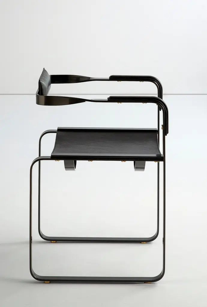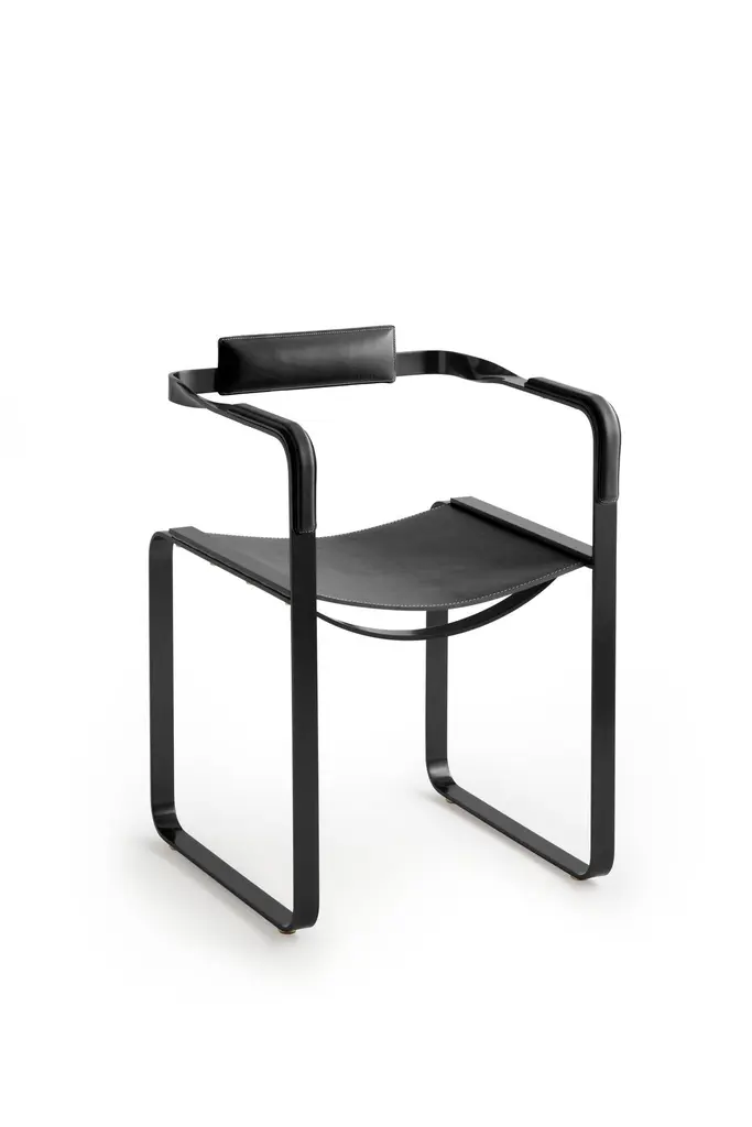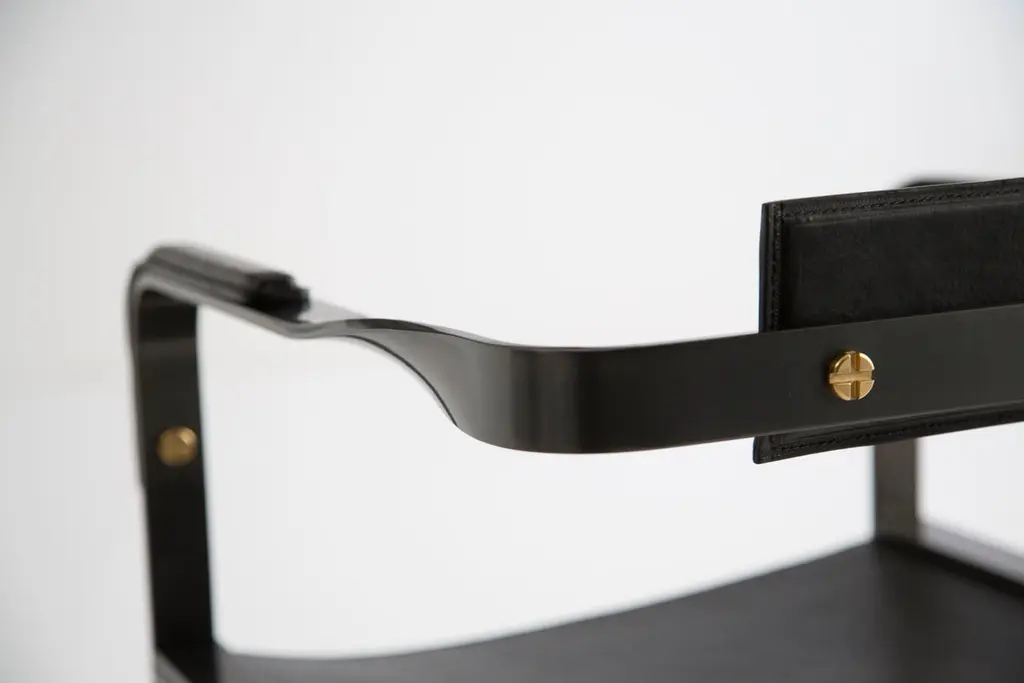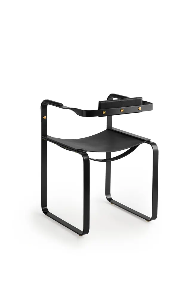 The Wanderlust contemporary armchair belongs to a collection of minimalist and serene pieces where exclusivity and precision are shown in small details such as the hand-turned metal nuts and bolts that fix the leather surfaces, that go unnoticed at first sight.The robustness of the steel structure is combined with the delicacy of the rounded edges. The matte metal finishes evoke the passage of time and are complemented by vegetable tanned cowhide leathers that age gracefully with its use.The Wanderlust counter stool is designed and conceived as a tribute of Bauhaus tribute, the phrases "Less is more" and "God is in the detail" from the German American architect and industrial designer Mies van der Rohe, one of the pioneers of modernist architecture, define this collection.All pieces are done with cold bended steel rods, polished, nickel plated, colored by electrolysis, and lacquered. The process of polishing and lacquering the steel, goes through a manual and delicate chroming process, which gives its final and unique metal color finish. This precise technique gives a uniform metallic finish of minimum 50 microns over the entire Surface. Our metal finishing has successfully passed a corrosion resistance test in a salt spray chamber according to UNE-EN ISO 9227: 2017 and UNE-EN ISO 1456: 2010. Our signature screws are made with brass turning lathed, polished, and lacquered, these are the pieces that fix the saddle leather to the metal frame.Leathers are Spanish hides vegetable tanned. We use premium saddles in multiple colors to adjust to your taste and interior needs. This traditional vegetable dying and tanning method is an organic technique that relies on natural tannings from bark or plant tissues. The use of oils and natural fats give the leather a distinctive flexibility and texture, allowing it to be molded, retain its shape and age graciously.All skins are carefully selected from food industry sub-products, with a minimum thickness of 3.5 mm / 0,02 in, using the part of the animal's shoulder, which allows for larger pieces and uniformity, even though signature wrinkle from the animal’s neck may be recognizable. The vegetable tanning is a traditional and artisan treatment, which is respectful to the environment. Even with careful selection natural marks as a result of the contact with other animals, the age, origin and characteristics of the skin, or even the season in which the tanning takes place cannot be avoided. We still believe that these factors only add authenticity and uniqueness to every piece. Our leather parts are made with double saddles, always showing the top side of the hides that presents the better quality.Customization options.With the aim of creating customized pieces, clients can select from the various metal finishes, and leather colors to create pieces that complement their home décor. Leather colors available, black, navy, dark brown, cognac and natural tobacco, and steel polished finishing available, aged brass, black smoke and aged silver.Normally we use tone on tone threats for stitches, but client can select a contrast option, being possible to select any color to make a unique piece for the project it belongs. The finish on the edges of our leather components are sanded and hand painted. We have the option of select an alternative color if not tone on tone will be applied.Our collections are made to full fill home spaces where to gather and enjoy great conversation with families and friends. Occasional furniture for exquisite homes, from cottages to exclusive resorts. Our product is understood as a sculptural piece of design, as an art object to be displayed at different house spaces as library, bar, living, foyer, bedroom, powder, meeting, grand or great room.The different finishes options make the furniture perfect combinations on diverse styles, from rustic mountain home, a small cottage, a ski lodge retreat, or industrial a minimalist look.Our collections are made to full fill home spaces where to gather and enjoy great conversation with families and friends. Occasional furniture for exquisite homes, from cottages to exclusive resorts. Our product is understood as a sculptural piece of design, as an art object to be displayed at different house spaces as library, bar, living, foyer, bedroom, powder, meeting, grand or great room.The different finishes options make the furniture perfect combinations on diverse styles, from rustic mountain home, a small cottage, a ski lodge retreat, or industrial a minimalist look.