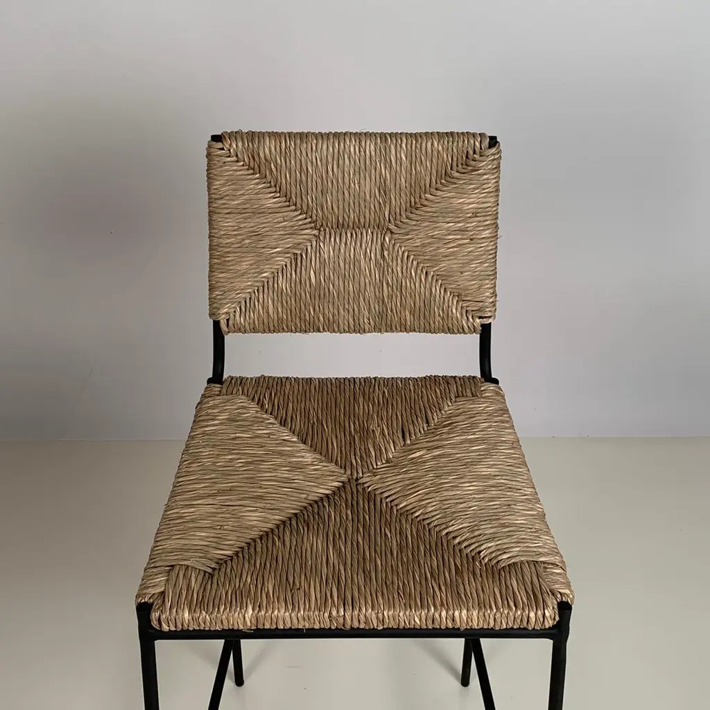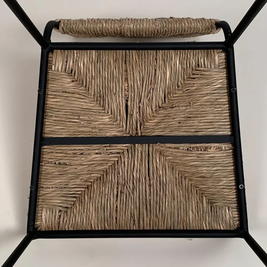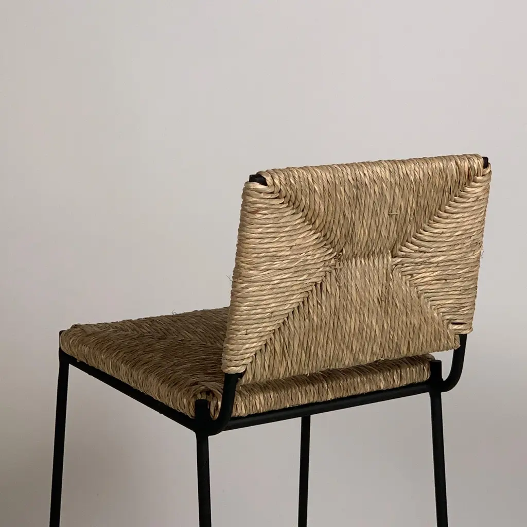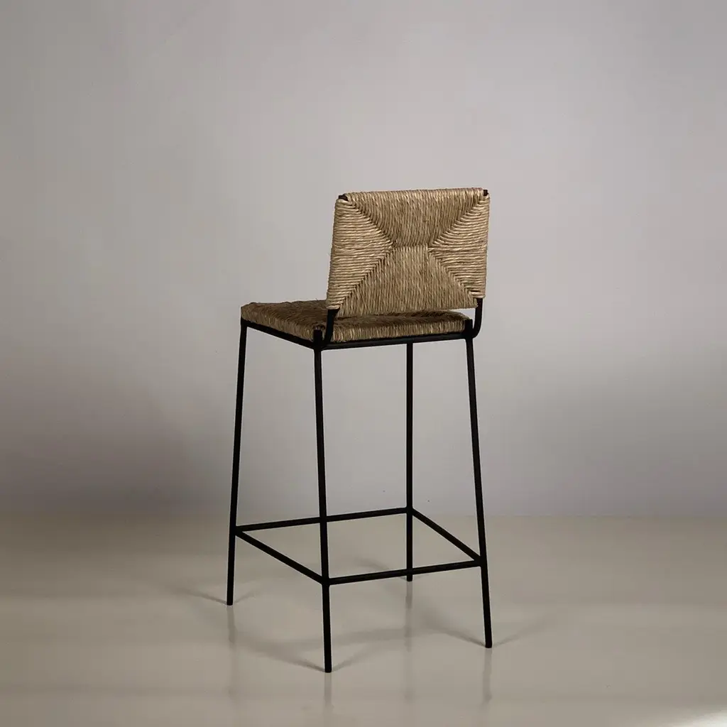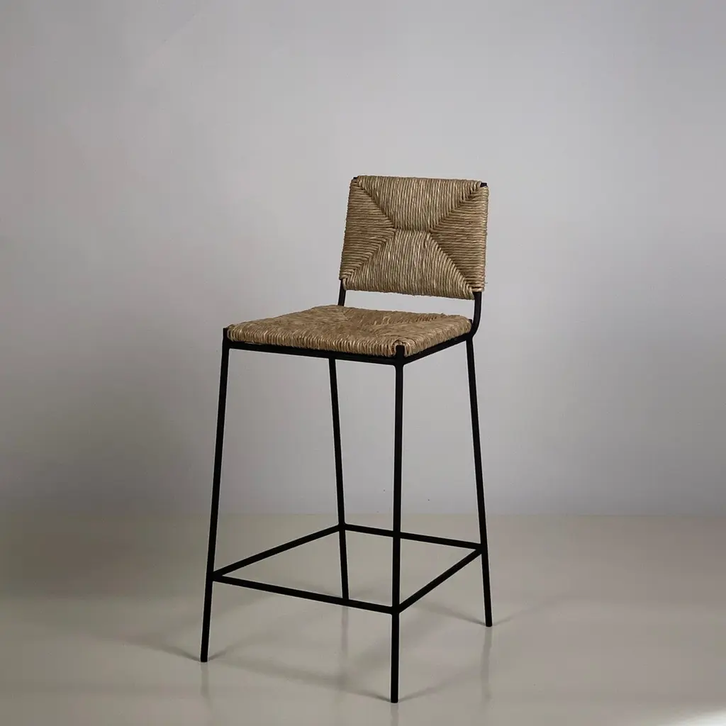 Set of 3 slender 'Campagne' counter stools by Design Frères.Comfortable, with a minimal footprint.Extra support under the rush seat.Feet pads to protect flooring.