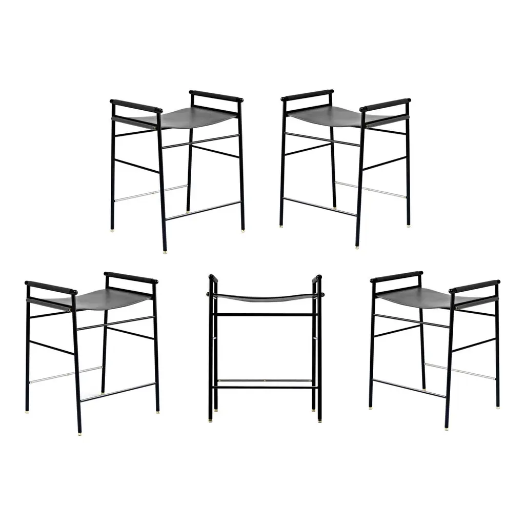 The “Repose” contemporary stool belongs to a collection that revisit the director chair collection, serene pieces where exclusivity and precision are shown in small details such as the hand-turned metal nuts and bolts that fix the leather surfaces, that go unnoticed at first sight.The robustness of the steel structure is combined with the delicacy of the rounded structure. The matte metal finishes evoke the passage of time and are complemented by vegetable tanned cowhide leathers that age gracefully with its use.The “Repose” armchair is designed and conceived as a tribute to director’s chair or luxury safari foldable furniture. All pieces are done with cold steel rods, machined on a turning lathe, black powder coated and lacquered with a matt rubber effect. Our signature screws are made with brass turning lathed, polished, and lacquered, these are the pieces that fix the saddle leather to the metal frame.Leathers are Spanish hides vegetable tanned. We use premium saddles in five colors to adjust to your taste and interior needs. This traditional vegetable dyeing and tanning method is an organic technique that relies on natural tannings from bark or plant tissues. The use of oils and natural fats give the leather a distinctive flexibility and texture, allowing it to be molded, retain its shape and age graciously.All skins are carefully selected from food industry sub-products, with a minimum thickness of 3.5 mm / 0,02 in, using the part of the animal's shoulder, which allows for larger pieces and uniformity, even though signature wrinkle from the animal’s neck may be recognizable. The vegetable tanning is a traditional and artisan treatment, which is respectful to the environment. Even with careful selection natural marks as a result of the contact with other animals, the age, origin and characteristics of the skin, or even the season in which the tanning takes place cannot be avoided. We still believe that these factors only add authenticity and uniqueness to every piece. Our leather parts are made with double saddles, always showing the top side of the hides that presents the better quality.Customization options.With the aim of creating customized pieces, clients can select from the various leather colors to create pieces that complement their home décor. Leather colors available, black, navy, dark brown, cognac and natural tobacco, and steel color is black.Normally we use off white threats for stitches, but client can select another option, being possible to select any color to make a unique piece for the project it belongs. The finish on the edges of our leather components is sanded and hand painted. We have the option to select an alternative color if not tone on tone will be applied.Please consult in case you are interested on having a particular heat embossing stamp on the leather.Our high-end collections are made to full fill home spaces where to gather and enjoy great conversation with families and friends. Occasional one-of-a-kind furniture for exquisite homes, from cottages to exclusive resorts. Our product is understood as a sculptural piece of design, as an art object to be displayed at different house spaces as library, bar, living, foyer, bedroom, powder, meeting, grand or great room.The different finishes options make the furniture perfect combinations on diverse styles, from rustic mountain home, a small cottage, a ski lodge retreat, or industrial a minimalist look. The 'Repose' contemporary armchair is a part of our exclusive collection that reimagines the classic director chair with a serene and exquisite design. Every detail is carefully crafted, from the hand-turned metal nuts and bolts that secure the leather surfaces, to the robust yet delicate combination of steel and rounded structure. The matte metal finishes evoke a timeless appeal, complemented by vegetable-tanned cowhide leathers that age gracefully over time.Designed as a tribute to director's chairs and luxury safari foldable furniture, the 'Repose' armchair is meticulously constructed using cold steel rods, machined on a turning lathe, and finished with a black powder coating and a matt rubber effect. Our signature brass screws not only add elegance but also securely fix the saddle leather to the metal frame.We use premium Spanish hides that undergo vegetable tanning, a traditional and environmentally-friendly technique relying on natural tannings from bark or plant tissues. The use of oils and natural fats gives the leather a distinctive flexibility, texture, and longevity, allowing it to mold, retain its shape, and age gracefully. Each skin is carefully selected from food industry sub-products, ensuring a minimum thickness of 3.5 mm / 0.02 in. While some natural marks and wrinkles from the animal's neck may be noticeable, we believe they enhance the authenticity and uniqueness of every piece.Our leather parts are made with double saddles, always showcasing the top side of the hides for superior quality. We offer customization options to suit individual preferences and home décor, with a range of leather colors including black, navy, dark brown, cognac, and natural tobacco. The steel color is black, seamlessly blending with various interior styles.For stitching, we typically use off-white threads, but clients have the flexibility to select alternative colors, making each piece truly unique. The edges of our leather components are meticulously sanded and hand-painted, providing a refined finish. Additionally, we offer the option to choose an alternative color for a striking contrast if a tone-on-tone effect is not preferred.If you desire a personal touch, we offer the possibility of incorporating a particular heat embossing stamp on the leather. Our high-end collections are designed to create a gathering space for families and friends, offering one-of-a-kind furniture for exquisite homes, ranging from cottages to exclusive resorts. Each piece is a sculptural work of art, perfect for various ho