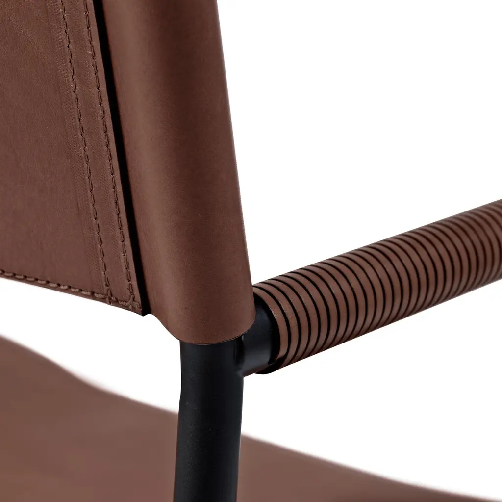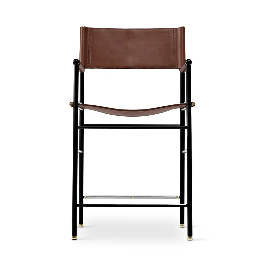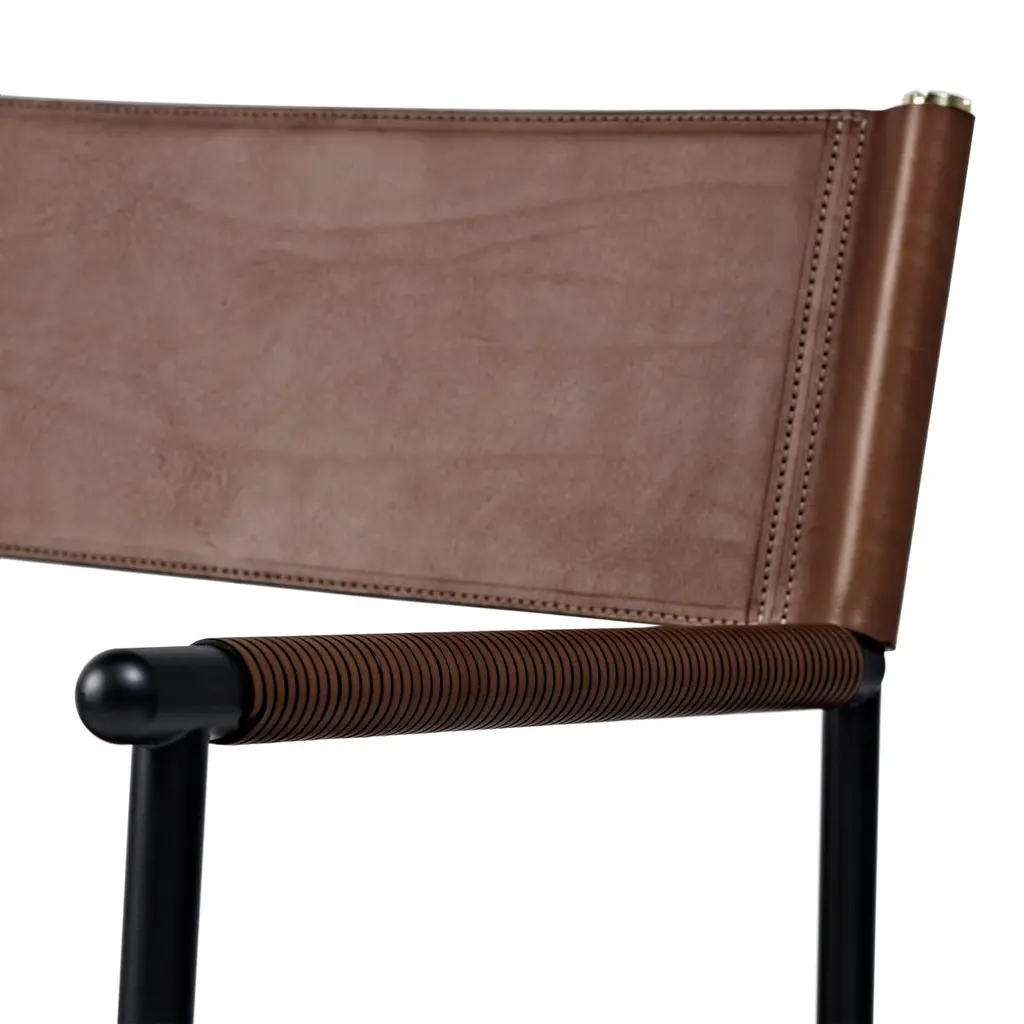 The “Repose” contemporary stool belongs to a collection that revisit the director chair collection, serene pieces where exclusivity and precision are shown in small details such as the hand-turned metal nuts and bolts that fix the leather surfaces, that go unnoticed at first sight.The robustness of the steel structure is combined with the delicacy of the rounded structure. The matte metal finishes evoke the passage of time and are complemented by vegetable tanned cowhide leathers that age gracefully with its use.The “Repose” armchair is designed and conceived as a tribute to director’s chair or luxury safari foldable furniture. All pieces are done with cold steel rods, machined on a turning lathe, black powder coated and lacquered with a matt rubber effect. Our signature screws are made with brass turning lathed, polished, and lacquered, these are the pieces that fix the saddle leather to the metal frame.Leathers are Spanish hides vegetable tanned. We use premium saddles in five colors to adjust to your taste and interior needs. This traditional vegetable dyeing and tanning method is an organic technique that relies on natural tannings from bark or plant tissues. The use of oils and natural fats give the leather a distinctive flexibility and texture, allowing it to be molded, retain its shape and age graciously.All skins are carefully selected from food industry sub-products, with a minimum thickness of 3.5 mm / 0,02 in, using the part of the animal's shoulder, which allows for larger pieces and uniformity, even though signature wrinkle from the animal’s neck may be recognizable. The vegetable tanning is a traditional and artisan treatment, which is respectful to the environment. Even with careful selection natural marks as a result of the contact with other animals, the age, origin and characteristics of the skin, or even the season in which the tanning takes place cannot be avoided. We still believe that these factors only add authenticity and uniqueness to every piece. Our leather parts are made with double saddles, always showing the top side of the hides that presents the better quality.Customization options.With the aim of creating customized pieces, clients can select from the various leather colors to create pieces that complement their home décor. Leather colors available, black, navy, dark brown, cognac and natural tobacco, and steel color is black.Normally we use off white threats for stitches, but client can select another option, being possible to select any color to make a unique piece for the project it belongs. The finish on the edges of our leather components is sanded and hand painted. We have the option to select an alternative color if not tone on tone will be applied.Please consult in case you are interested on having a particular heat embossing stamp on the leather.Our high-end collections are made to full fill home spaces where to gather and enjoy great conversation with families and friends. Occasional one-of-a-kind furniture for exquisite homes, from cottages to exclusive resorts. Our product is understood as a sculptural piece of design, as an art object to be displayed at different house spaces as library, bar, living, foyer, bedroom, powder, meeting, grand or great room.The different finishes options make the furniture perfect combinations on diverse styles, from rustic mountain home, a small cottage, a ski lodge retreat, or industrial a minimalist look. The 'Repose' contemporary armchair is a part of our exclusive collection that reimagines the classic director chair with a serene and exquisite design. Every detail is carefully crafted, from the hand-turned metal nuts and bolts that secure the leather surfaces, to the robust yet delicate combination of steel and rounded structure. The matte metal finishes evoke a timeless appeal, complemented by vegetable-tanned cowhide leathers that age gracefully over time.Designed as a tribute to director's chairs and luxury safari foldable furniture, the 'Repose' armchair is meticulously constructed using cold steel rods, machined on a turning lathe, and finished with a black powder coating and a matt rubber effect. Our signature brass screws not only add elegance but also securely fix the saddle leather to the metal frame.We use premium Spanish hides that undergo vegetable tanning, a traditional and environmentally-friendly technique relying on natural tannings from bark or plant tissues. The use of oils and natural fats gives the leather a distinctive flexibility, texture, and longevity, allowing it to mold, retain its shape, and age gracefully. Each skin is carefully selected from food industry sub-products, ensuring a minimum thickness of 3.5 mm / 0.02 in. While some natural marks and wrinkles from the animal's neck may be noticeable, we believe they enhance the authenticity and uniqueness of every piece.Our leather parts are made with double saddles, always showcasing the top side of the hides for superior quality. We offer customization options to suit individual preferences and home décor, with a range of leather colors including black, navy, dark brown, cognac, and natural tobacco. The steel color is black, seamlessly blending with various interior styles.For stitching, we typically use off-white threads, but clients have the flexibility to select alternative colors, making each piece truly unique. The edges of our leather components are meticulously sanded and hand-painted, providing a refined finish. Additionally, we offer the option to choose an alternative color for a striking contrast if a tone-on-tone effect is not preferred.If you desire a personal touch, we offer the possibility of incorporating a particular heat embossing stamp on the leather. Our high-end collections are designed to create a gathering space for families and friends, offering one-of-a-kind furniture for exquisite homes, ranging from cottages to exclusive resorts. Each piece is a sculptural work of art, perfect for various ho