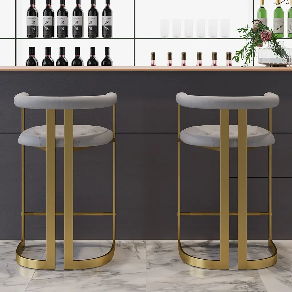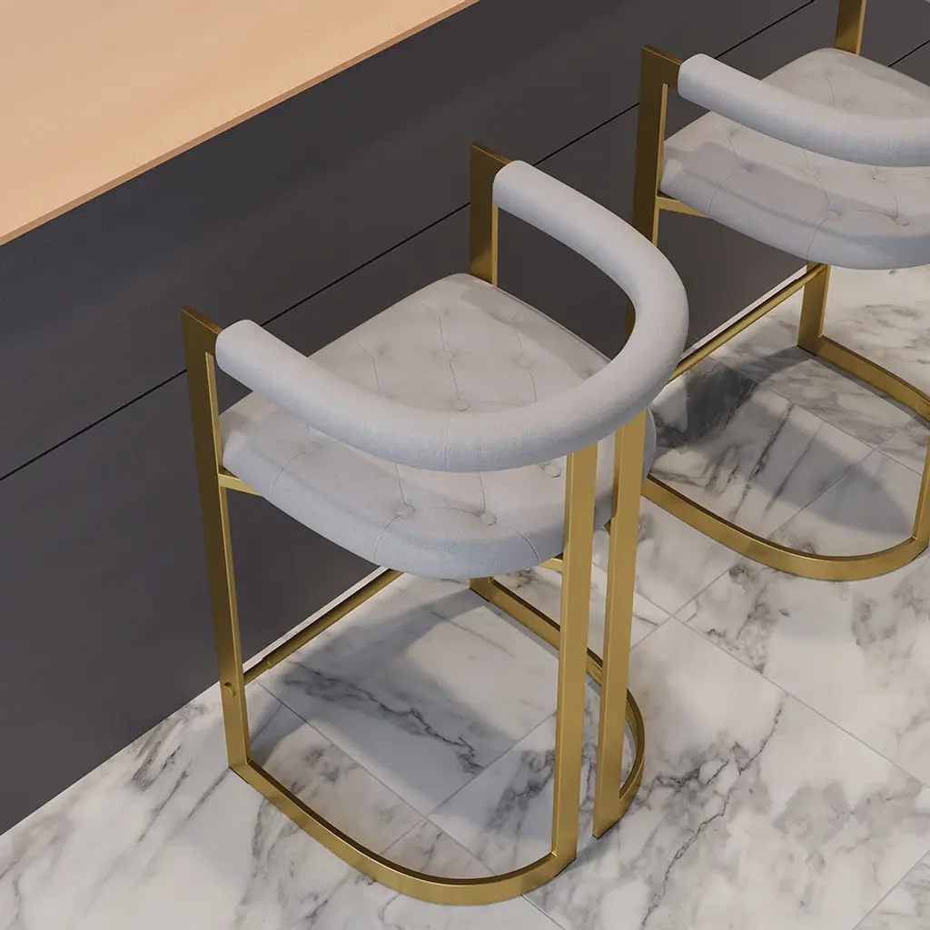 The modern height counter stool offers comfort and style with its rich gray velvet upholstery and sleek gold pedestal base. The seat is filled with foam to ensure comfort for long periods, while the stainless steel frame provides the needed durability and stability. With its low-back design, the adjustment stool will provide support and sophistication for your kitchens, bars, or dining areas. The elegant square seat adds a touch of contemporary style to any room, upgrading your decor with modern flair.
