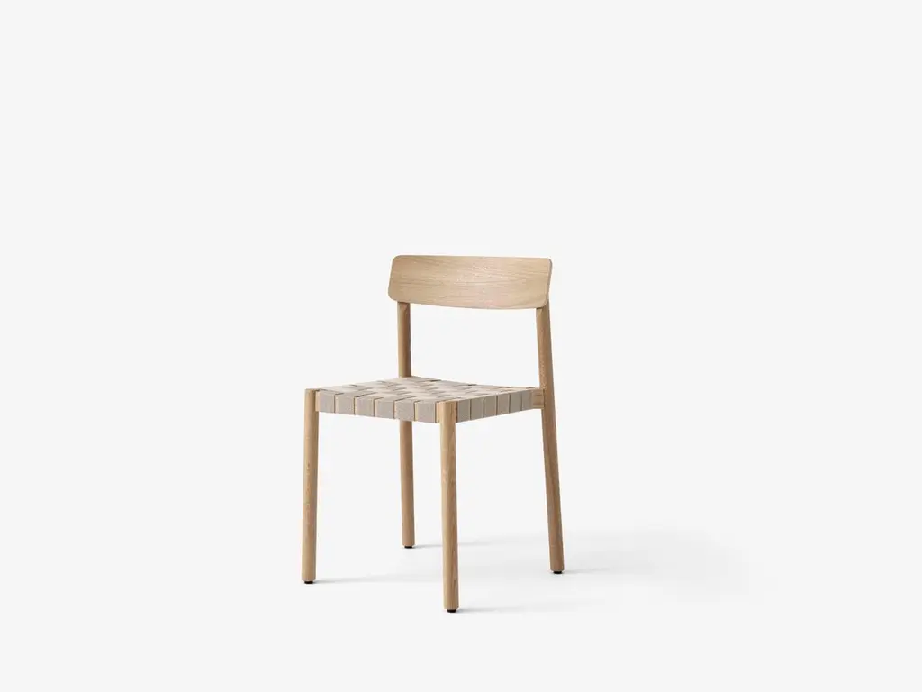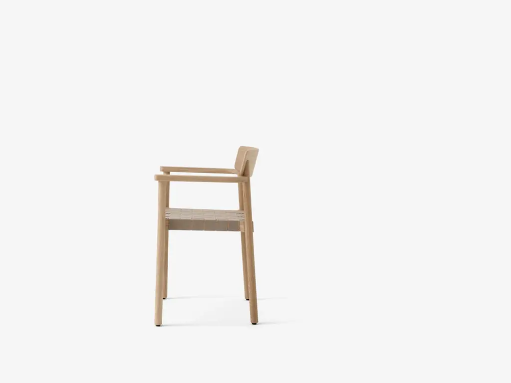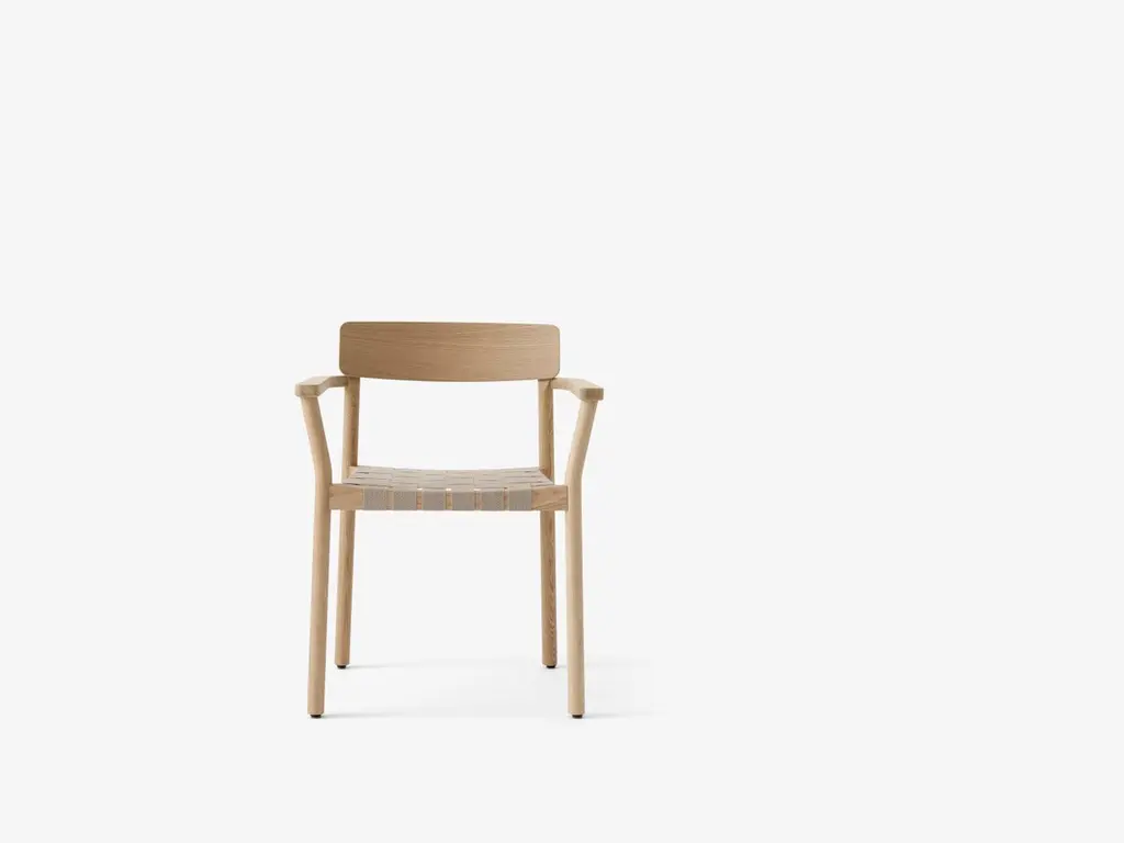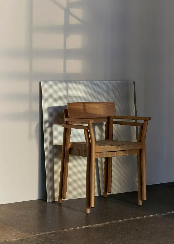 Named after the Betty Nansen theatre in Copenhagen, the stackable chairs come in two versions: one with a seat made from exposed webbing crafted from natural linen fibres, and another with a solid wooden seat. It is available in four colour combinations: Lacquered Solid Oak with natural webbing, Black Lacquered Ash with natural webbing, Black Lacquered Ash with black webbing, and Smoked Oiled Oak with natural webbing.First launched as a chair, the Betty series includes bar and counter stools, a bench and now an armchair version with the same distinctive design features and sturdy construction. Material: Lacquered solid wood and form pressed veneer with natural linen and PP (Polypropylene) webbing.Strength, Durability and Safety TestingThe chairs are tested for strength, durability and safety according toEN 16139 Level 2 – Extreme useDimensions: TK1: W: 51cm/20.1in, D: 48cm/18.9in, H: 77cm/30.3inSeating D: 42cm/16.5in, Seat H: 47cm/18.5inTK9 : W: 61cm / 20in, D: 48cm / 19in, Seating D: 42cm / 16.5in, Armrest H: 67cm / 27inDesignersThau & KallioJakob Thau and Sami Kallio are fascinated by materials and methods. They share a deep affinity for wood and hand craftsmanship, with a firm focus on the components that make up any given design. Together they are revitalising the Nordic narrative by applying classic techniques in new expressions.Finnish-born Sami Kallio grew up in Sweden where he was awarded a master’s degree in design from the Gothenburg School of Design and Crafts. Trained as a cabinetmaker, he fuses his in-depth understanding of wood and highly adept skills as an artisan with modern methods of manufacturing. In doing so, classic concepts from the past are reworked to a contemporary context.Jakob Thau was born in Sweden and raised in Denmark. Also trained as a cabinetmaker, he received his master’s degree from the Royal Danish Academy of Fine Arts, School of Design. Concentrating on the timeless, Thau draws on a treasure trove of traditional techniques, principally woodworking, exploring known and new materials in his quest to create easy-to-execute designs that everyone can relate to, live with and love.One of the upshots of their design collaboration is Betty, a new chair imbued with an old soul. Named after Copenhagen’s Betty Nansen Theatre, originally built in 1857 and housed in a wooden pavilion, the chair thinks beyond the walls of the theatre and is the result of the duo’s fascination with the needs of any space to have comfortable seating, regardless of its purpose.