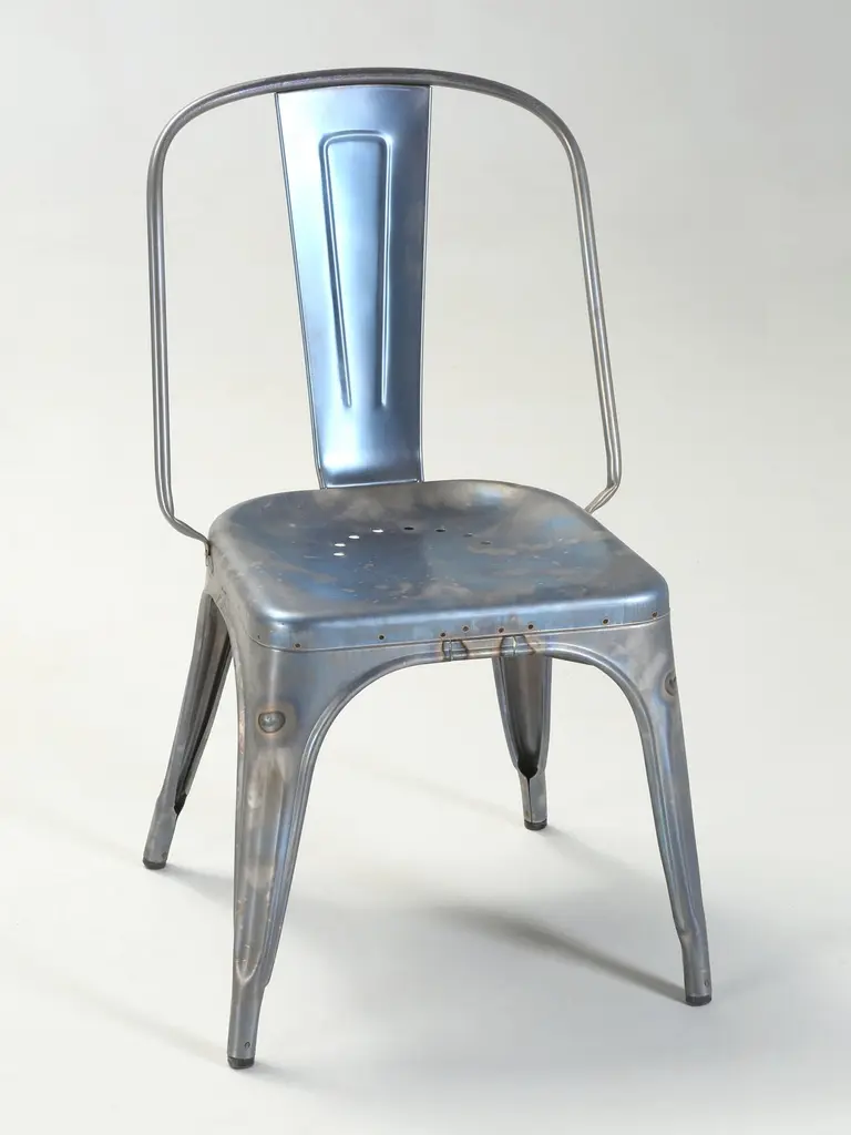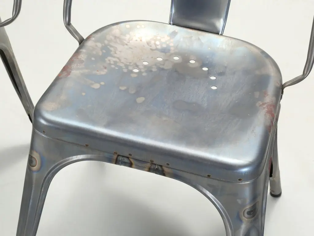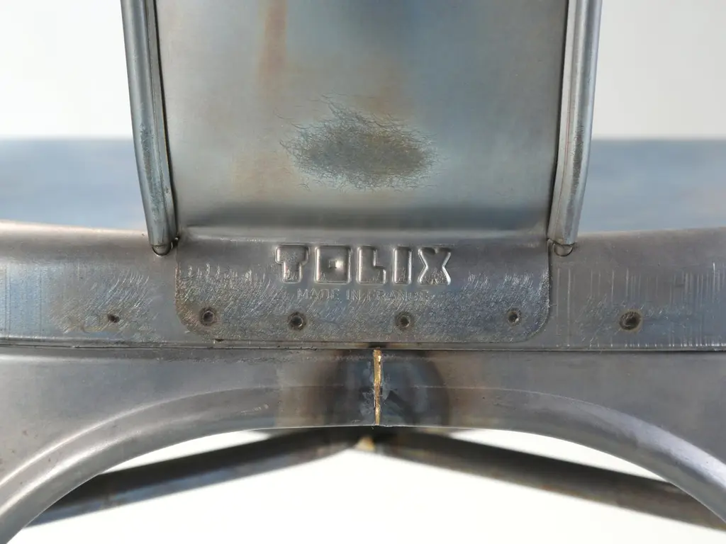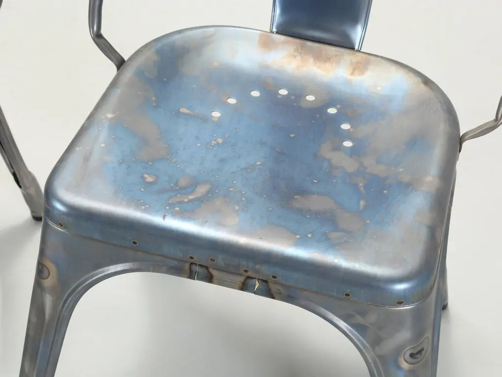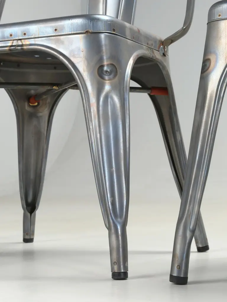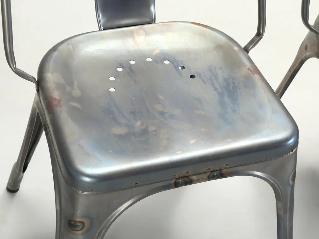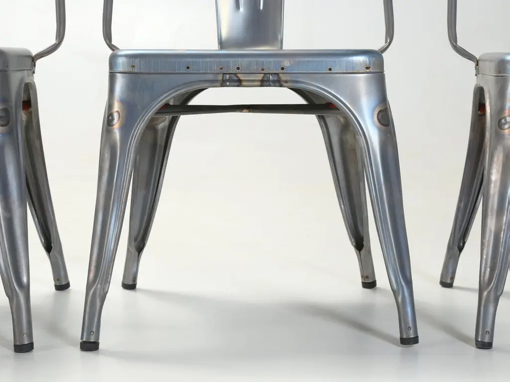 Set Of (8) Genuine French Tolix Ac Wide Style Chairs In Raw Welded Grey Blue