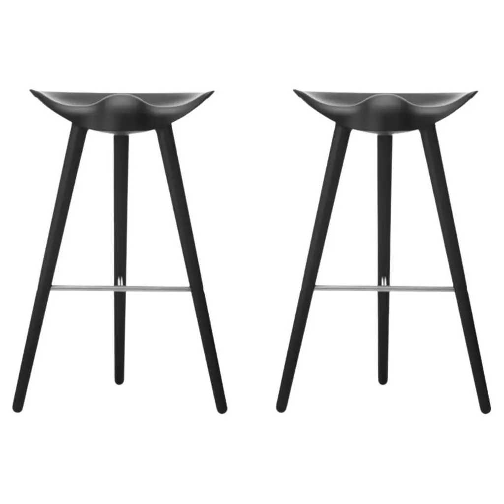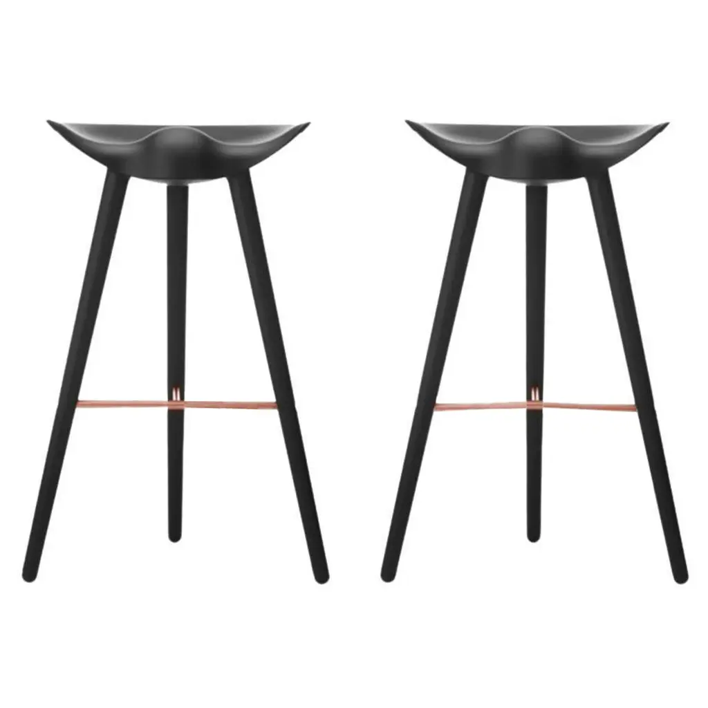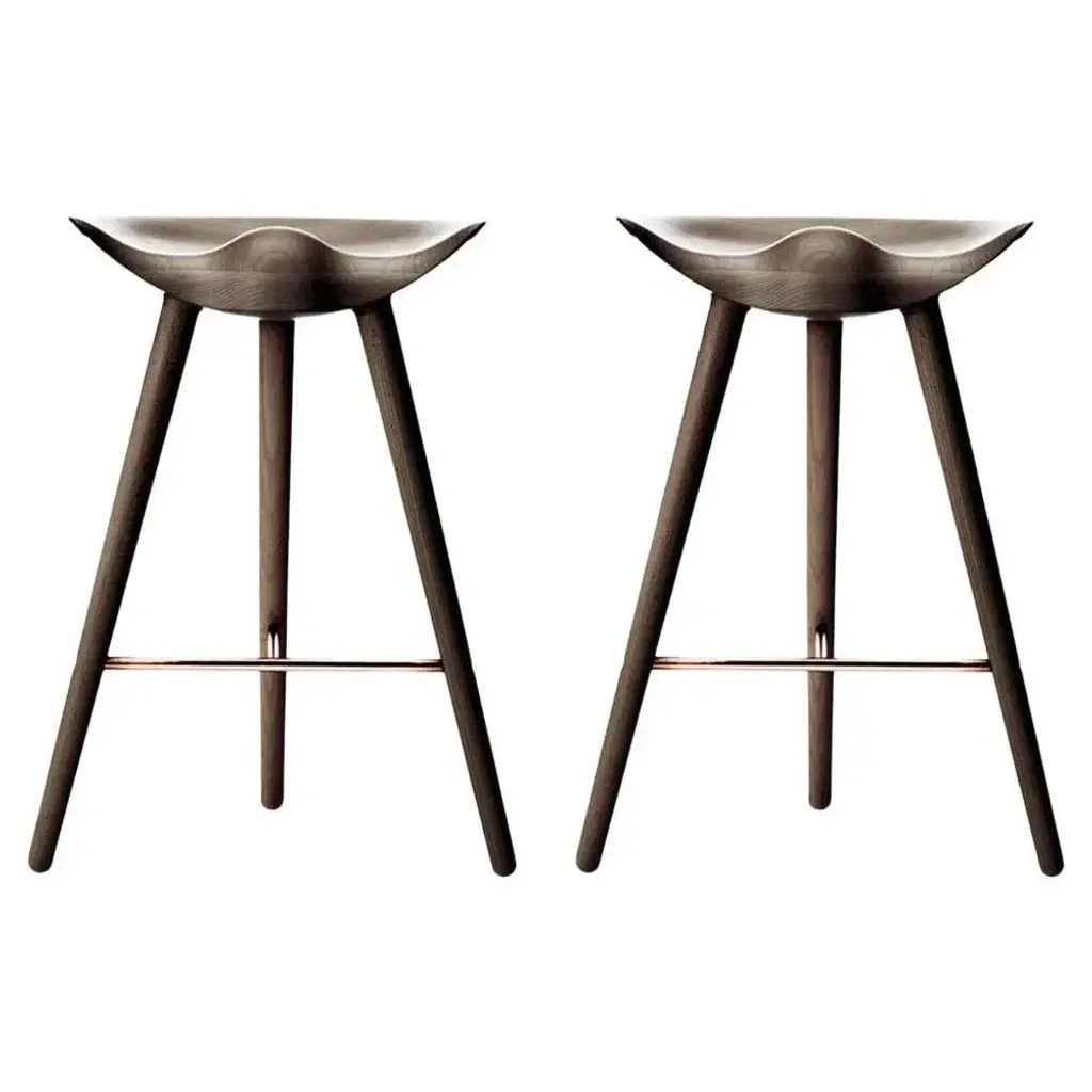 Set of 2 brown oak / copper counter stools by lassen. Dimensions : h 69 x w 36 x l 55.5 cm. Materials : oak, copper. In 1942 mogens lassen designed the stool ml42 as a piece for a furniture exhibition held at the danish museum of decorative art. He took inspiration from the stools used by the shoemakers of the past, and transferred the light, elegant look to the creation of this sculptural three-legged stool. The stool ml42 is still manufactured in denmark to this day with a focus on quality and danish craftsmanship, and is considered a collector’s item by international design connoisseurs.