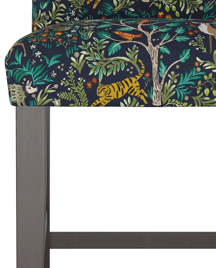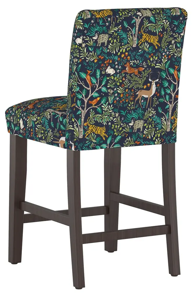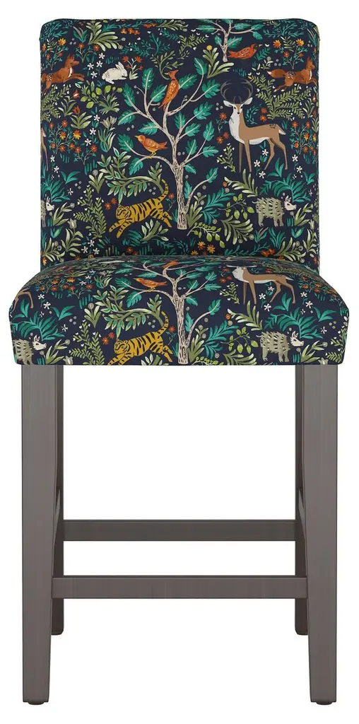 A lively print brings a fun pop of pattern to this counter stool's otherwise clean and classic silhouette. Perched on rubberwood framework and amply padded for long-lasting comfort and support. Handcrafted in the USA.Cloth & Company offers a fresh approach to customizable furniture and decor, digitally printing fabrics on demand in its Chicago factory. At the heart of this female-led enterprise is a fourth-generation family business that has been fashioning on-trend upholstery since it was founded in 1946. Cloth & Company blends modern technology with traditional craftsmanship to create this collection of made-to-order pieces exclusively for One Kings Lane.
