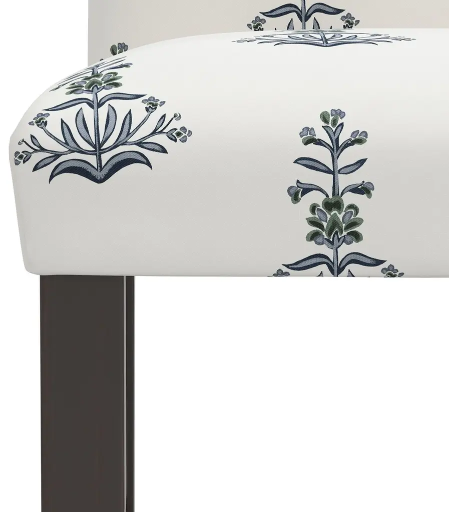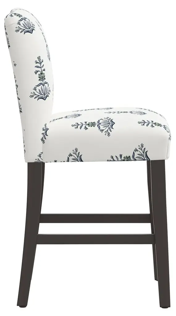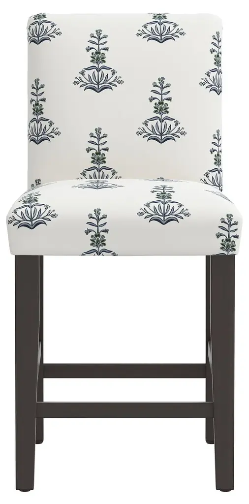 Exclusive to One Kings Lane: Upholstery inspired by classic Indian block prints complements the tailored silhouette of this counter stool. Ample padding of the seat and the back along with a well-placed footrest ensure long-lasting comfort.